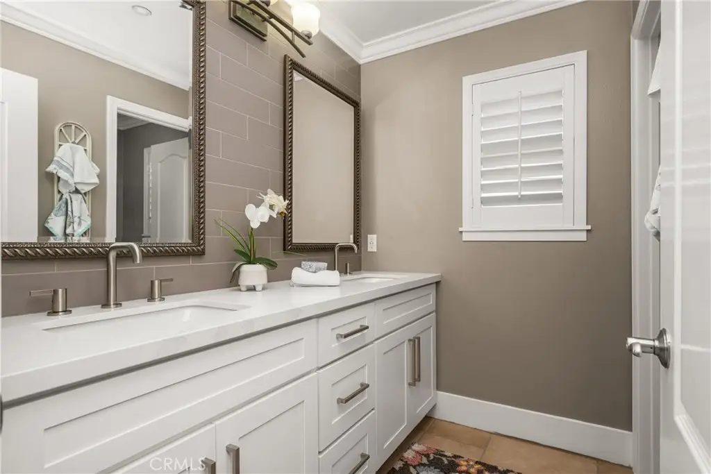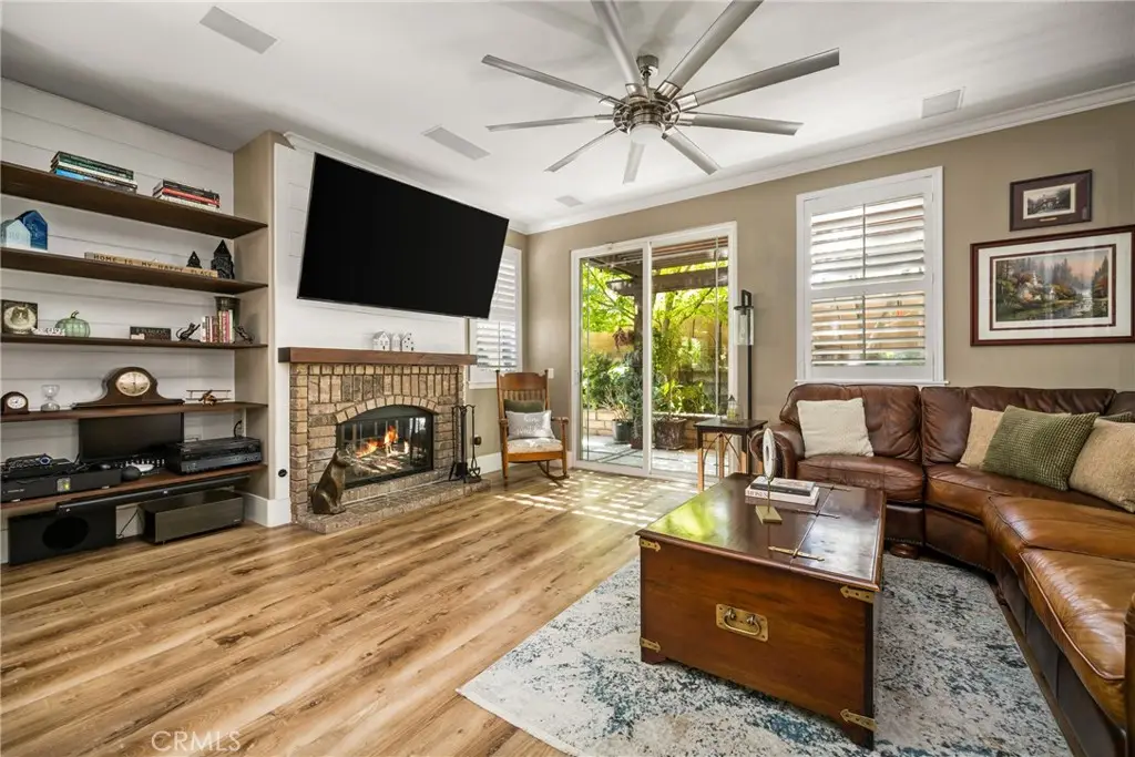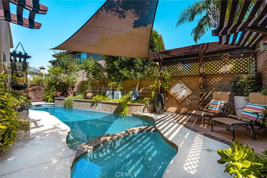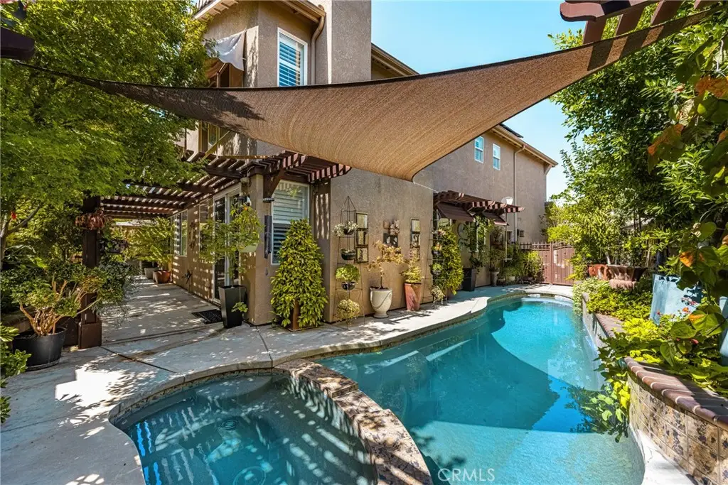 This beautifully upgraded home offers everything you've been searching for--style, comfort, and resort-like amenities. Featuring 3 bedrooms plus a loft, built in 1999, this 2,300 sq. ft. residence includes a 3-car attached garage and sits in the highly desirable Alta Vista community. From the moment you step through the lovely beveled glass front door, you'll be greeted by an open and inviting floor plan. The remodeled kitchen shines with quartz countertops, white shaker cabinetry with pull-out shelves, spice rack, self-closing drawers, pantry with a 30-bottle wine rack, stainless steel appliances and a designer tile backsplash. Luxury vinyl plank and tile flooring, paired with upgraded baseboards, flow seamlessly throughout the home. The family room is a true gathering space, showcasing a cozy brick fireplace with a custom mantle and slider that opens to your backyard oasis. Upstairs, the primary suite features vaulted ceilings, a ceiling fan, custom walk-in closet, and a spa-like bathroom with a soaking tub, quartz dual sinks and a step-in shower with multiple shower heads. A convenient upstairs laundry room adds everyday ease. Enjoy resort-style relaxation with your private saltwater pool and spa, complemented by low-maintenance landscaping, artificial turf and a drip irrigation system for energy efficiency. Additional highlights include surround sound, designer light fixtures, custom closet organizers, recessed lighting, wrought iron custom staircase, custom built-ins, crown molding, upgraded windows and slider, plantation shutters, whole-house fan, water softener, multi security cameras, tankless water heater and a solar system for long-term savings. This home is ideally located within walking distance of Alta Vista Country Club & Golf Course, Champions Sports Park, shopping, and dining. Award winning Placentia/YL school district. Low HOA dues also include access to a community pool and spa. Your home search ends here--this Alta Vista gem truly has it all!