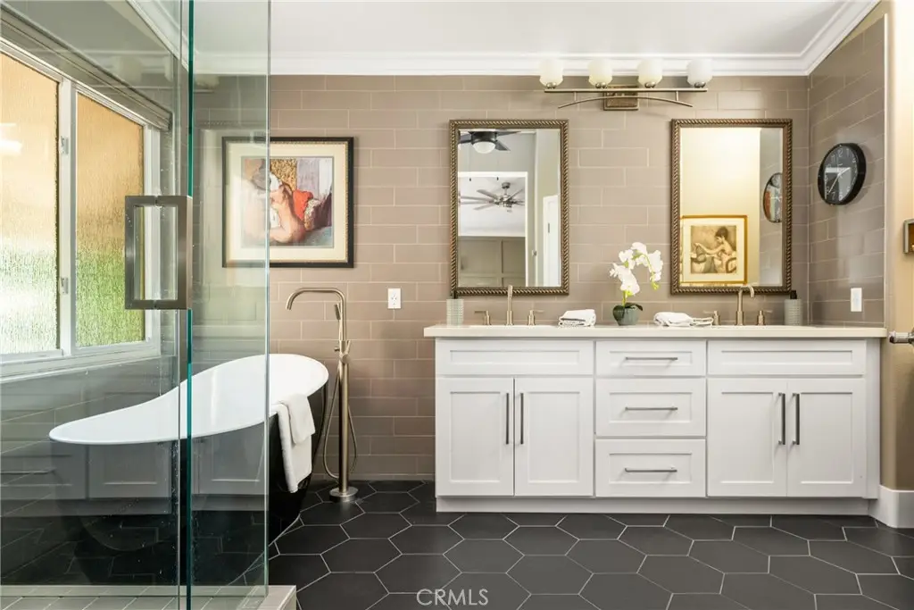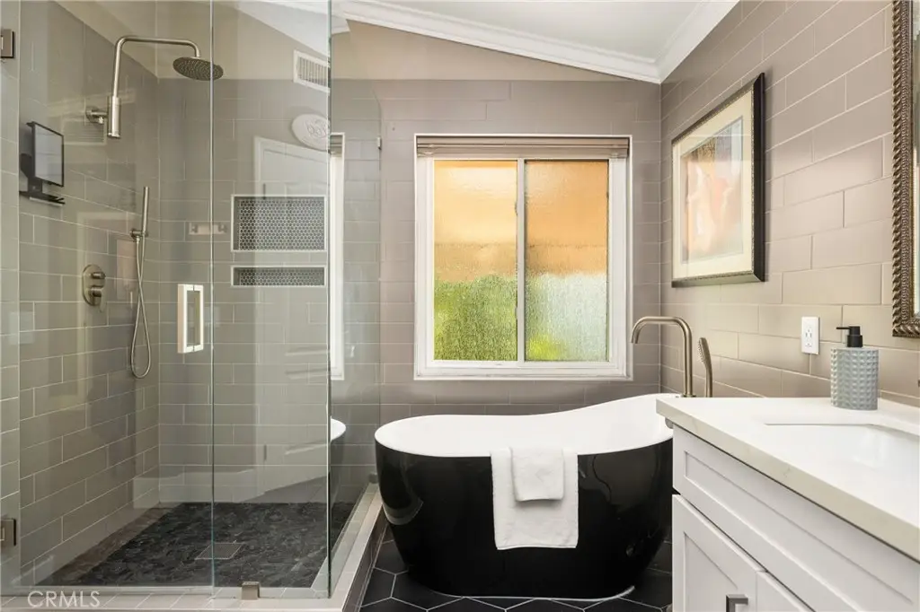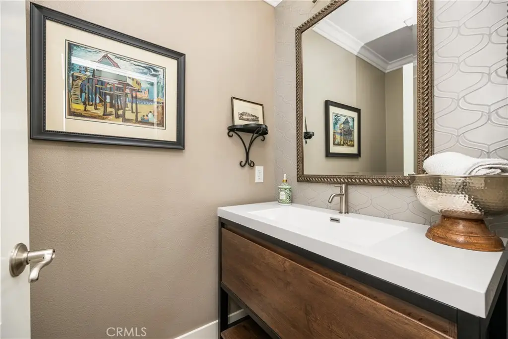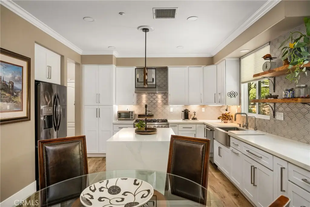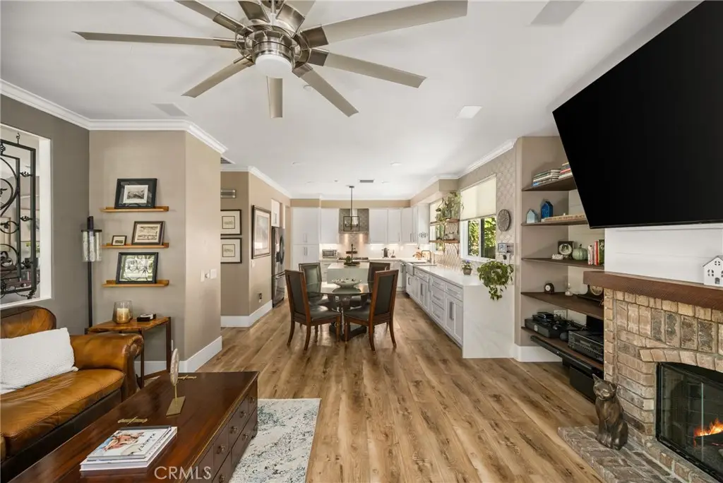 This beautifully upgraded home offers everything you've been searching for--style, comfort, and resort-like amenities. Featuring 3 bedrooms plus a loft, built in 1999, this 2,300 sq. ft. residence includes a 3-car attached garage and sits in the highly desirable Alta Vista community. From the moment you step through the lovely beveled glass front door, you'll be greeted by an open and inviting floor plan. The remodeled kitchen shines with quartz countertops, white shaker cabinetry with pull-out shelves, spice rack, self-closing drawers, pantry with a 30-bottle wine rack, stainless steel appliances and a designer tile backsplash. Luxury vinyl plank and tile flooring, paired with upgraded baseboards, flow seamlessly throughout the home. The family room is a true gathering space, showcasing a cozy brick fireplace with a custom mantle and slider that opens to your backyard oasis. Upstairs, the primary suite features vaulted ceilings, a ceiling fan, custom walk-in closet, and a spa-like bathroom with a soaking tub, quartz dual sinks and a step-in shower with multiple shower heads. A convenient upstairs laundry room adds everyday ease. Enjoy resort-style relaxation with your private saltwater pool and spa, complemented by low-maintenance landscaping, artificial turf and a drip irrigation system for energy efficiency. Additional highlights include surround sound, designer light fixtures, custom closet organizers, recessed lighting, wrought iron custom staircase, custom built-ins, crown molding, upgraded windows and slider, plantation shutters, whole-house fan, water softener, multi security cameras, tankless water heater and a solar system for long-term savings. This home is ideally located within walking distance of Alta Vista Country Club & Golf Course, Champions Sports Park, shopping, and dining. Award winning Placentia/YL school district. Low HOA dues also include access to a community pool and spa. Your home search ends here--this Alta Vista gem truly has it all!