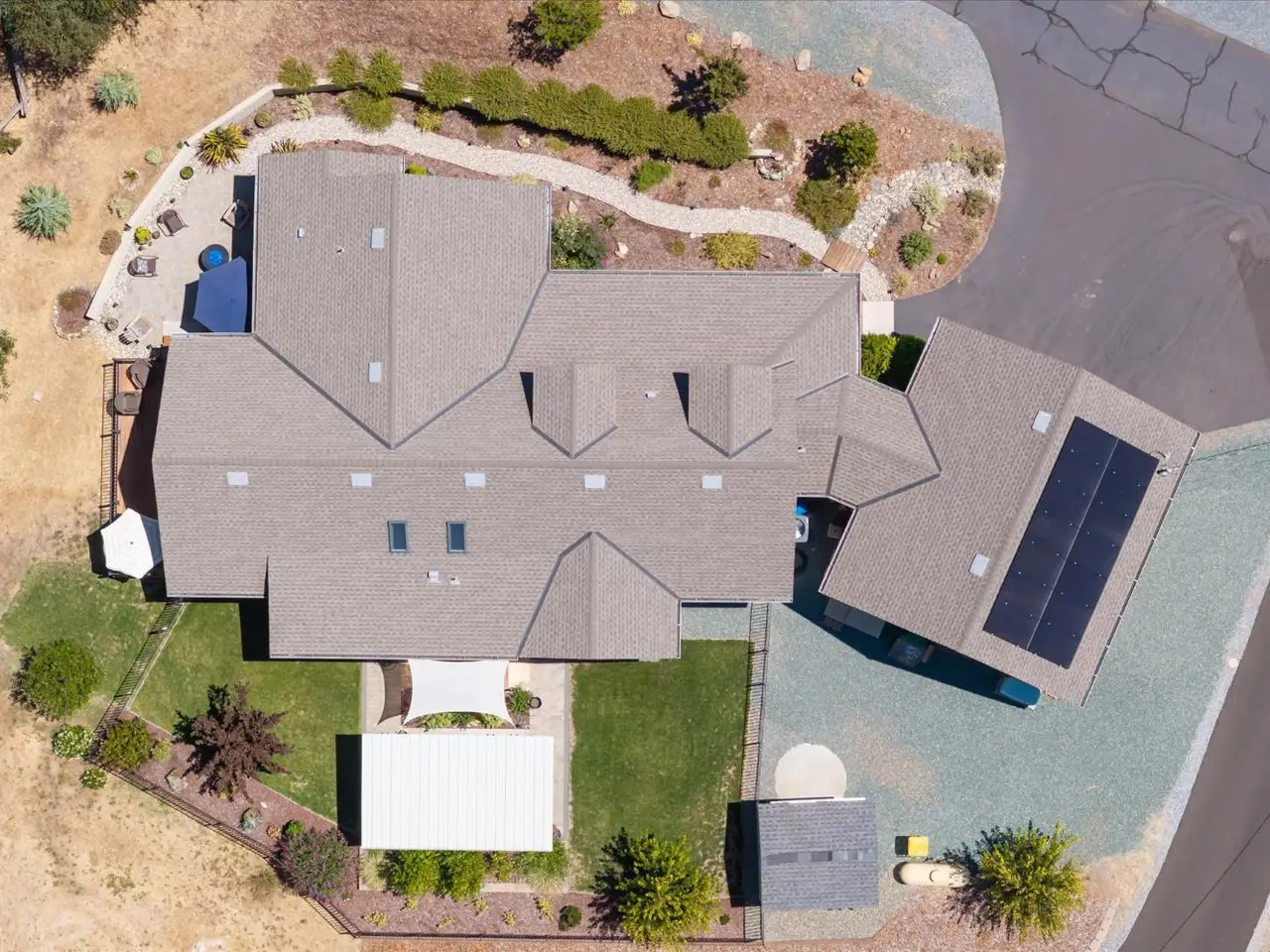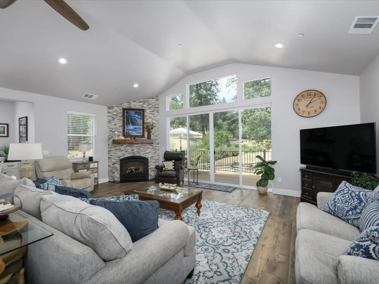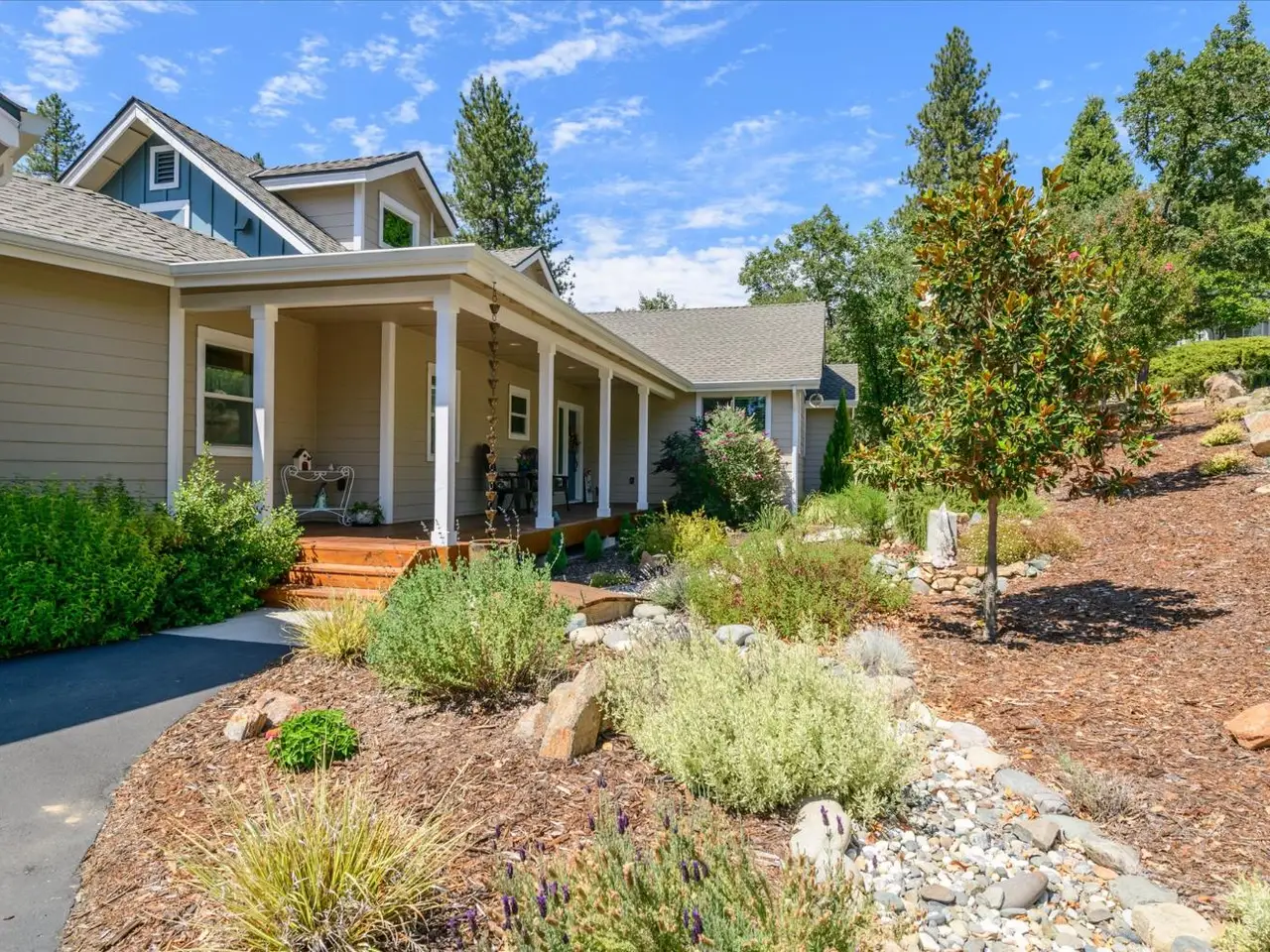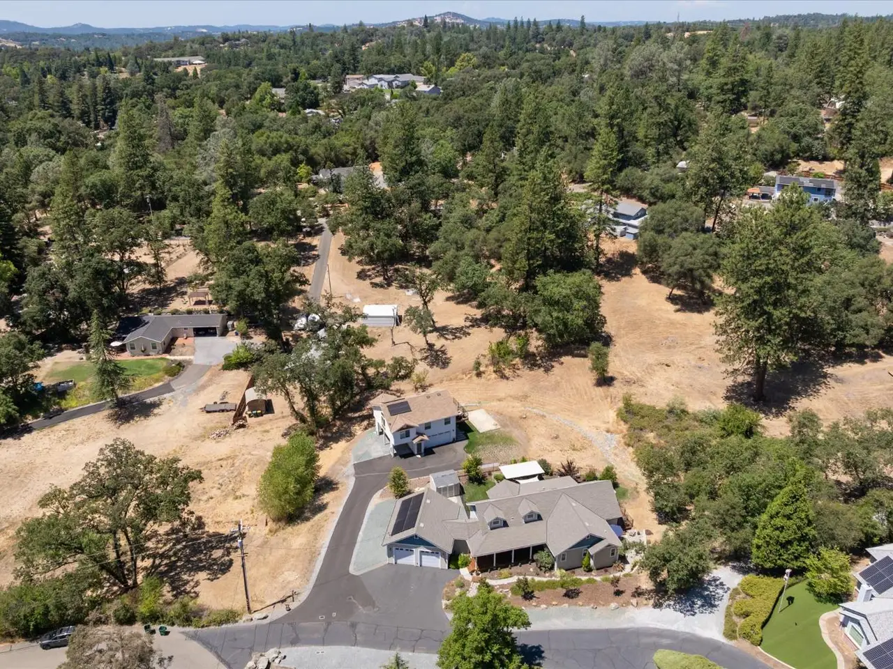 Luxury meets livability in this stunning 2022 custom built single-story home in Placerville's desirable Sleepy Hollow Ct. Set on nearly an acre, this elegant estate offers 3 beds, 2 baths, cathedral ceilings, and oversized windows that frame views of a seasonal stream. The chef's kitchen impresses with quartz counters, custom white cabinetry with stunning blue accents, stainless appliances, wine refrigerator and a large pantry. The private primary suite features a spa-like bath with soaking tub and oversized shower. Energy-efficient with approx. 5kW owned solar and a Generac generator! There's RV parking with 50 amp power & sewer hookup as well. The finished garage includes 9'x9' doors for taller vehicles. Enjoy outdoor living on the covered patio or expansive deck. The detached ADU offers exceptional quality with 2 beds, 1.5 baths, designer finishes, 3.8kW owned solar, mini-splits, an oversized 2-car garage, carport, and RV setup. With a total of approximately 3333 SF living space, that is only $330 a square foot! Minutes to town, yet feels like your own private retreat.
