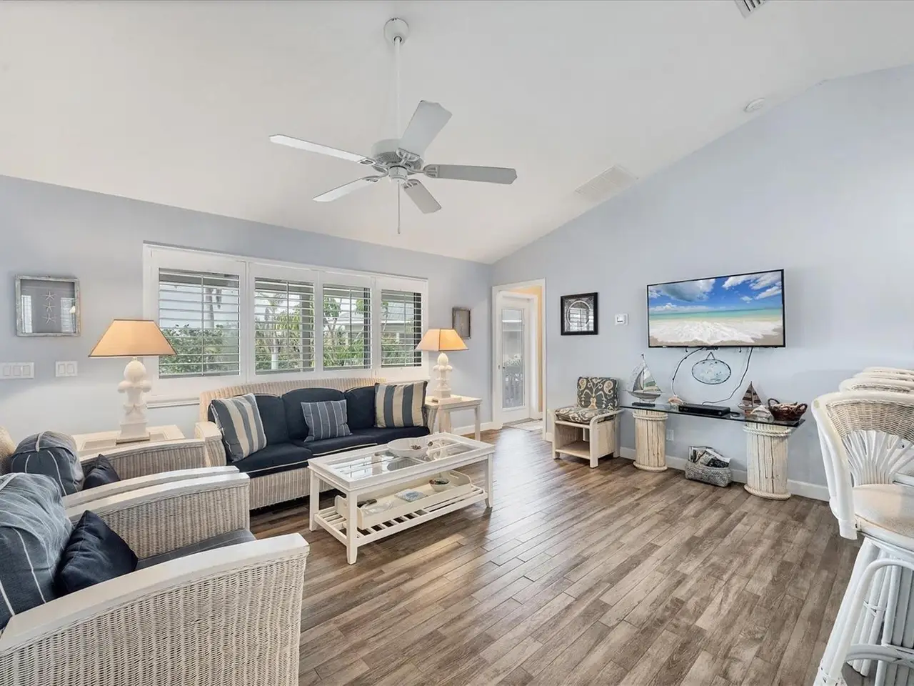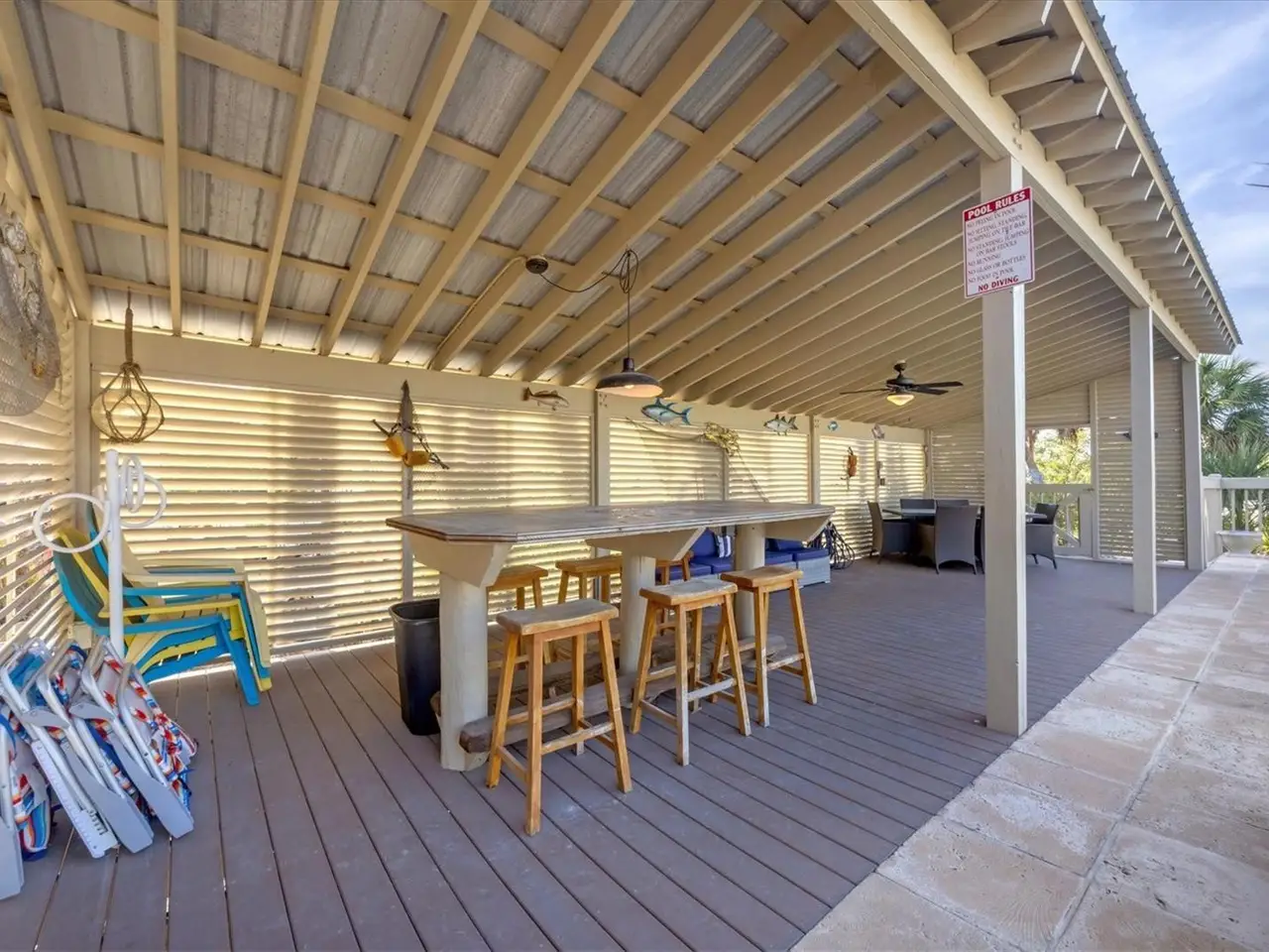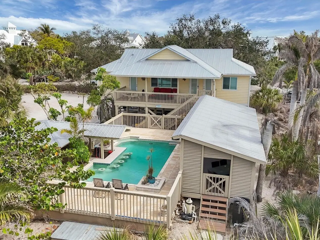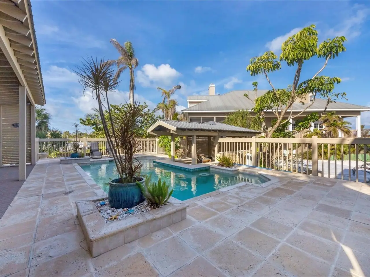 Welcome to Don Pedro/Palm Island! This exclusive Key West style Florida home offers tasteful and updated interior design as well as expansive outdoor entertainment area. The lot is just shy of one half acre. This 2 bedroom, 2 bath home has wood like tile flooring, windows with interior plantation shutters throughout, granite countertops throughout, stainless steel appliances, high coffered ceilings, impact glass and much more. Air conditioned Bonus Room with 1/2 bath. Outdoor living space includes a large pool with swim-up bar offering six in pool bar seating area, a covered 10 x 16 foot outdoor grill area, a 12 x 36 foot lounging area covered by metal roofing, louvered walls, composite decking. Additional exterior amenities include outdoor shower, air conditioned bonus room with pool bath, a 17 x 13 foot garage, and a 25 x 36 foot paved area under home. There is a shared dock located on Kettle Harbor waterway with no bridges to the Intracoastal Waterway and Gulf of Mexico. This property offers the best that Florida has to offer and is a MUST SEE.