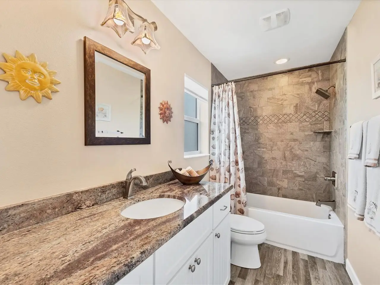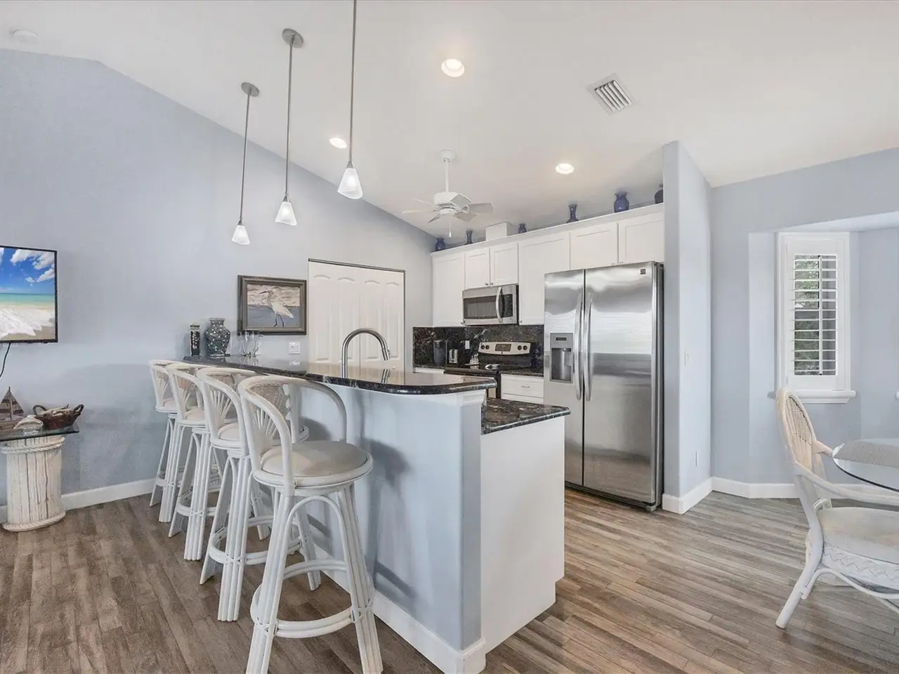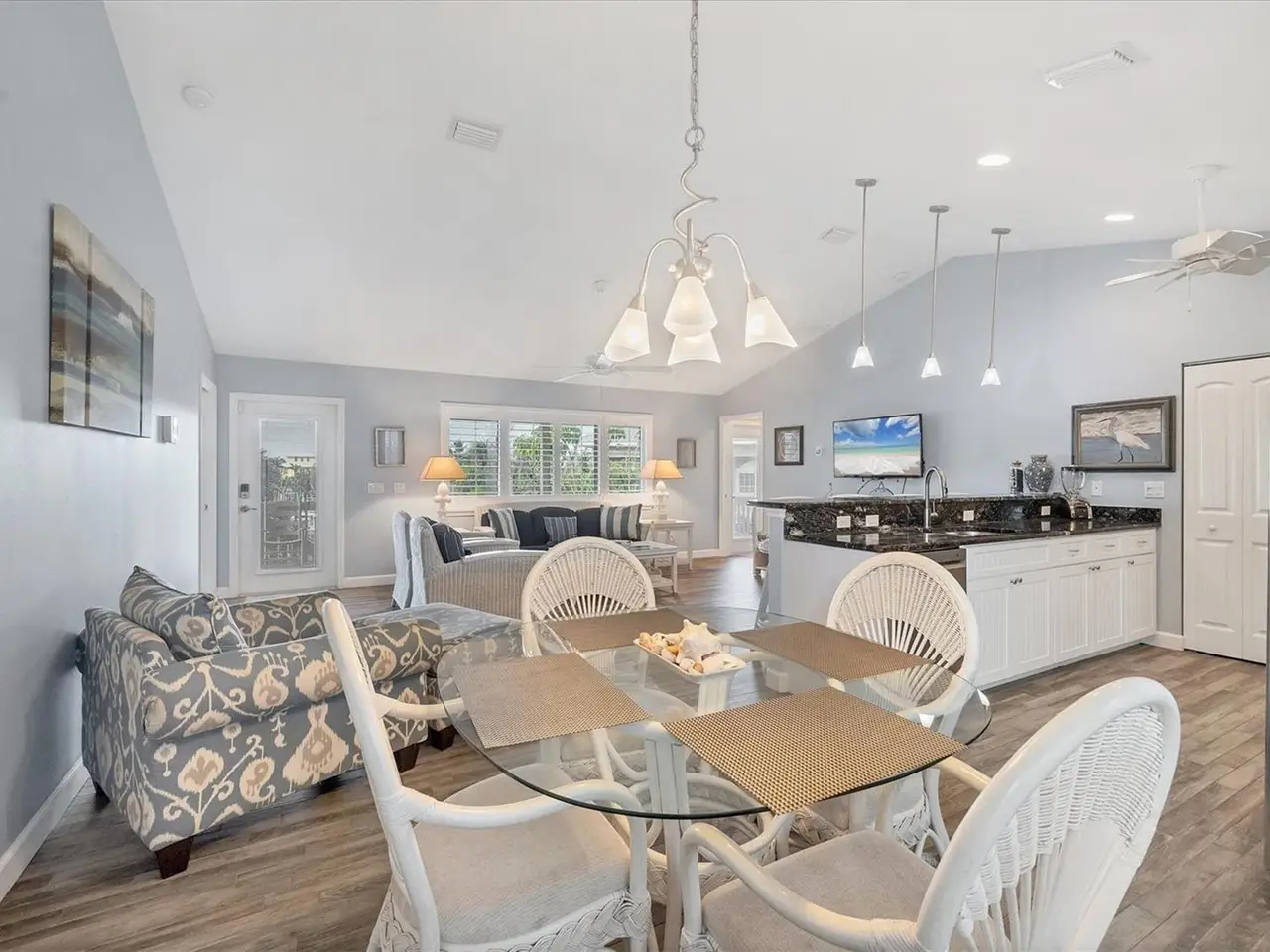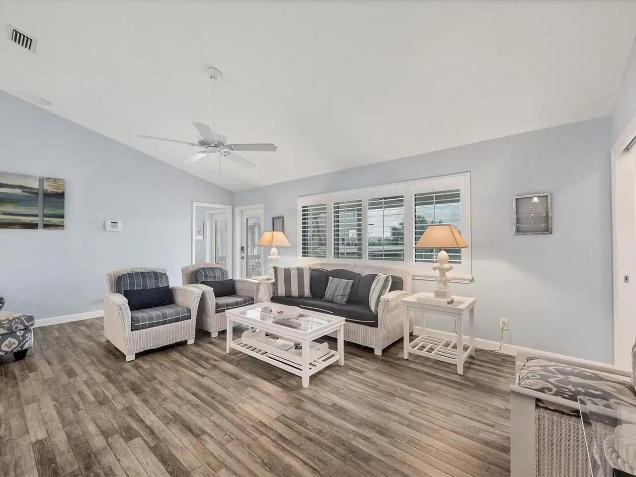 Welcome to Don Pedro/Palm Island! This exclusive Key West style Florida home offers tasteful and updated interior design as well as expansive outdoor entertainment area. The lot is just shy of one half acre. This 2 bedroom, 2 bath home has wood like tile flooring, windows with interior plantation shutters throughout, granite countertops throughout, stainless steel appliances, high coffered ceilings, impact glass and much more. Air conditioned Bonus Room with 1/2 bath. Outdoor living space includes a large pool with swim-up bar offering six in pool bar seating area, a covered 10 x 16 foot outdoor grill area, a 12 x 36 foot lounging area covered by metal roofing, louvered walls, composite decking. Additional exterior amenities include outdoor shower, air conditioned bonus room with pool bath, a 17 x 13 foot garage, and a 25 x 36 foot paved area under home. There is a shared dock located on Kettle Harbor waterway with no bridges to the Intracoastal Waterway and Gulf of Mexico. This property offers the best that Florida has to offer and is a MUST SEE.