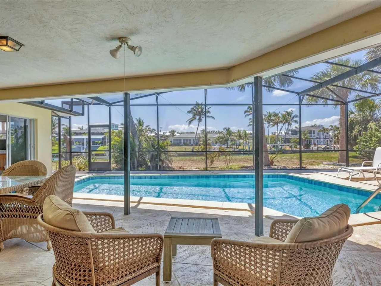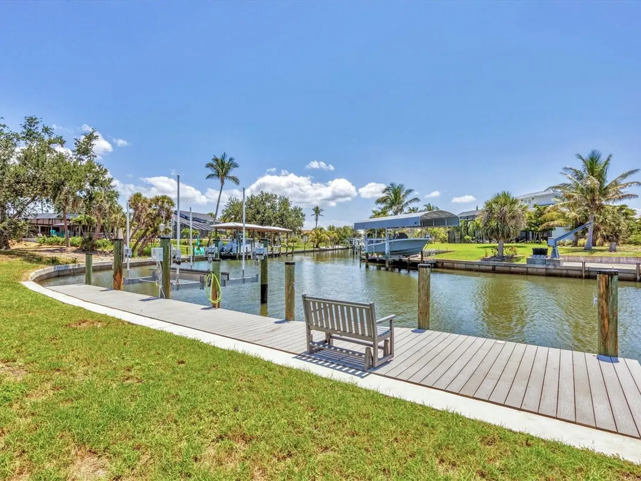 An incredible Cape Haze home for boaters and fisherman, with 105 feet of deep-water canal frontage, brand new composite dock with a new robust 13,000 lb Deco boat lift, no bridges, and only about 600 feet to the Intracoastal Waterway. Highly sought after location in Cape Haze, the home is on the very southern canal of the neighborhood, which means that boaters are instantly in the world-class fishing waters of Charlotte Harbor or to Gasparilla Pass and the Gulf of Mexico. New concrete seawall and a wide section of the canal allows for very large vessels to easily navigate and dock at the property. A superb location, the home sits on a .68 acre lot, tucked in a secluded area of the historic Vanderbilt developed neighborhood of Cape Haze the streets are lined with towering banyan trees. The classic 1960's home is in phenomenal like-new condition after a complete 2025 renovation inside and out. It beautifully blends some of its best retro features like gorgeous terrazzo flooring with endless new features from the 2025 project that includes a new roof, beautiful new kitchen, bathrooms, LVP in guest rooms, pool cage, swimming pool tile and resurface, new pool heater, all appliances, new water heater, AC and duct work, and a new septic system. The stunning bathrooms offer tiled showers, designer vanities, new plumbing fixtures, and framed mirrors. The kitchen now has new custom wood cabinetry, quartz stone counter tops, stainless steel appliances, and new plumbing fixtures. The Cape Haze Property Owners Association includes a private dock and beach access on Don Pedro Island. The home is just minutes by car or boat to historic Boca Grande, miles of pristine sandy beaches, essential shopping, fine dining, private Coral Creek Jetport, private and public golf courses and several full-service marinas.