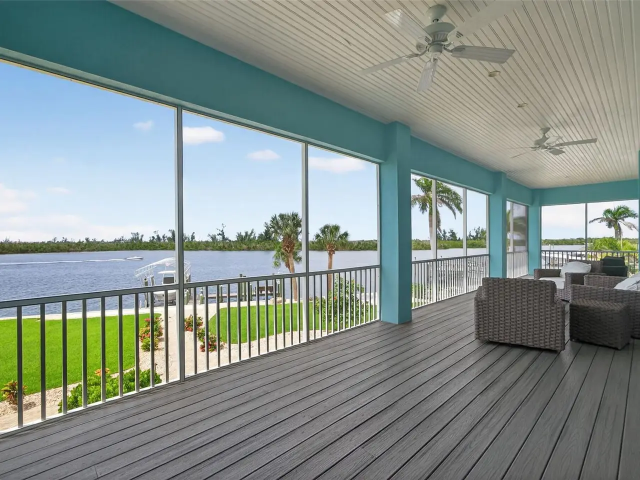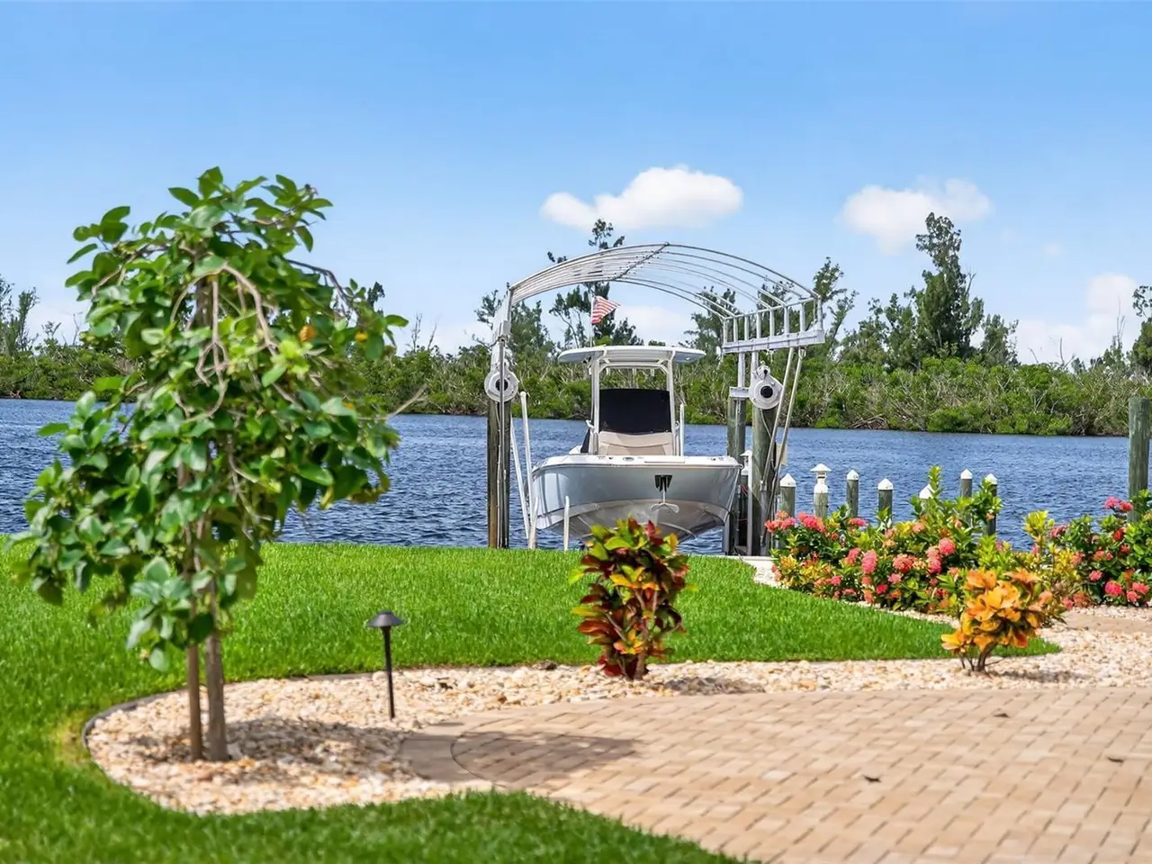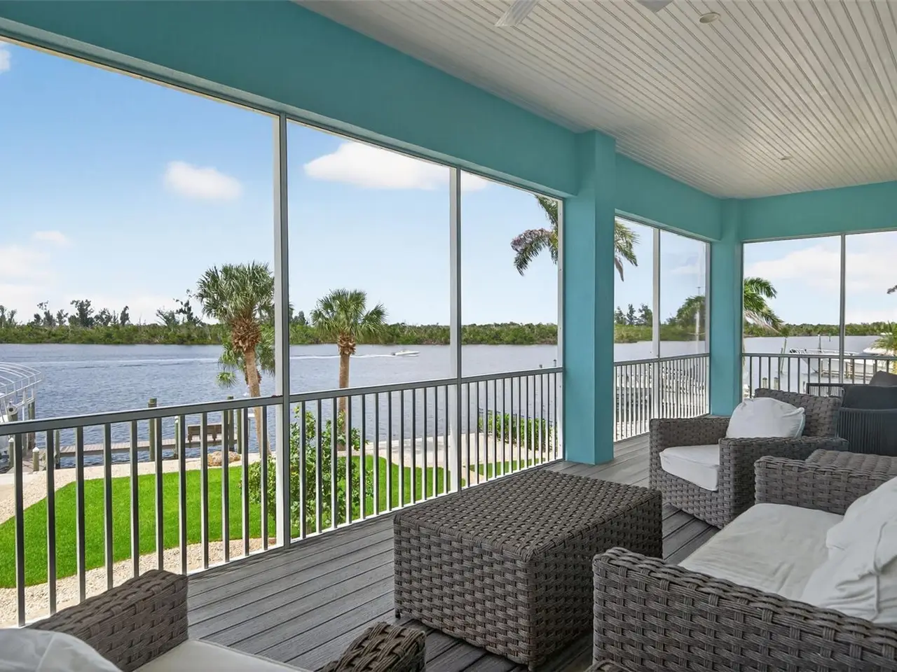 Built in 2020, this superbly crafted, luxury waterfront residence is perfectly positioned on 126 feet of prime Intracoastal Waterway frontage. Set on about .6 acres of impeccably landscaped grounds in the quiet Vanderbilt developed neighborhood of Cape Haze, with streets lined with towering banyan trees, the property enjoys a secluded old Florida setting. The residence offers the best of both worlds, with large vessel dockage at your back door and absolutely spectacular bay views, stretching to the Boca Grande bridge, Little Gasparilla Island and beyond. The nearly new home was built by an elite local builder, Jeb Bergeron Custom Homes. Designed and constructed to the highest coastal construction standards, with concrete tapered pilings, poured concrete beams, concrete block, thoroughly elevated, high-impact resistant windows and sliders, metal roofing, and a whole house generator provides lasting quality and more peace of mind. Inside the 4,241 total square foot home there's 3 bedrooms and 3.5 baths, each with a private en-suite, a grand open and elegant layout with light filled spaces, tall 11-foot+ vaulted beamed ceilings, that fully opens up and savors the mesmerizing nautical views. The chef's kitchen combines luxury and function with custom cabinetry, stone counter tops, a Wolf gas range, Sub-Zero refrigerator, and a beautifully crafted island. Other custom features include crown molding, case windows, solid core doors, beautifully tiled bathrooms, tankless gas water heater, premium plumbing and lighting fixtures. Outdoor living is equally impressive, with an immense screened second floor porch and ground level patio that run the entire length of the home. A stunning swimming pool and spa, paver patio and walkways, a large outdoor kitchen and bar, complete with a built-in gas grill, perfect for waterfront lounging and entertaining. An absolute boater's and fisherman's dream with world-class fishing waters and legendary boat destinations at your fingertips. Just a few steps to step onto your boat and within minutes be fishing for tarpon, back country or be in the Gulf headed for an offshore catch. Or take the guests on relaxing day trip adventures to an endless number of destinations including Boca Grande, Cabbage Key, Useppa, Captiva, Bokeelia, and Sanibel. The Cape Haze Property Owner's Association private dock and beach along with the Don Pedro Island State Park are just across the Waterway where gorgeous uninhabited beaches await.