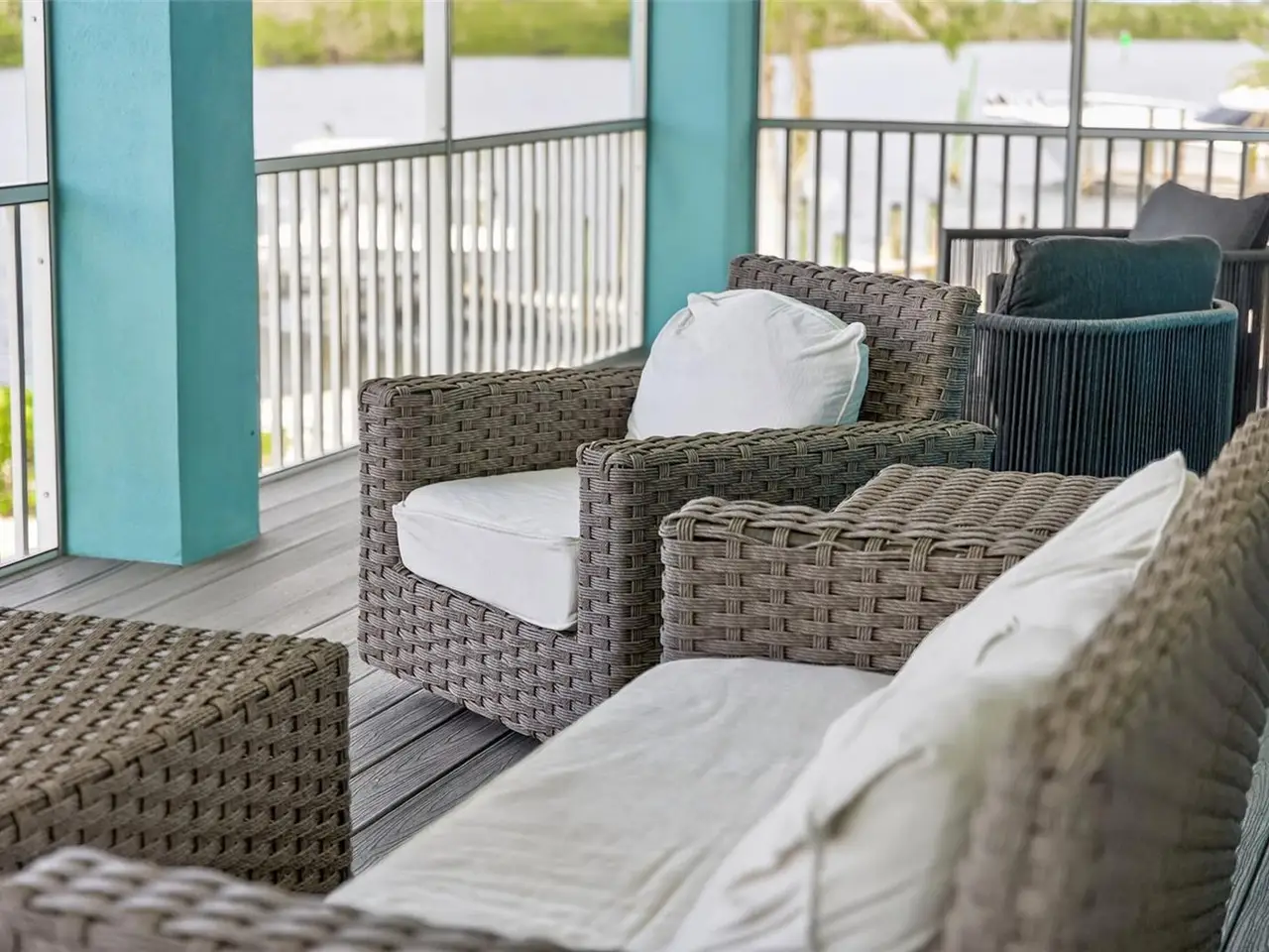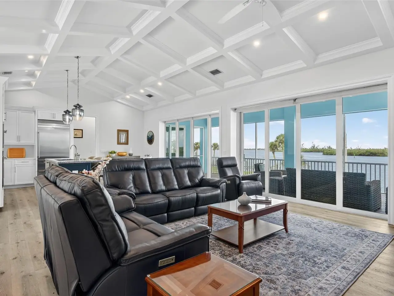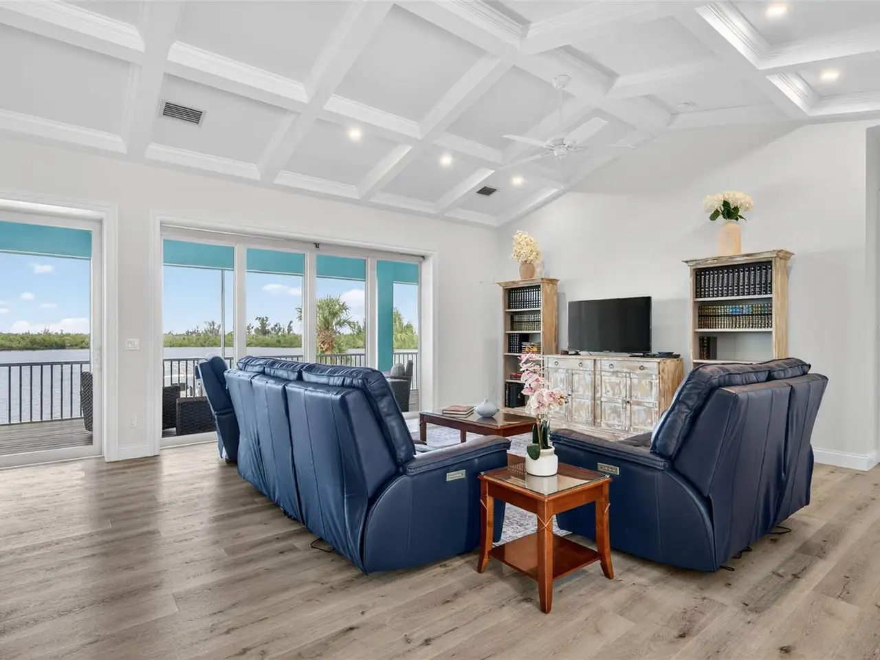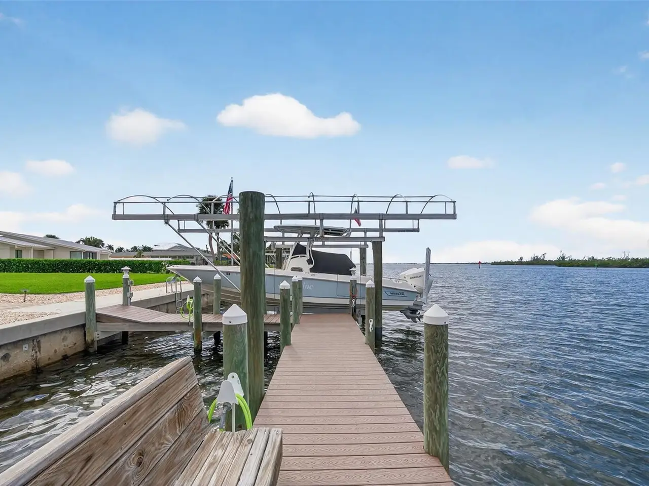 Built in 2020, this superbly crafted, luxury waterfront residence is perfectly positioned on 126 feet of prime Intracoastal Waterway frontage. Set on about .6 acres of impeccably landscaped grounds in the quiet Vanderbilt developed neighborhood of Cape Haze, with streets lined with towering banyan trees, the property enjoys a secluded old Florida setting. The residence offers the best of both worlds, with large vessel dockage at your back door and absolutely spectacular bay views, stretching to the Boca Grande bridge, Little Gasparilla Island and beyond. The nearly new home was built by an elite local builder, Jeb Bergeron Custom Homes. Designed and constructed to the highest coastal construction standards, with concrete tapered pilings, poured concrete beams, concrete block, thoroughly elevated, high-impact resistant windows and sliders, metal roofing, and a whole house generator provides lasting quality and more peace of mind. Inside the 4,241 total square foot home there's 3 bedrooms and 3.5 baths, each with a private en-suite, a grand open and elegant layout with light filled spaces, tall 11-foot+ vaulted beamed ceilings, that fully opens up and savors the mesmerizing nautical views. The chef's kitchen combines luxury and function with custom cabinetry, stone counter tops, a Wolf gas range, Sub-Zero refrigerator, and a beautifully crafted island. Other custom features include crown molding, case windows, solid core doors, beautifully tiled bathrooms, tankless gas water heater, premium plumbing and lighting fixtures. Outdoor living is equally impressive, with an immense screened second floor porch and ground level patio that run the entire length of the home. A stunning swimming pool and spa, paver patio and walkways, a large outdoor kitchen and bar, complete with a built-in gas grill, perfect for waterfront lounging and entertaining. An absolute boater's and fisherman's dream with world-class fishing waters and legendary boat destinations at your fingertips. Just a few steps to step onto your boat and within minutes be fishing for tarpon, back country or be in the Gulf headed for an offshore catch. Or take the guests on relaxing day trip adventures to an endless number of destinations including Boca Grande, Cabbage Key, Useppa, Captiva, Bokeelia, and Sanibel. The Cape Haze Property Owner's Association private dock and beach along with the Don Pedro Island State Park are just across the Waterway where gorgeous uninhabited beaches await.