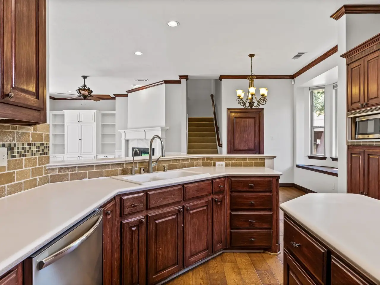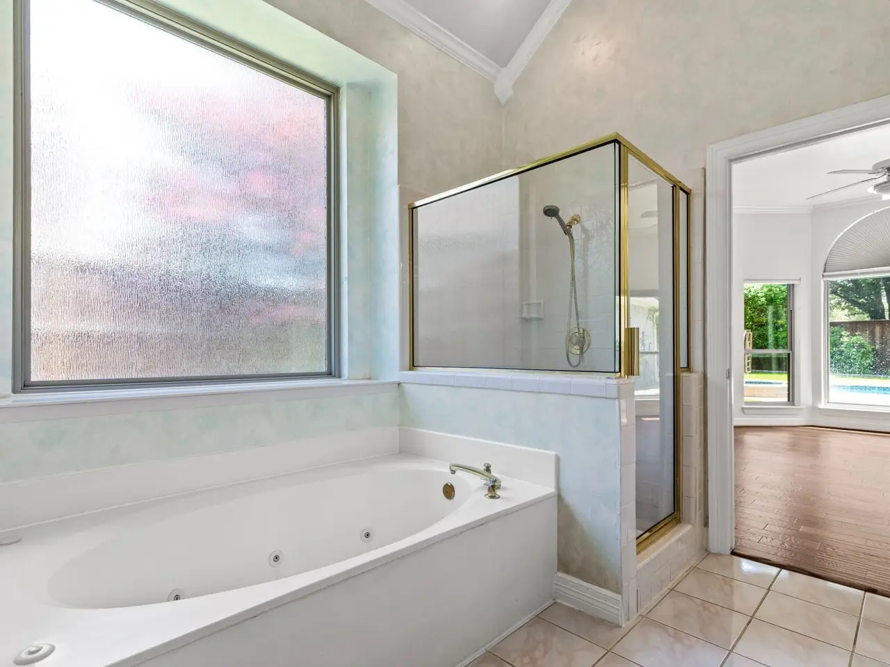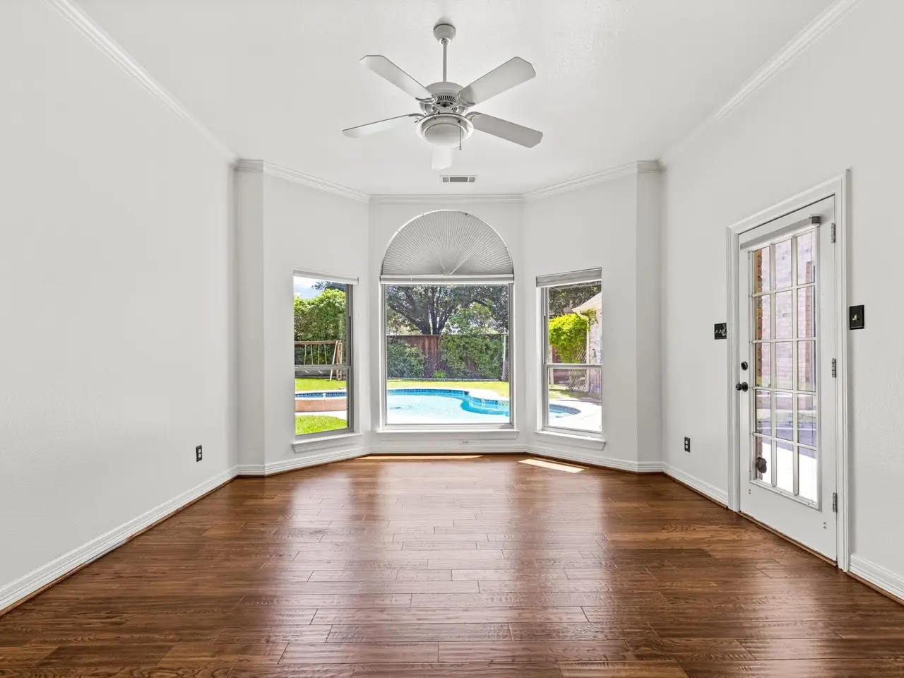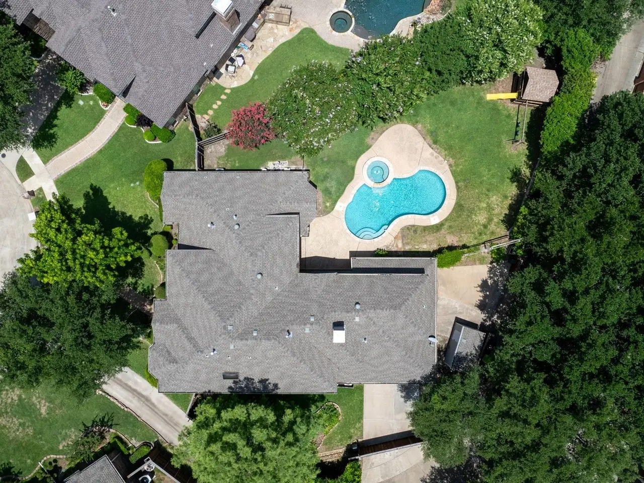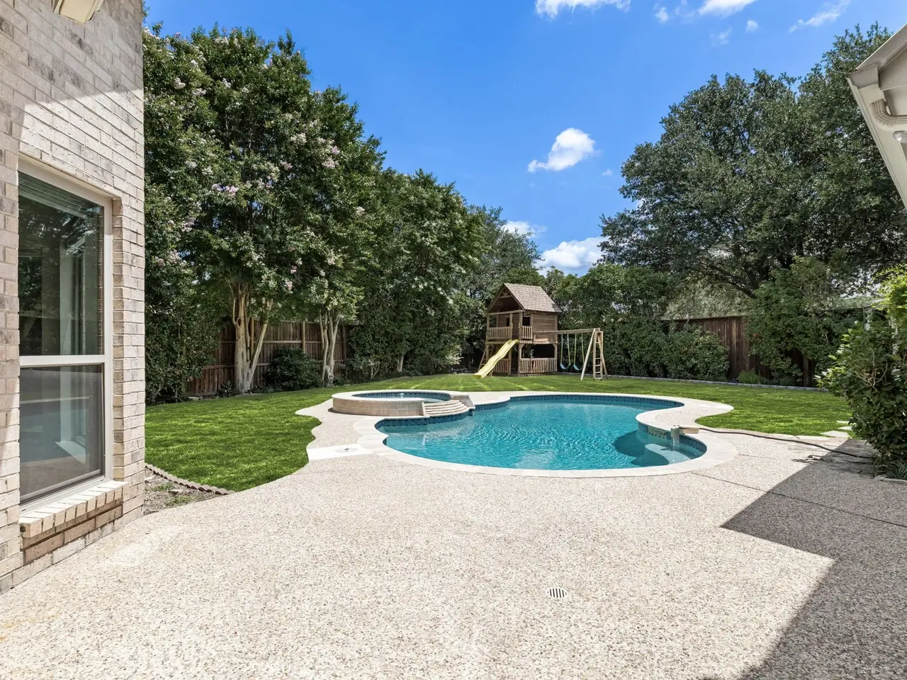 Need a 3-car garage? Need a BIG BACKYARD with a POOL and SPA? Welcome to 5001 Hudson Drive: an elegant, beautifully maintained home tucked into a quiet cul-de-sac in the heart of West Plano. This 5-bedroom, 4.5-bath property offers a versatile and expansive floor plan ideal for both everyday living and upscale entertaining. The primary suite is conveniently located on the main floor, featuring serene views of the backyard and direct access to the pool and spa. A thoughtfully designed pool-bath or powder-room provides easy access for guests. The main level also includes two generous living areas, a dedicated study, and a formal dining room, creating a seamless flow throughout the home. The kitchen opens to the den for an airy, connected feel and showcases hardwood floors, ample cabinetry, and new windows that fill the space with natural light. Upstairs, you'll find additional bedrooms, including a flexible nanny or in-law suite, perfect for multi-generational living. Outdoors, enjoy a large backyard with a sparkling pool, spa, a charming play fort and a spacious side yard complete with a Monarch butterfly garden. The three-car garage is accessed via dual electric gates, offering security and extra play space. Located near Preston Road, with unbeatable access to shopping, dining, and grocery stores, and minutes from PGBT and Dallas North Tollway, this home is a rare combination of comfort, space, and location. Close to Prince of Peace School, Church. George Bush and Dallas North Tollways just down the street. Windows are newer. Great walkability with grocery stores and restaurants on every corner.