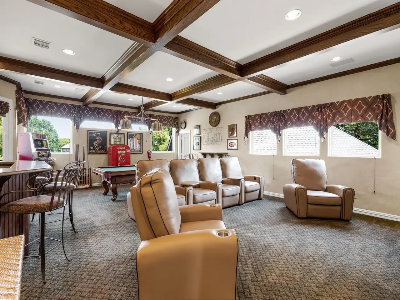 Game & media room with bar and arcade room