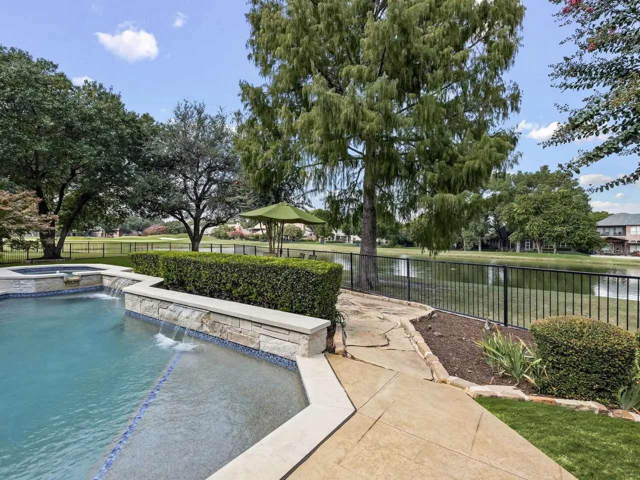 Nestled on a private cul-de-sac lot, this magnificent home offers a perfect balance of grand living and relaxed elegance, all set against the breathtaking backdrop of Gleneagles golf course and a tranquil lake. Your journey begins by stepping through custom leaded glass doors into a spectacular entry defined by a majestic double staircase and mosaic tile. Living room features a cathedral ceiling and stunning wall of windows that frame the golf course and sparkling pool. Its an ideal setting for both quiet evenings and grand celebrations. Automated Lutron shades and lighting throughout allow you to effortlessly set the perfect ambiance. Outside is your private outdoor oasis, where a sparkling pool and spa seem to merge with manicured greens. Built-in grill and refrigerator make al fresco dining a pleasure, while the expansive wrap-around lake view adds serenity. Gourmet kitchen is a chef's dream, featuring a large island, Sub-Zero refrigerator, Wolf commercial gas range, and dual convection ovens. Enjoy casual meals in the breakfast nook with a charming built-in banquette. Den provides a cozy retreat with its golf course views, while the elegant dining room, with its butler's pantry and chandelier, is ready for formal gatherings. Primary suite is a peaceful escape with a sitting area that overlooks the golf course. Spa-like primary bath elevates relaxation to an art form, featuring a spacious walk-in shower, a hydro-tub, and a see-through electric fireplace that connects to the bedroom. The custom closet is a room in itself, with a center island and built-in dressers topped with granite. Game and media room is the ultimate destination for fun, with bar, refrigerator, and attached arcade room. Study provides a perfect space for focus, complete with a wet bar and a wall of built-ins. Practicality is not forgotten, with a walk-in attic, large storage closet, front & back staircases, and safe room for peace of mind. Every detail of this home is designed to enrich your lifestyle.