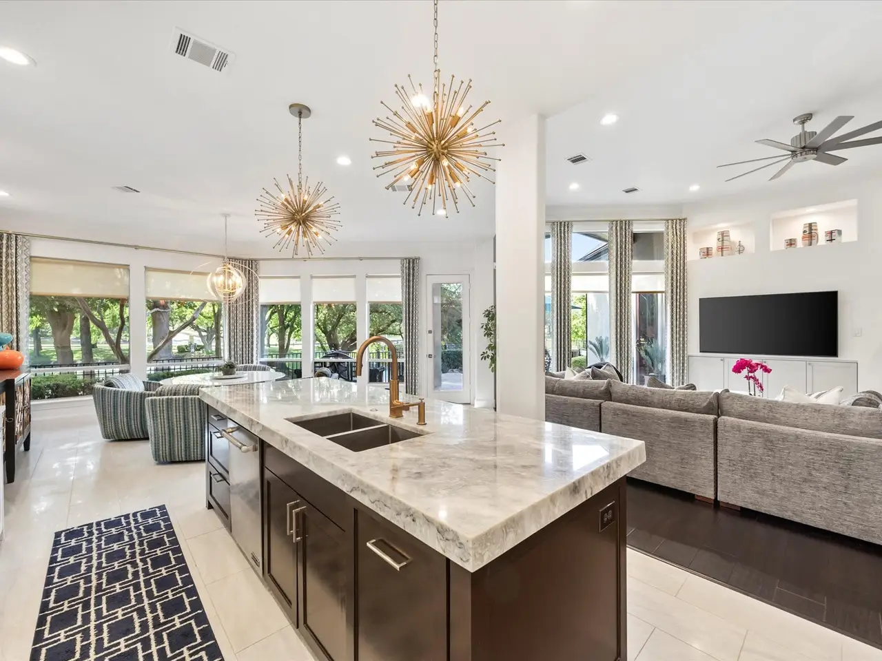 RARE WATERVIEW GEM IN WEST PLANO! Located in the prestigious Lakeside on Preston, this turnkey beauty offers tranquil pond and lake views right in the heart of the city. With over $300K in thoughtful updates, this home blends luxurious living with modern style which elevates every inch of this home. The renovated kitchen showcases a striking quartzite island, Silestone back countertops, Jenn-Air appliances, SubZero fridge-freezer, and sleek new hardware. Designer bathrooms boast exotic quartzite countertops and bath ledge, while the STUNNING primary closet includes custom cabinetry, a center island with chandelier, and numerous upscale details. Enjoy fresh paint, new carpet, tile, wood flooring, and amazing chandeliers in this elegant home. The resurfaced driveway, gym and multicolor LED-lit pool complete this exceptional retreat. A unique opportunity to live lakeside in Plano with every convenience at your doorstep, including walking distance to restaurants, shopping and H-E-B. The community offers many features including pool, pickleball and tennis courts, lake, walking trails, park, playground, and greenbelt. This home truly has it all, extensive updates that make it move in ready, a prime Plano location, and a picturesque neighborhood that is second to none. From the peaceful waterviews to the lush finishes throughout, this is where comfort, convenience, and beauty come together. Your dream home is waiting!