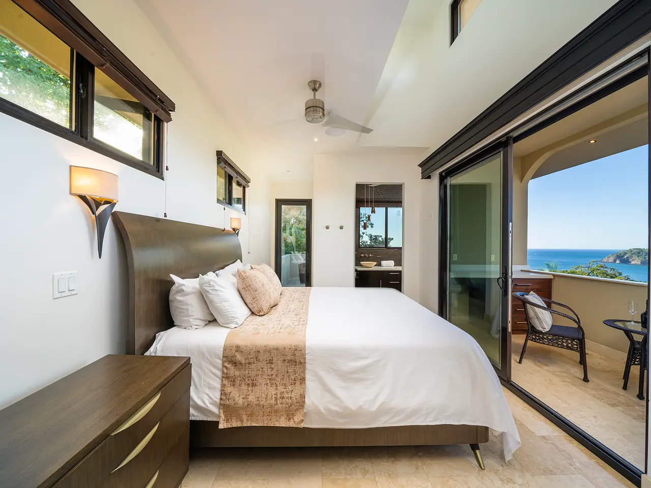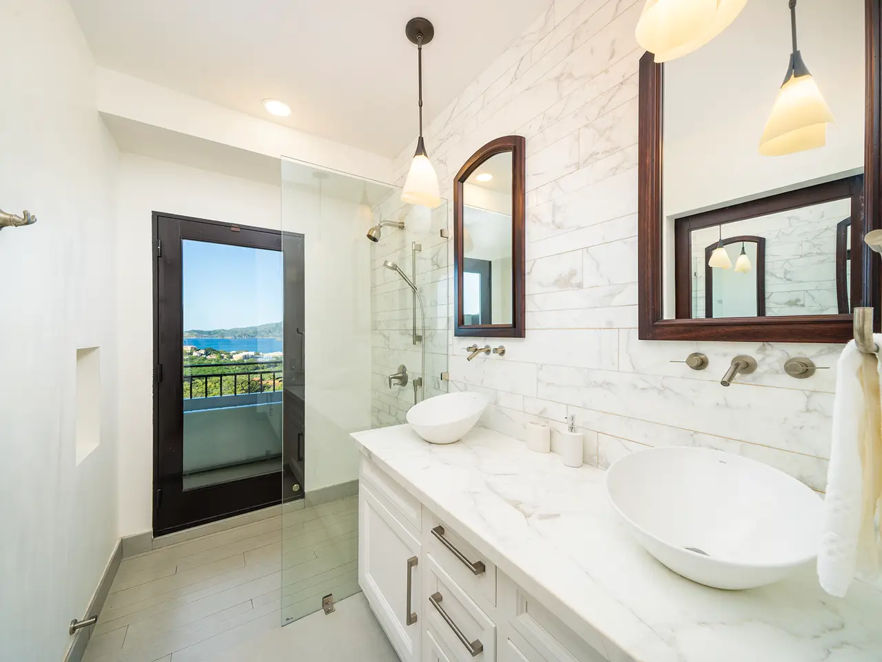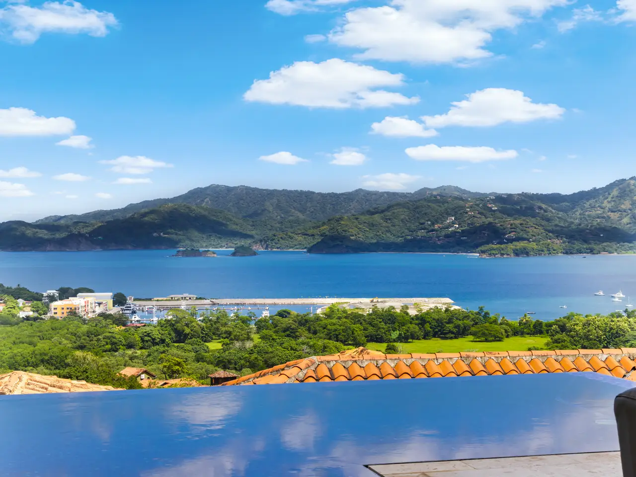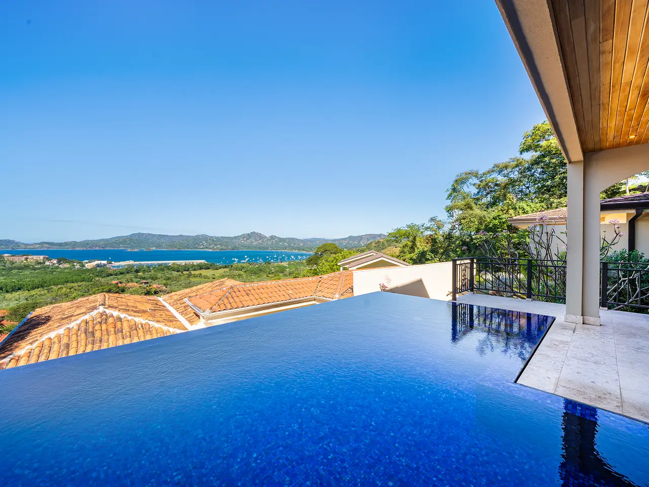 Welcome to Casa Todo Bien and Guest House, a masterpiece of luxury living nestled into the prestigious Southridge mountainside of Playa Flamingo. This opulent estate boasts an expansive main home with 4 bedrooms, and 4.5 baths. The property also includes a luxury guest house, featuring 1 bedroom and 1 bath, a full kitchen, a private plunge pool, and a floatation spa suite with an additional 1.5 baths. With a total construction spanning 7500 sq ft, this residence is a testament to elegance and sophistication. This home has some of the best views in the area and is so close to the beach, you will hear the crashing surf. Best of all, it’s just a short, ten-minute walk down to the beach! The views from the property include the beautiful white sands of Playa Flamingo, the brand new Flamingo Marina, the bay of Potrero all the way north to Las Catalinas, and even the mountain ranges of Nicaragua. As you enter the main house, Venetian plaster walls, travertine floors, a sculptural curved stairway, and a custom-made Italian hand-blown glass chandelier set the tone for the grandeur that awaits. Hand-forged lighting fixtures, imported from Vermont, illuminate the space, creating a timeless ambiance throughout the home. Oversized sliders allow an expansive view of the zero-edge, saltwater lap pool with a Jacuzzi and LED lighting. An outdoor shower is conveniently located nearby the pool. The pool deck area also features custom cabinetry housing a five-burner Cal-Flame barbeque grill. A granite countertop and sink round out the outdoor kitchen. The main house is spread over three levels. The first level includes an open living and kitchen area. The ceiling dramatically soars two stories over the cooking space, with a large, arched window that fills the living environment with natural light. The gourmet kitchen is equipped with GE’s Café line of stainless-steel appliances and includes a five-burner stove with two full ovens. The beverage center resides along a side wall of the kitchen, providing easy access to a wet bar with a mini-fridge and kegerator. A custom pantry, laundry room with dog wash, powder room, and two-story “loftice” (office with loft) are also included on the main level. Custom woodwork in the office includes a desk, cabinetry, window seat, and bookcases. The office loft is accessible by ladder – or a hidden entrance on the second floor. A dumbwaiter just off the kitchen provides a convenient way to deliver drinks, meals, or luggage to the second and third floors. Audio zones in the kitchen, pool terrace, office, and third-floor suite add the perfect touch that makes this home an amazing setting for entertaining. All four of the home’s bedrooms are designed as primary suites and can comfortably accommodate king-size beds. Each suite has ocean views from the bedroom AND the bathroom. The main level includes the Garden Suite, with a bidet and two showers – one of which is outdoors, flanked by palm trees, with a view overlooking the bay of Potrero, with its fishing boats and catamarans. The king bed faces the view of the pool, ocean, mountains, and marina. The second floor includes two more primary bedrooms with ensuites. These bedrooms share a spacious balcony to enjoy the incredible ocean and mountain views that only get better with each floor. The Marble Suite bath highlights Carara marble on the walls and vanity. Step outside to the elegant soaking tub, and sip a glass of wine while enjoying the most incredible sunset view in all of Flamingo. An additional second-floor suite is currently used as an art studio. A large mirror on the bedroom wall conceals a surprise – a secret door to the loft in the office. The loft area includes tigerwood floors, a television, and one of the home’s four audio zones. It’s a great spot to escape and relax. This suite also features the most spacious bathroom in the house, with a huge shower and window with an ocean view. The third-floor Penthouse Suite is the largest of the home’s four bedrooms. The views are expansive and breathtaking. The bathroom includes a shower system with shower head, wand, and wall jets – and again, those ocean views! With a stunning granite accent wall, and a huge full-wall mirror, this bathroom is an extravagant, spa-like retreat. There are two outdoor spaces in the suite: The balcony includes a built-in bench and a custom beverage center with mini-fridge. An additional spacious deck is the perfect place to practice yoga, enjoy sunset drinks, or spend a romantic evening stargazing. Among the many thoughtful touches in this home are a professionally installed alarm system, six outdoor security cameras, high-speed fiber optic internet (up to 200 Mbps), and wifi boosters. A whole-house Generac generator engages automatically in the event of power outages. The Guest House is a fully independent haven with its own pool, ocean views, full kitchen with dishwasher, single-stall garage, and private laundry room on the first floor with a large-capacity washer and dryer. This home is built with the same level of luxury and quality as the main house. Natural stone highlights of granite, slate, and travertine are found throughout the home. The private, infinity-edge plunge pool includes both a spill-through waterfall and a weeping wall, which creates the soothing ambiance of a gentle rainfall. A beautiful laurel wood ceiling and a relaxing soaking tub with a pool view make the bedroom suite feel extraordinarily romantic. The guest house has plenty of space to host extended family, or provide a separate and private space for rental income. Another exclusive feature of this property is the flotation spa, located on the first level of the guest house. Flotation therapy is a deeply relaxing experience. Floating in complete darkness and silence, buoyed by 1,200 pounds of dissolved Epsom salt, provides a super-infusion of magnesium that is absorbed transdermally. This vital mineral helps to improve muscle function, redu