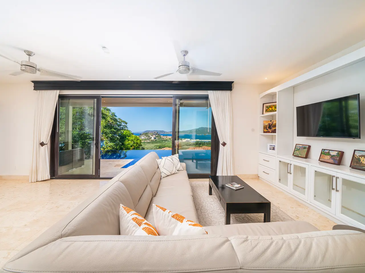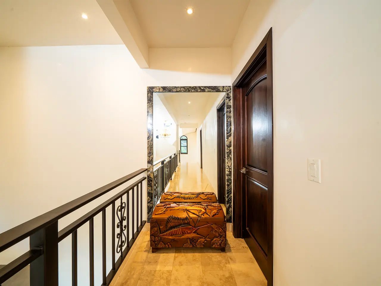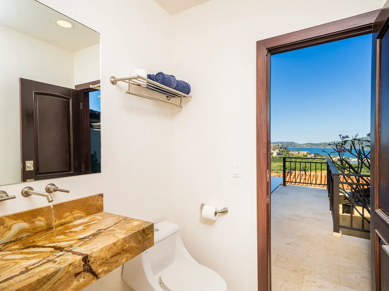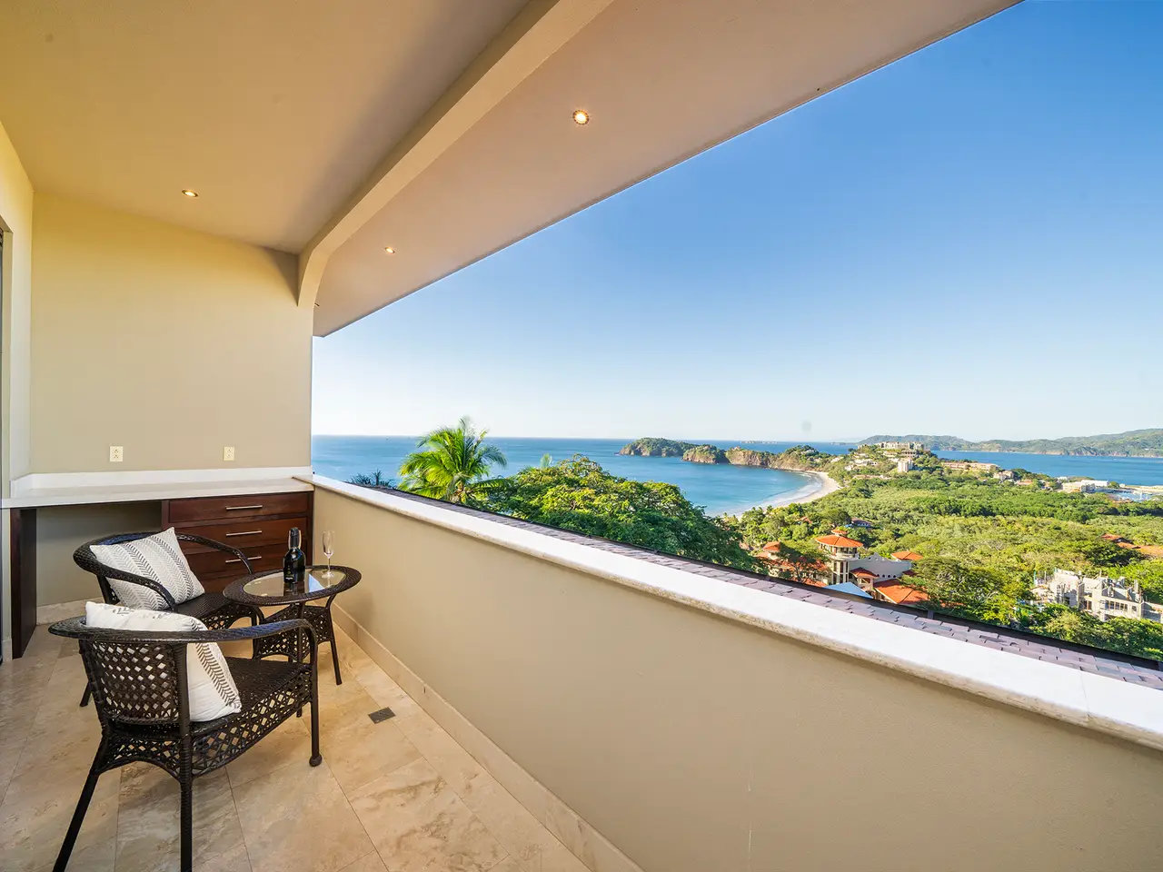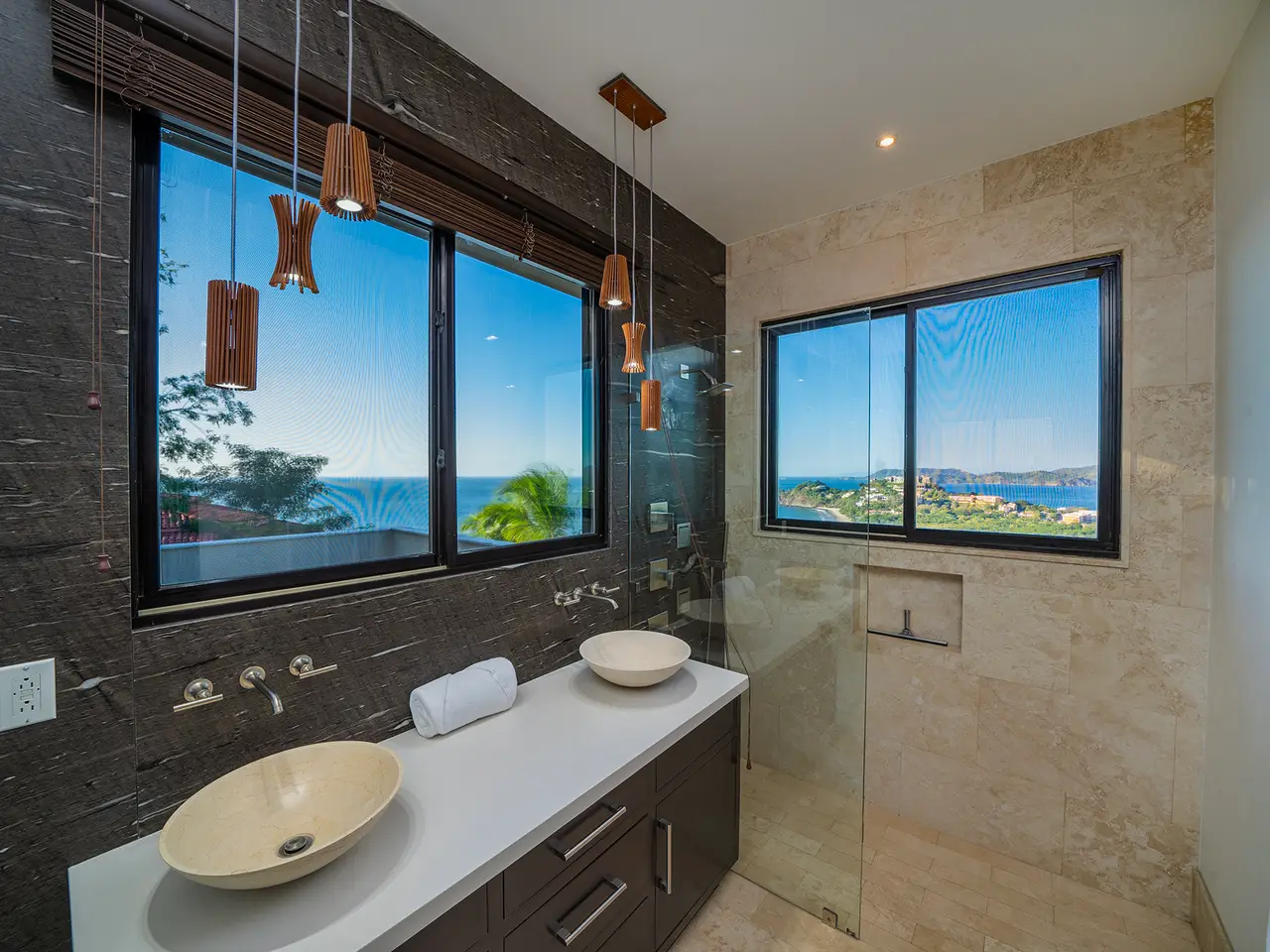 Welcome to Casa Todo Bien and Guest House, a masterpiece of luxury living nestled into the prestigious Southridge mountainside of Playa Flamingo. This opulent estate boasts an expansive main home with 4 bedrooms, and 4.5 baths. The property also includes a luxury guest house, featuring 1 bedroom and 1 bath, a full kitchen, a private plunge pool, and a floatation spa suite with an additional 1.5 baths. With a total construction spanning 7500 sq ft, this residence is a testament to elegance and sophistication. This home has some of the best views in the area and is so close to the beach, you will hear the crashing surf. Best of all, it’s just a short, ten-minute walk down to the beach! The views from the property include the beautiful white sands of Playa Flamingo, the brand new Flamingo Marina, the bay of Potrero all the way north to Las Catalinas, and even the mountain ranges of Nicaragua. As you enter the main house, Venetian plaster walls, travertine floors, a sculptural curved stairway, and a custom-made Italian hand-blown glass chandelier set the tone for the grandeur that awaits. Hand-forged lighting fixtures, imported from Vermont, illuminate the space, creating a timeless ambiance throughout the home. Oversized sliders allow an expansive view of the zero-edge, saltwater lap pool with a Jacuzzi and LED lighting. An outdoor shower is conveniently located nearby the pool. The pool deck area also features custom cabinetry housing a five-burner Cal-Flame barbeque grill. A granite countertop and sink round out the outdoor kitchen. The main house is spread over three levels. The first level includes an open living and kitchen area. The ceiling dramatically soars two stories over the cooking space, with a large, arched window that fills the living environment with natural light. The gourmet kitchen is equipped with GE’s Café line of stainless-steel appliances and includes a five-burner stove with two full ovens. The beverage center resides along a side wall of the kitchen, providing easy access to a wet bar with a mini-fridge and kegerator. A custom pantry, laundry room with dog wash, powder room, and two-story “loftice” (office with loft) are also included on the main level. Custom woodwork in the office includes a desk, cabinetry, window seat, and bookcases. The office loft is accessible by ladder – or a hidden entrance on the second floor. A dumbwaiter just off the kitchen provides a convenient way to deliver drinks, meals, or luggage to the second and third floors. Audio zones in the kitchen, pool terrace, office, and third-floor suite add the perfect touch that makes this home an amazing setting for entertaining. All four of the home’s bedrooms are designed as primary suites and can comfortably accommodate king-size beds. Each suite has ocean views from the bedroom AND the bathroom. The main level includes the Garden Suite, with a bidet and two showers – one of which is outdoors, flanked by palm trees, with a view overlooking the bay of Potrero, with its fishing boats and catamarans. The king bed faces the view of the pool, ocean, mountains, and marina. The second floor includes two more primary bedrooms with ensuites. These bedrooms share a spacious balcony to enjoy the incredible ocean and mountain views that only get better with each floor. The Marble Suite bath highlights Carara marble on the walls and vanity. Step outside to the elegant soaking tub, and sip a glass of wine while enjoying the most incredible sunset view in all of Flamingo. An additional second-floor suite is currently used as an art studio. A large mirror on the bedroom wall conceals a surprise – a secret door to the loft in the office. The loft area includes tigerwood floors, a television, and one of the home’s four audio zones. It’s a great spot to escape and relax. This suite also features the most spacious bathroom in the house, with a huge shower and window with an ocean view. The third-floor Penthouse Suite is the largest of the home’s four bedrooms. The views are expansive and breathtaking. The bathroom includes a shower system with shower head, wand, and wall jets – and again, those ocean views! With a stunning granite accent wall, and a huge full-wall mirror, this bathroom is an extravagant, spa-like retreat. There are two outdoor spaces in the suite: The balcony includes a built-in bench and a custom beverage center with mini-fridge. An additional spacious deck is the perfect place to practice yoga, enjoy sunset drinks, or spend a romantic evening stargazing. Among the many thoughtful touches in this home are a professionally installed alarm system, six outdoor security cameras, high-speed fiber optic internet (up to 200 Mbps), and wifi boosters. A whole-house Generac generator engages automatically in the event of power outages. The Guest House is a fully independent haven with its own pool, ocean views, full kitchen with dishwasher, single-stall garage, and private laundry room on the first floor with a large-capacity washer and dryer. This home is built with the same level of luxury and quality as the main house. Natural stone highlights of granite, slate, and travertine are found throughout the home. The private, infinity-edge plunge pool includes both a spill-through waterfall and a weeping wall, which creates the soothing ambiance of a gentle rainfall. A beautiful laurel wood ceiling and a relaxing soaking tub with a pool view make the bedroom suite feel extraordinarily romantic. The guest house has plenty of space to host extended family, or provide a separate and private space for rental income. Another exclusive feature of this property is the flotation spa, located on the first level of the guest house. Flotation therapy is a deeply relaxing experience. Floating in complete darkness and silence, buoyed by 1,200 pounds of dissolved Epsom salt, provides a super-infusion of magnesium that is absorbed transdermally. This vital mineral helps to improve muscle function, redu
