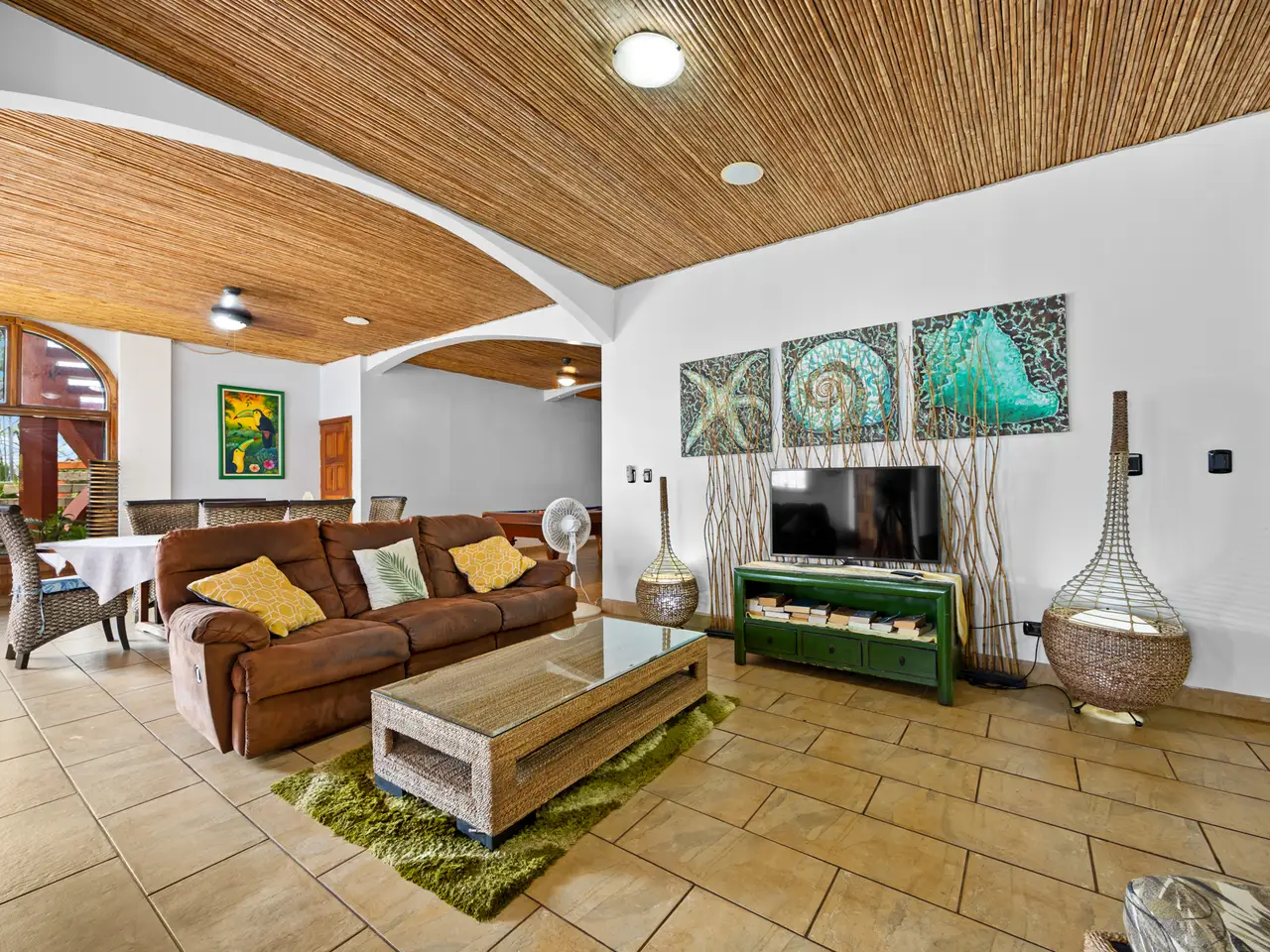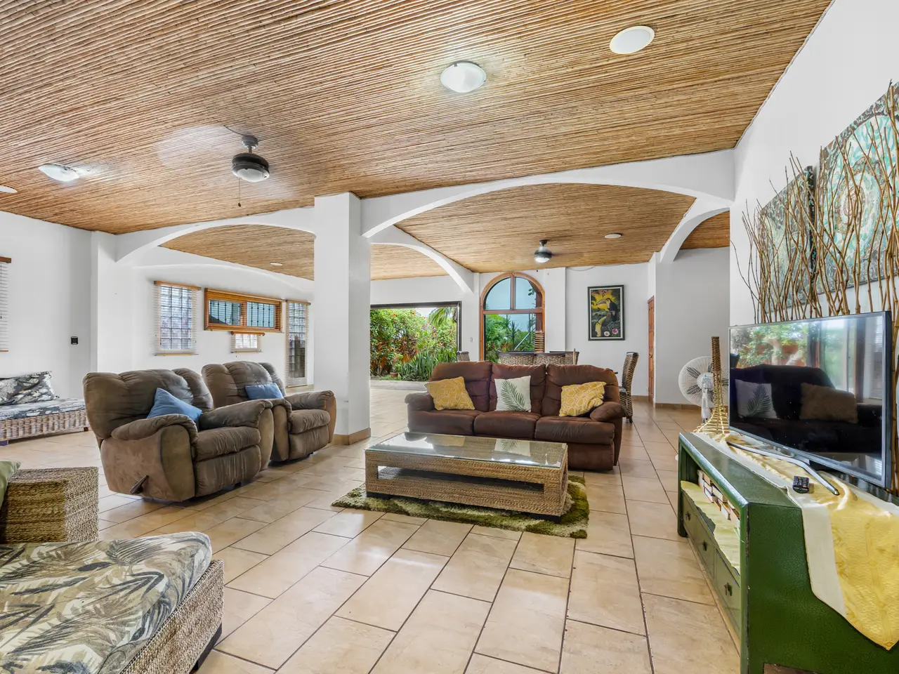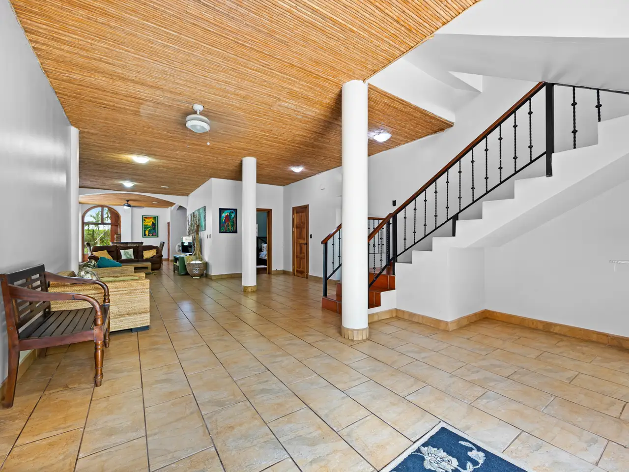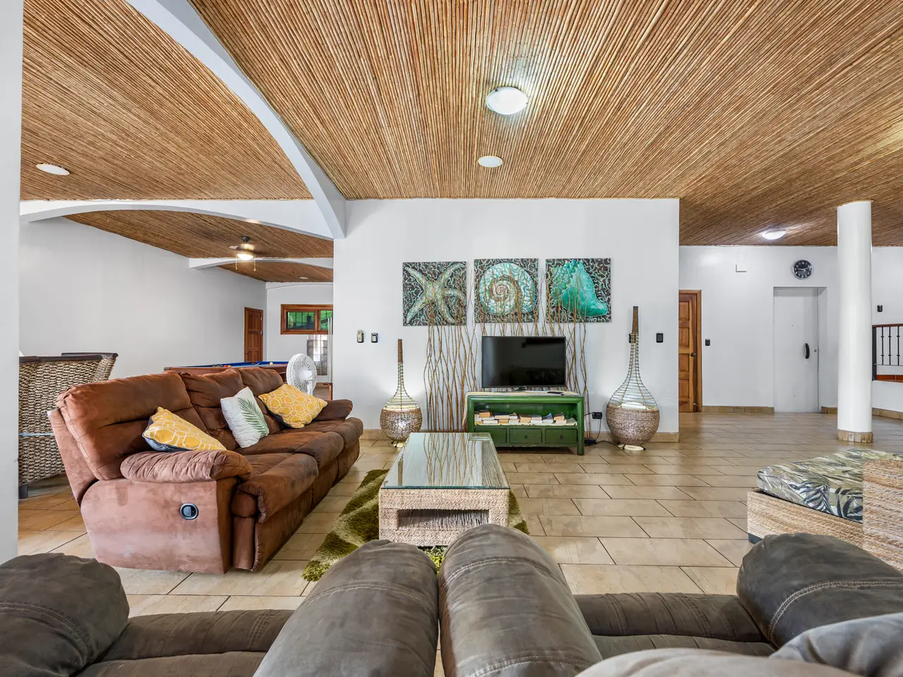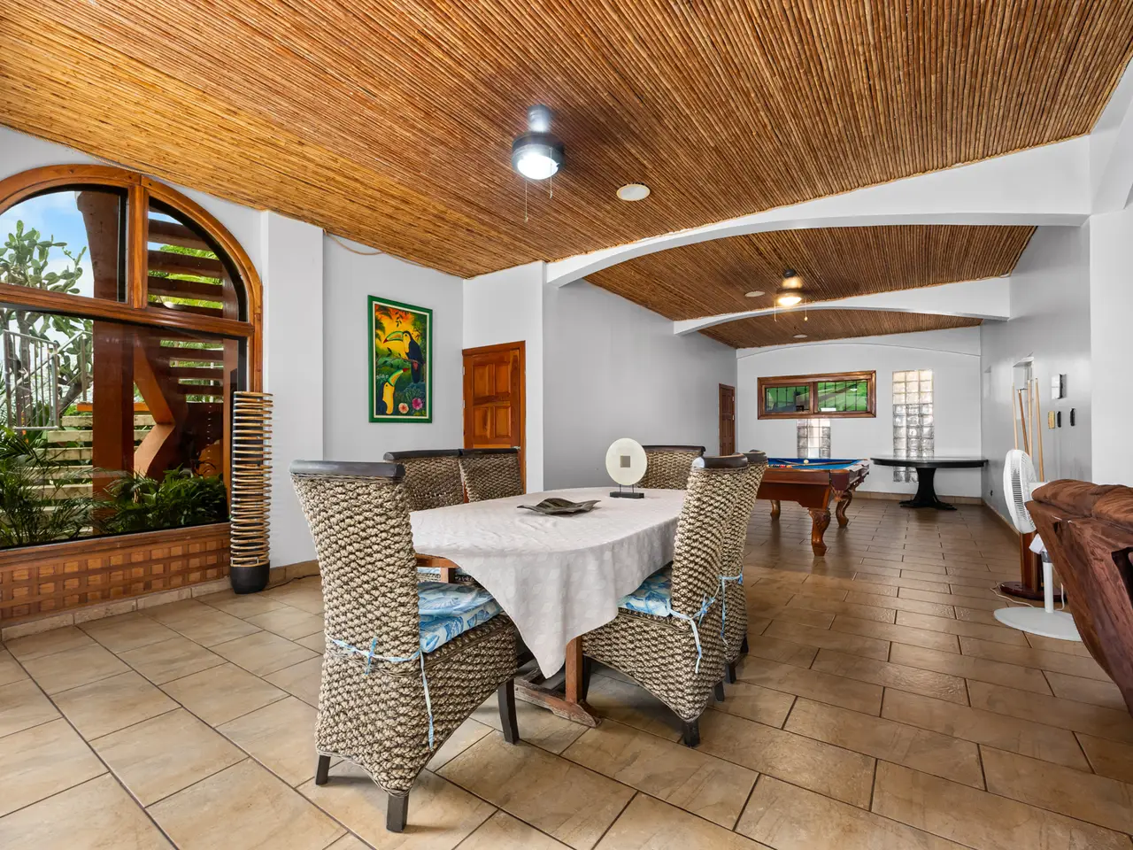 Discover Casa de Sueños, a breathtaking titled beachfront estate offering beauty and comfort in the serene setting of Playa Potrero. This expansive 7,100 sq ft residence boasts six spacious bedrooms, each with its own ensuite bathroom, ensuring privacy and relaxation for all guests. The ground floor invites you in with three large bedrooms, a cozy TV area, a games room featuring a pool table, and a versatile open space perfect for additional entertainment. On the second level, the home’s social area is designed to impress, with soaring peaked ceilings and a spacious galley chef's kitchen equipped with top-of-the-line Viking appliances. The living room, dining room, and kitchen offer stunning ocean views, making it the perfect space for both casual family gatherings and elegant entertaining. The living area opens seamlessly onto a large covered terrace, where you can dine al fresco, prepare meals in the outdoor kitchen, or simply lounge by the infinity-edge pool while taking in the expansive views of the ocean, Catalinas Islands, and the new Flamingo Marina. On this level, you'll also find the oversized primary bedroom, which faces the water and offers a serene, dreamy space to relax and unwind. This estate is not just a home; it’s a lifestyle. Casa de Sueños comfortably sleeps 12 guests, with four bedrooms featuring king-sized beds and two additional rooms offering twin beds, making it ideal for families or groups. The bedrooms are very large and could be easily configured to add additional beds or bunk beds to increase the sleep count even further. The lushly landscaped yard, the peaceful estuary teeming with wildlife behind the property, and the bonus caretaker suite—home to a dedicated caretaker of over a decade—add to the tranquility and convenience of this luxurious retreat. Steps away from the home are the soft sands and warm Pacific Ocean of Playa Potrero. This calm sandy bay is amazing for beach walks or jogs, swimming, stand up paddle boarding, kayaking, catamaran boating, and is loved by locals and foreigners for its shore fishing. Playa Potrero is a charming coastal town known for its tranquil vibe, stunning sunsets, and calm, warm waters. Potrero is home to many restaurants, shops, medical, pharmacy, fitness facilities and banking. It is a 10-15 min drive to expat schools and a 50 min drive to the international Liberia airport. The town is also close to several popular attractions, such as Flamingo Beach, Las Catalinas, and the lively surf town of Tamarindo, making it an ideal spot for those seeking both relaxation and adventure. Whether you're dreaming of a beachfront escape or looking to invest in a piece of paradise, this Potrero home is the perfect choice. Contact Flamingo Beach Realty today to make this stunning property yours and start living the coastal lifestyle you've always wanted.
