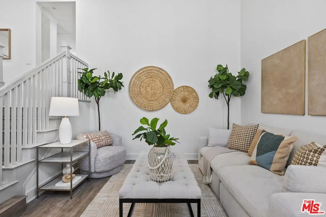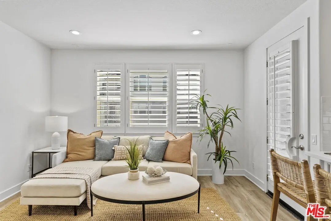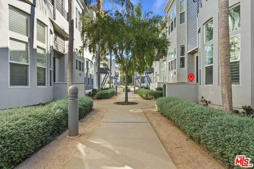 Beautifully updated Tapestry II coveted Plan B townhome. Upon entering the front door, a sun-filled, double-height living room with tall windows sets the tone. Step up to a dedicated dining space and continue to the family room, which is perfect for entertaining or lounging with built-in entertainment equipment storage, gas fireplace with a large wall above for a TV, as well as adjacent balcony. Open to the family room, the refreshed kitchen features newer white cabinetry, quartz countertops, Kitchen Aid stainless appliances, and a large picture window overlooking the balcony. Powder room located on the main level as well. Upstairs are three bedrooms, all with high ceilings and large windows. The spacious primary suite has an updated bath with separate shower and soaking tub, plus walk-in closet, and the two additional bedrooms share a hall bath. Full laundry room off of the garage on the lower level. Private two-car garage with direct-entry features a Tesla universal EV charger and large bonus room plus additional crawl space storage. Other recent updates include LVP flooring in the living areas, fresh paint, and new LED recessed lighting. HOA dues cover cable, internet, alarm monitoring, and earthquake insurance. Prime interior setting facing a quiet courtyard, one block to Concert Park and close to Runway and The Resort. Enjoy Playa Vista's amazing lifestyle amenities including pools, fitness centers, parks, sports courts, playgrounds, and steps to shopping, entertainment, and dining.