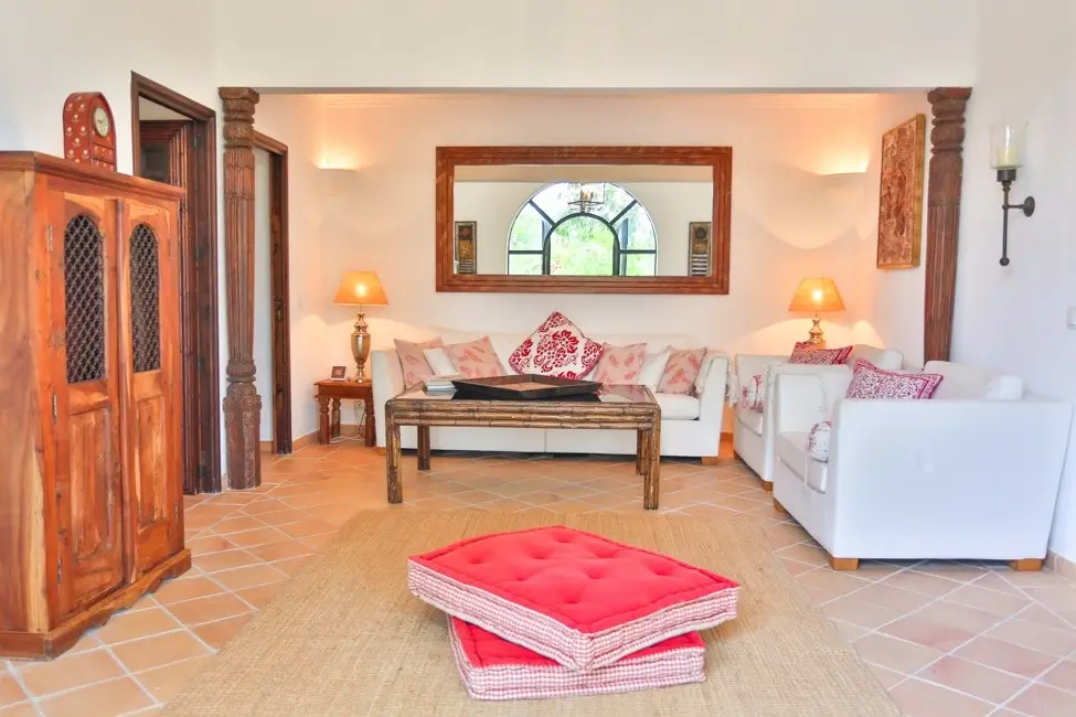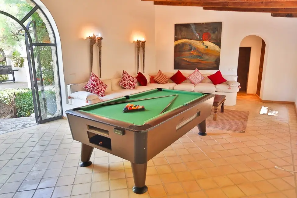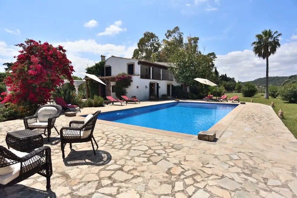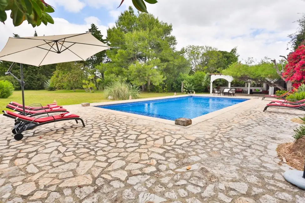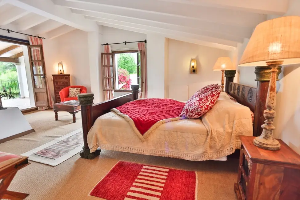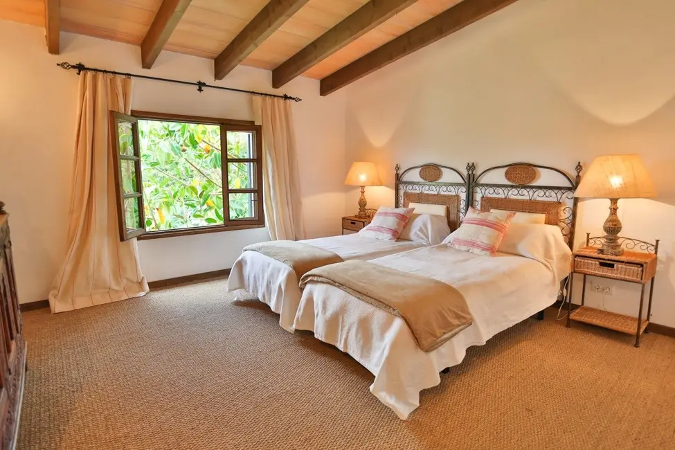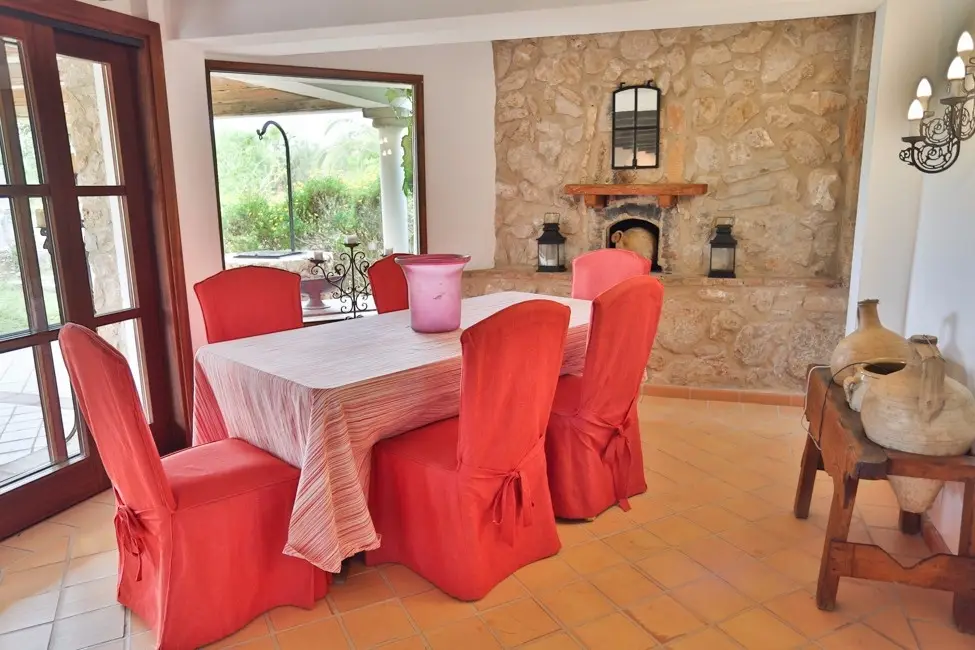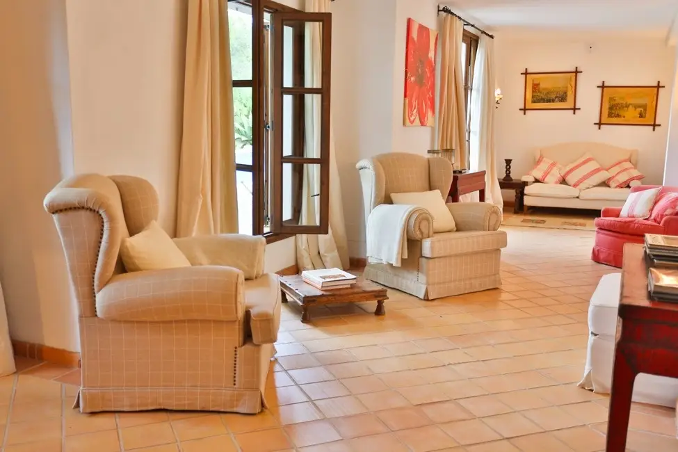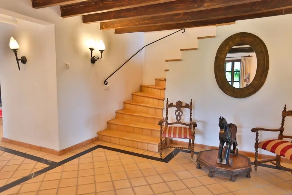 This spectacular finca in Mallorca is located on a 21,000 m2 plot near Pollensa and is ideal for horse lovers. This beautiful, high-quality property consists of two separate, approximately 150-year-old houses that have been painstakingly and tastefully restored with great attention to detail and using the best quality materials. The main house offers two spacious living rooms on the ground floor, an open, rustic, Mallorcan-style kitchen with an adjoining dining area and access to a covered terrace, as well as a cloakroom and a guest toilet. On the upper floor there are three large double bedrooms with en suite bathrooms, two of which have their own terraces (covered and open). The second house also consists of three double bedrooms with en suite bathrooms, a central living room and its own kitchen. Further extras include the horse paddock, a private pool area with a spacious terrace and summer kitchen, a pool house with a Turkish steam bath and a billiards room. A recommended property.