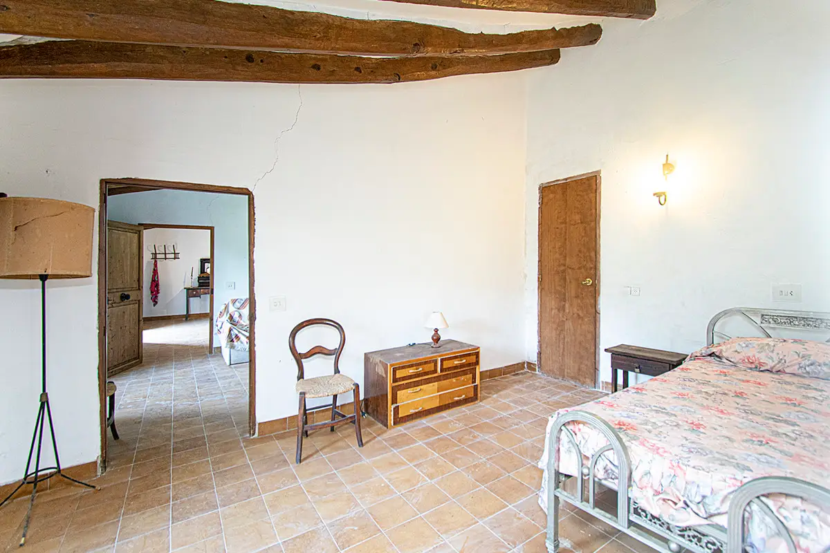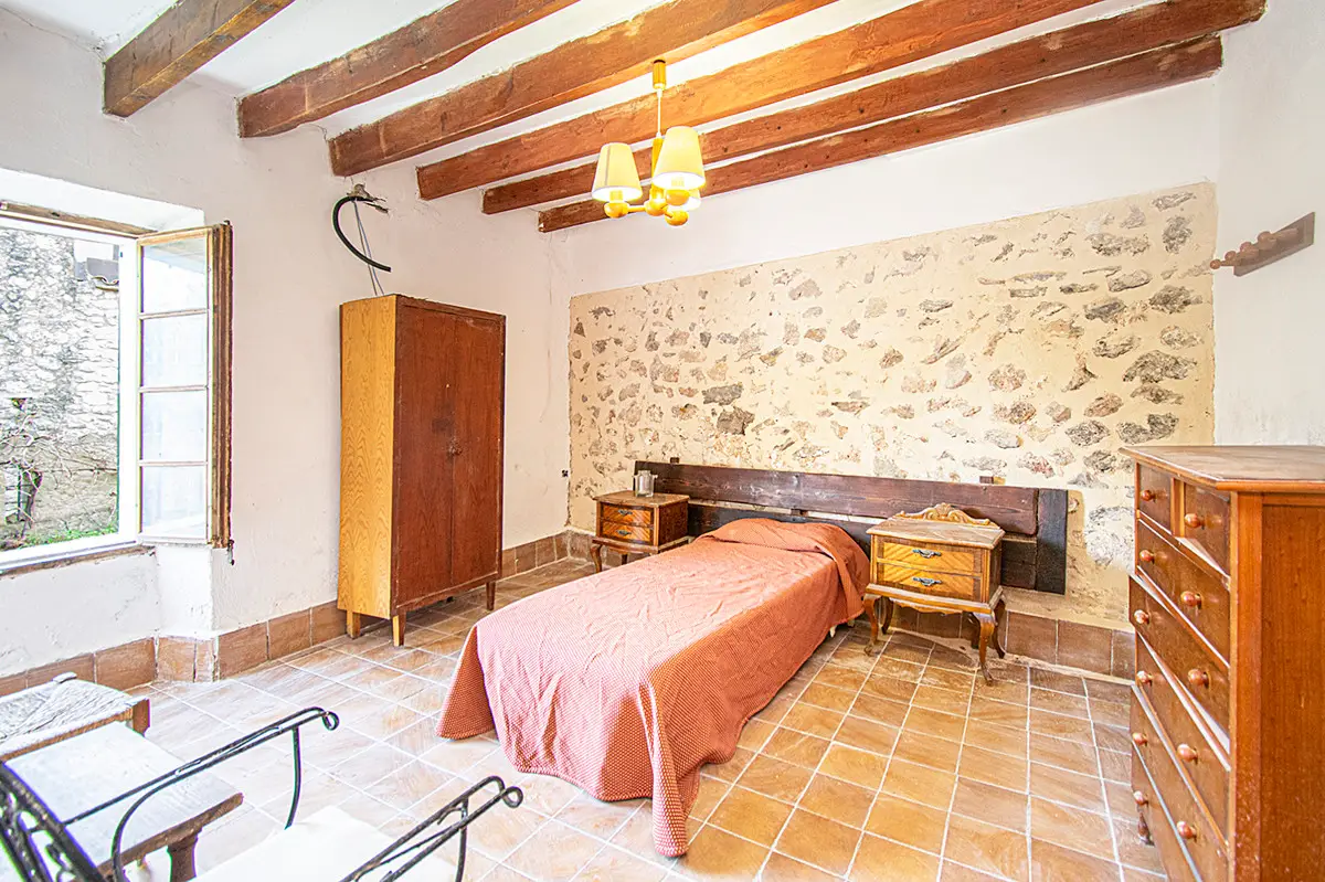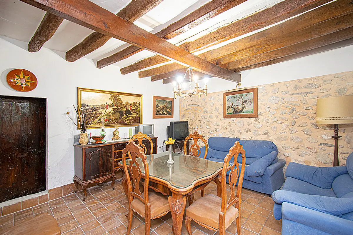 Beautiful Mallorcan property "Possion" with breathtaking views over the Vall de Colonya. The traditional finca is located on a large plot of approximately 45 hectares and has a constructed area of 626 m2, distributed over two floors, porch and pool. There are a large number of different olive, almond and carob trees on the property. The living space of almost 500 m2 is divided into various rooms, which can be adapted to the respective needs if renovation is necessary. Many details of the traditional Mallorcan architecture such as stone walls, wooden beams and terracotta tiles, not to mention an impressive tafona, have been preserved and can be integrated accordingly in a redesign.
