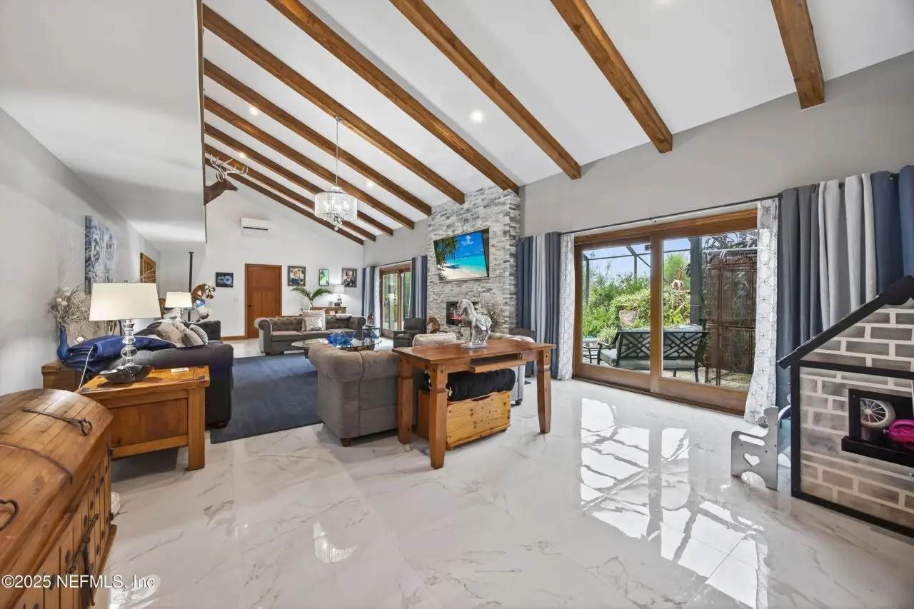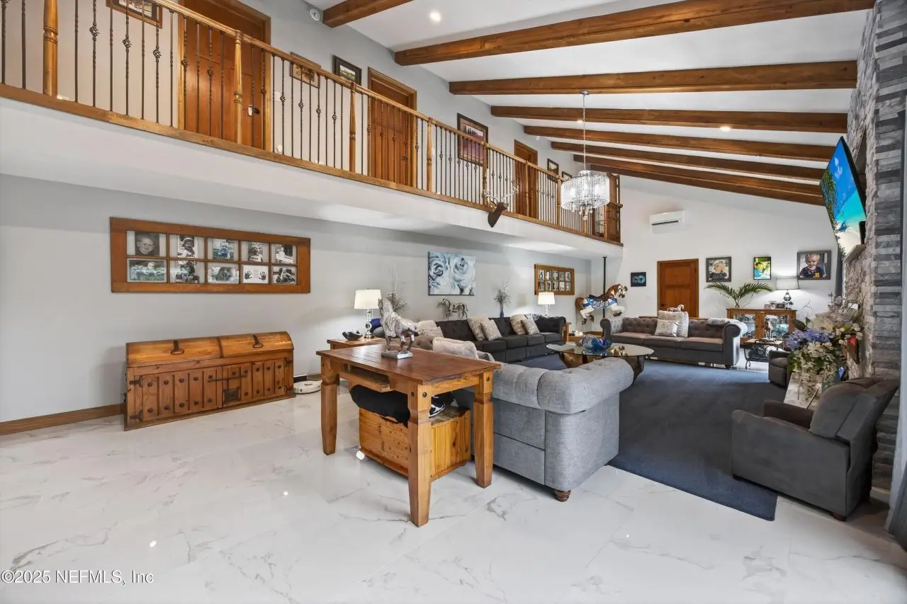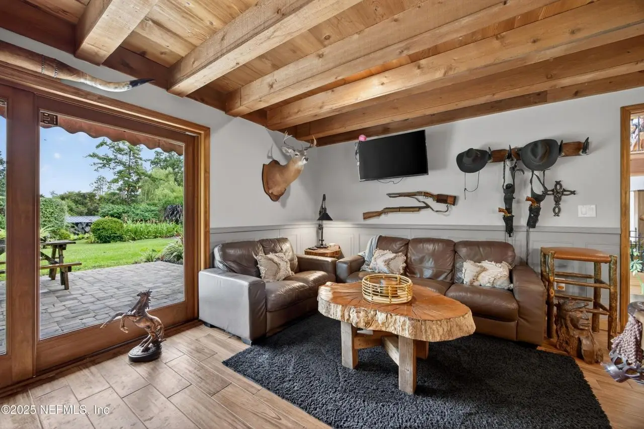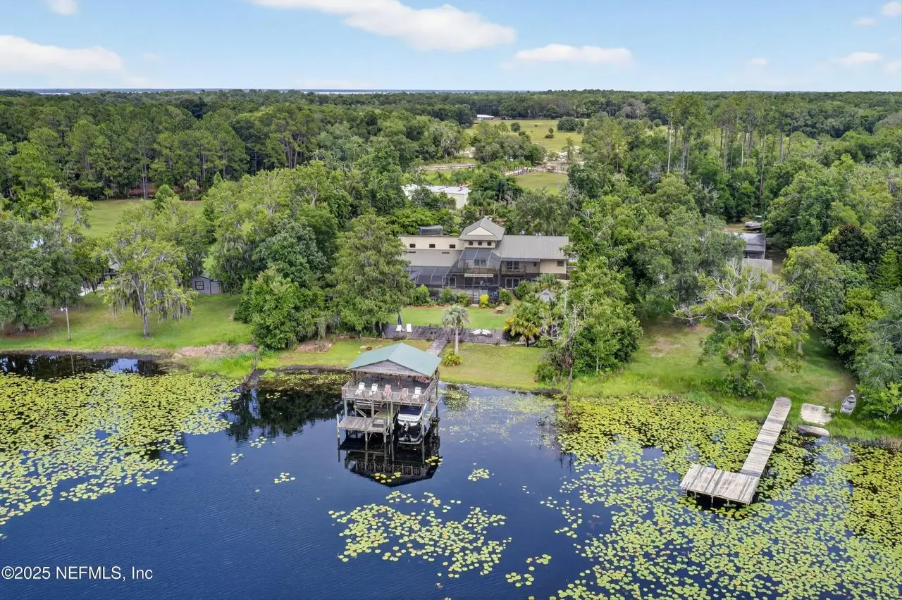 Welcome to this one-of-a-kind luxury lakefront estate on scenic Lake Broward, set on 4.89 fully fenced & gated acres at the end of a quiet dead-end street. With 150 feet of direct waterfront offers rare freedom, privacy, & unmatched amenities. Spanning 6,500 sq ft, this thoughtfully designed home features 6 spacious bedrooms, each with its own ensuite bathroom and deck with a durable metal roof - perfect for enjoying morning coffee or evening sunsets with lake or nature views. The heart of the home revolves around resort-style outdoor living:A two-story dock w/ boat lift and jet ski lift. Screened heated pool w/ multiple waterfalls, a grotto, hot tub, and a built-in gas firepit. Outdoor tiki kitchen with grill & refrigerator - perfect for entertaining lakeside year-round. Inside, the home continues to impress with elegant features including: A spiral staircase leading to a cozy library w/ panoramic lake views 3 cozy fireplaces & A private PUB with Pool table included. Car lovers and hobbyists will appreciate the room for 14+ vehicles, with multiple garages, multiple RV and boat storage, sheds, and a barn with tack room for equestrian or farm needs. Designed with pets in mind, the estate includes: Air-conditioned outdoor dog kennels, A dedicated pet washroom in the main house, complete with wash station and indoor kennels. The property is accessed via a tree-lined circular driveway, offering a stunning and private approach to this estate retreat.