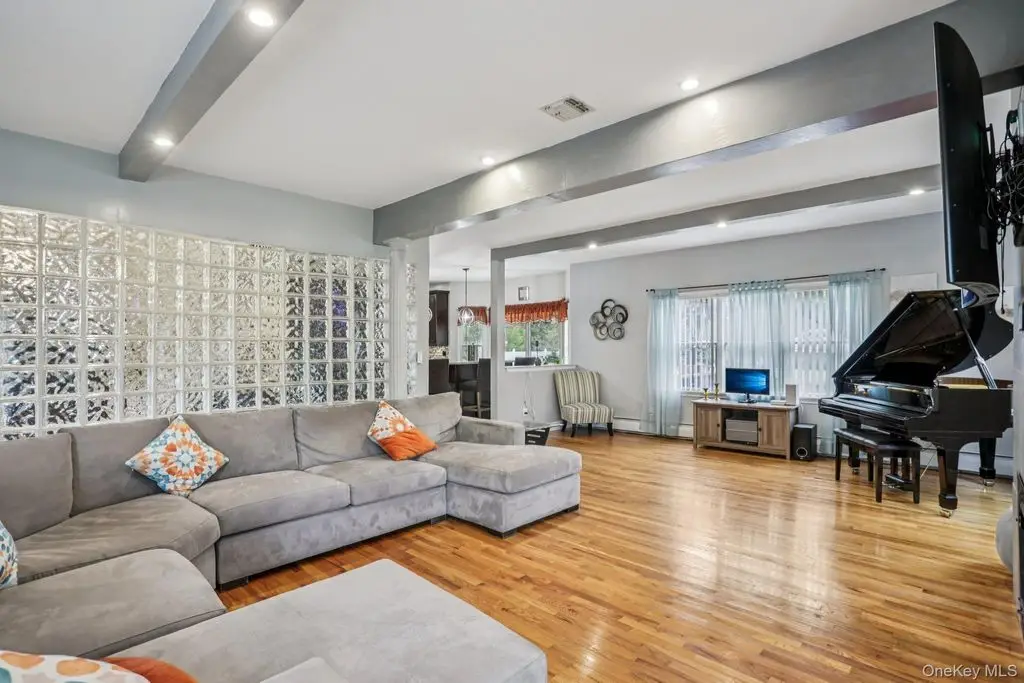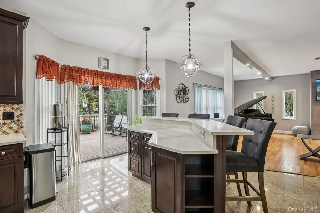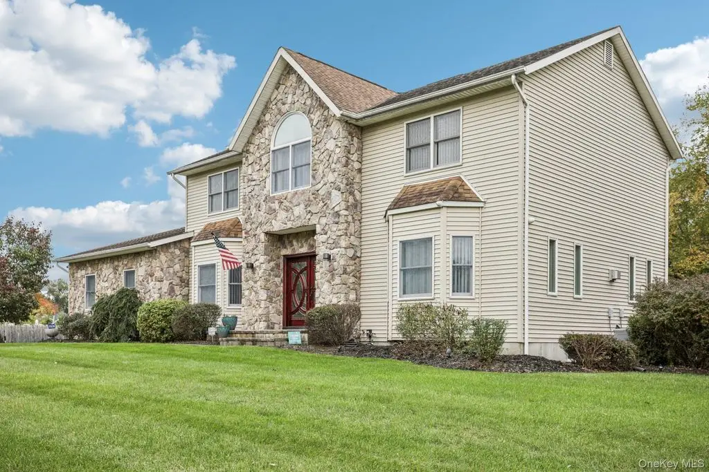 Welcome to this stunning custom colonial showcasing elegant craftsmanship and timeless details throughout. Step into the grand two-story foyer that sets the tone for the spacious and inviting layout. The main level features a formal dining room perfect for gatherings, and an expansive living/family room highlighted by high beamed ceilings, a cozy gas fireplace, and gleaming hardwood floors that extend across the first floor. The large eat-in kitchen offers upgraded stainless steel appliances, quartz countertops, and a custom counter kitchenette area with sliding doors leading to a beautifully landscaped backyard with a Trex deck, ideal for outdoor dining and relaxation. A convenient first-floor bedroom with a full ensuite bathroom provides flexibility for guests or multigenerational living. Upstairs, the primary suite offers comfort and privacy with its own full bathroom. Three additional bedrooms share a spacious hall bath, providing ample room for everyone. The lower walkout level adds even more living space, featuring a bonus room and another full bathroom, perfect for a home office, gym, or media room.Additional highlights include a two-car garage, whole-house generator, and many thoughtful upgrades throughout. This home combines quality, comfort, and style in a desirable setting, a true must-see.