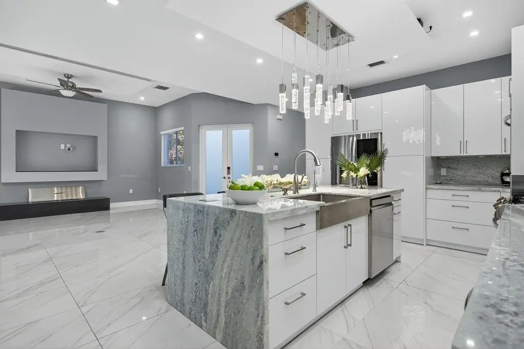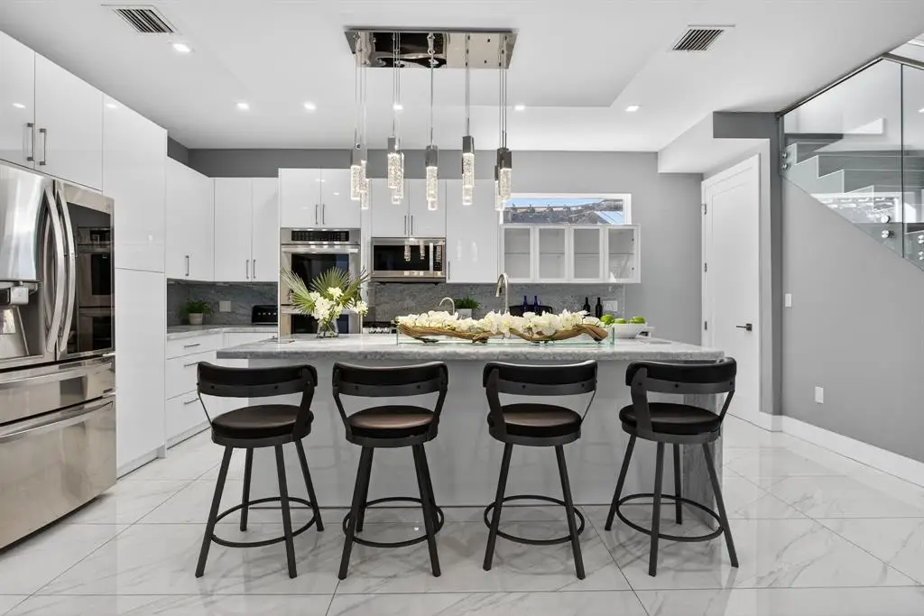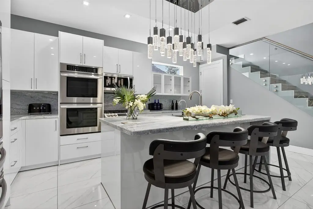 Gourmet kitchen with gas stove and center island