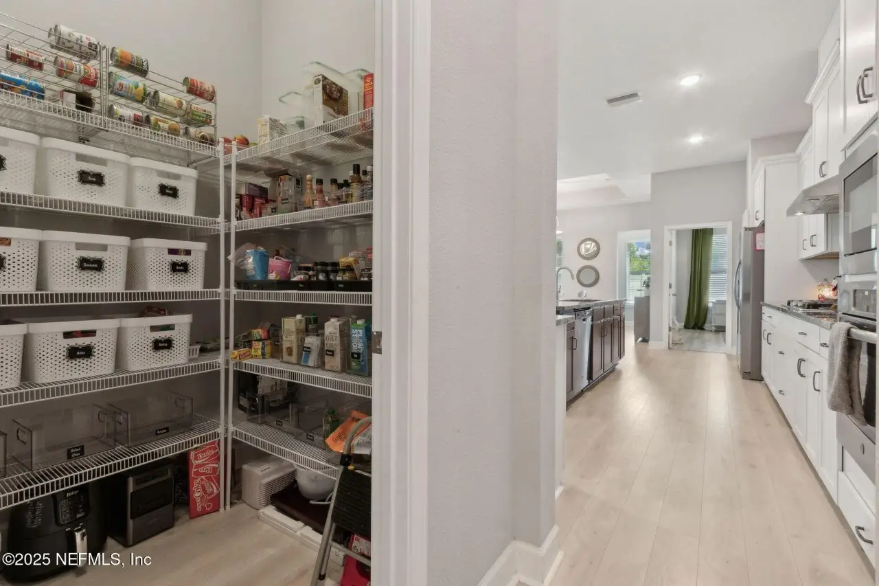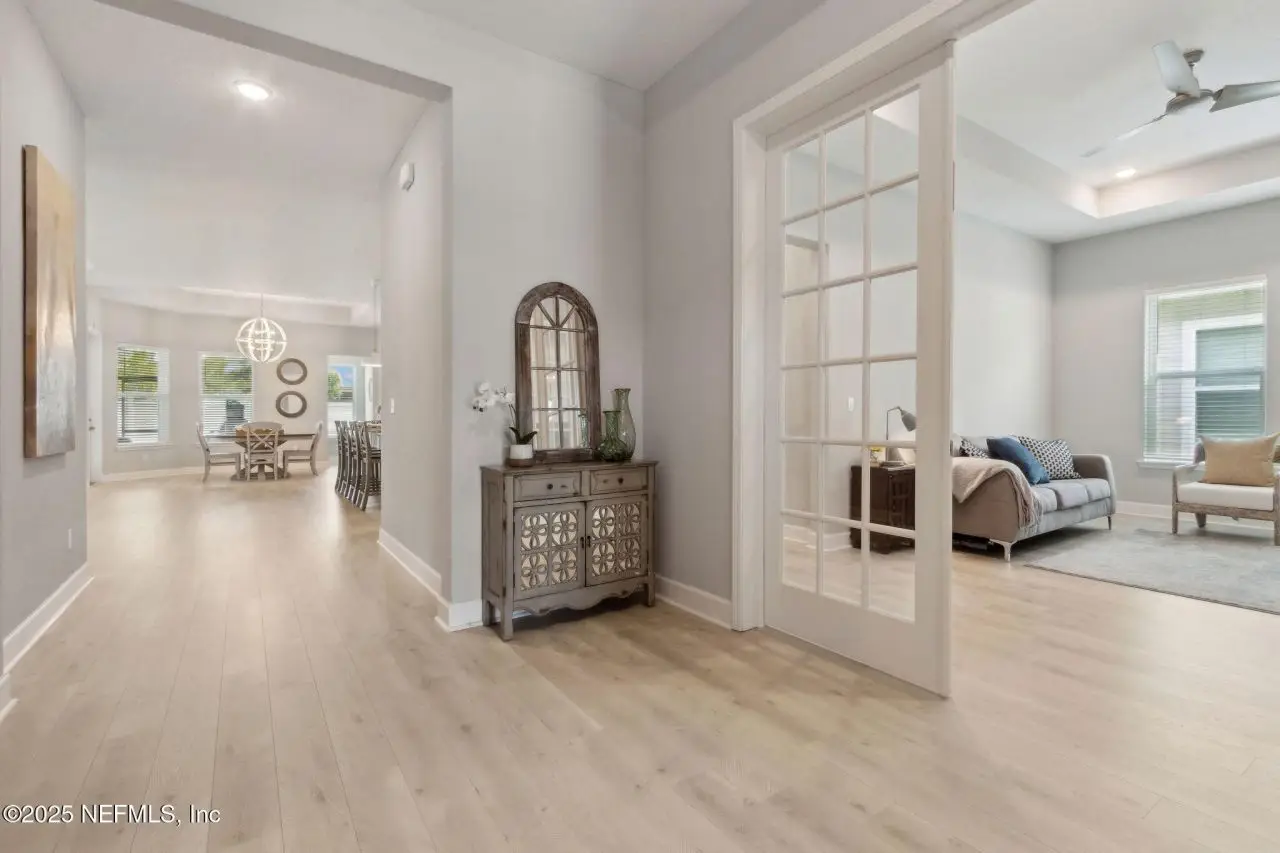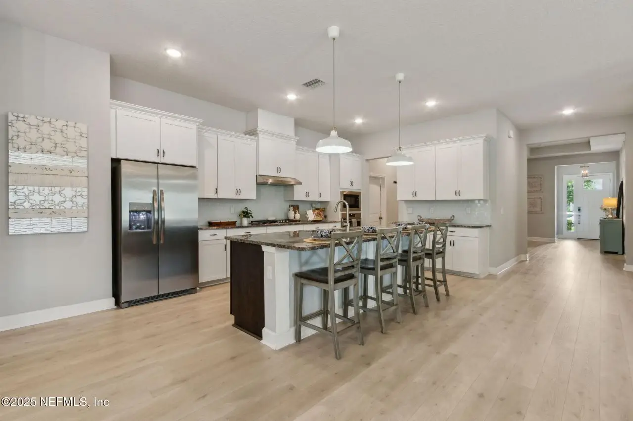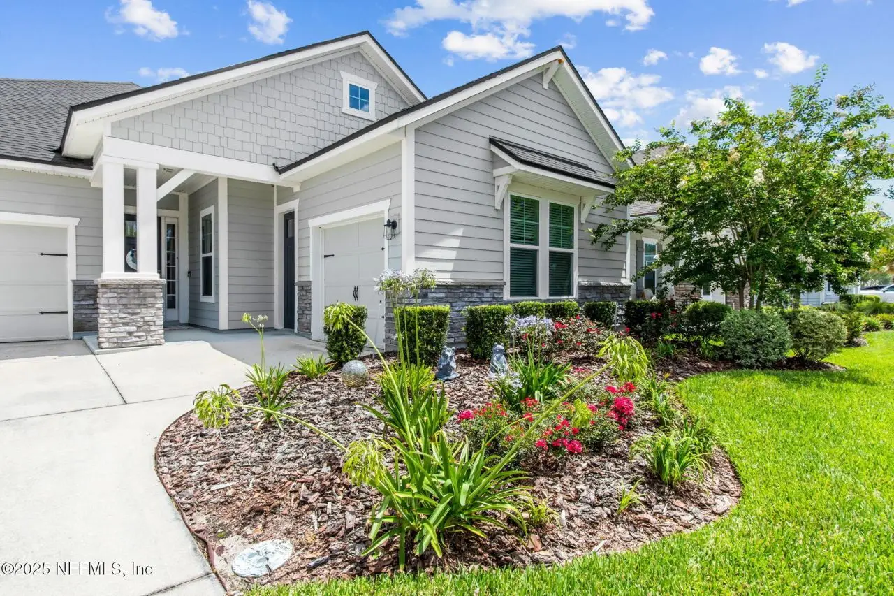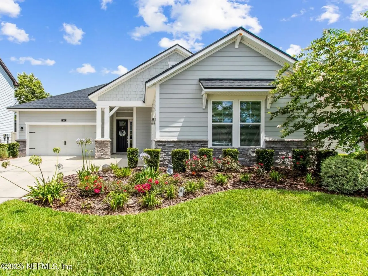 Welcome to 101 Bucktail Avenue - A Stunning Providence Home in Nocatee. This beautifully designed Ellaville model by Providence Homes offers the perfect blend of luxury, comfort, and energy efficiency - all nestled in the highly sought-after Outlook at Twenty Mile neighborhood in Nocatee. With 4 bedrooms, 3 full baths, and a 2-car garage plus a separate 1-car garage, this 100% Energy Star Certified one-story home is as functional as it is stylish. From the manicured landscaping to the elegant exterior, this home impresses from the start. Step inside to a warm and welcoming foyer with a custom chevron wood accent wall, setting the tone for the quality and craftsmanship throughout. At the heart of the home is a chef-inspired kitchen featuring white shaker cabinetry, granite countertops, stainless steel appliances, gas range, oversized island, and walk-in pantry. Opening seamlessly to a bright cafe dining area and spacious family room filled with natural light - perfect for everyday living and entertaining. Just off the cafe is a pocket office - an ideal tucked-away workspace for remote work, homework, or household planning. Nearby, the formal dining/living room with French doors offers flexibility for hosting or additional living space. The private primary suite is a serene retreat, complete with space for a seating area, a large walk-in closet, and a spa-inspired bath with soaking tub, walk-in shower with custom tile and rainhead, and split vanities with a dedicated makeup counter. The laundry room connects directly to the primary closet and also has hallway access for added ease. Three additional bedrooms are located on the opposite side of the home. Two share a Jack-and-Jill bath, while the third is near a full guest bath - ideal for visitors, teens, or versatile use. Additional features include a built-in drop zone with storage near the garage entry, a spacious laundry room with folding space, and a 2-car garage plus a separate 1-car garage bay - perfect for a golf cart, workshop, or extra storage. Enjoy the incredible lifestyle that Nocatee offers - top-rated St. Johns County schools, resort-style amenities, miles of trails, splash parks, community events, and a close-knit neighborhood vibe. All just minutes from beaches, shopping, dining, and major roadways. LOVE WHERE YOU LIVE!