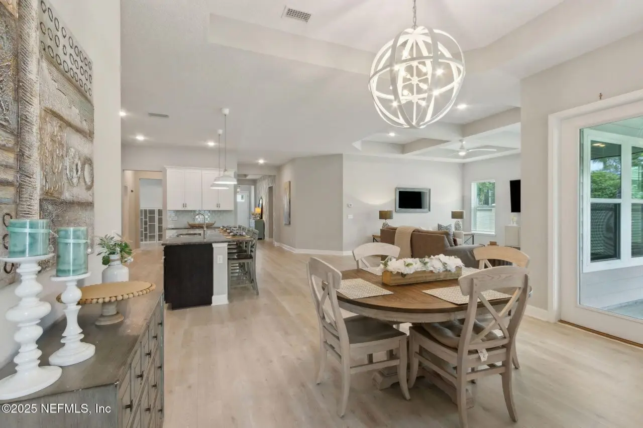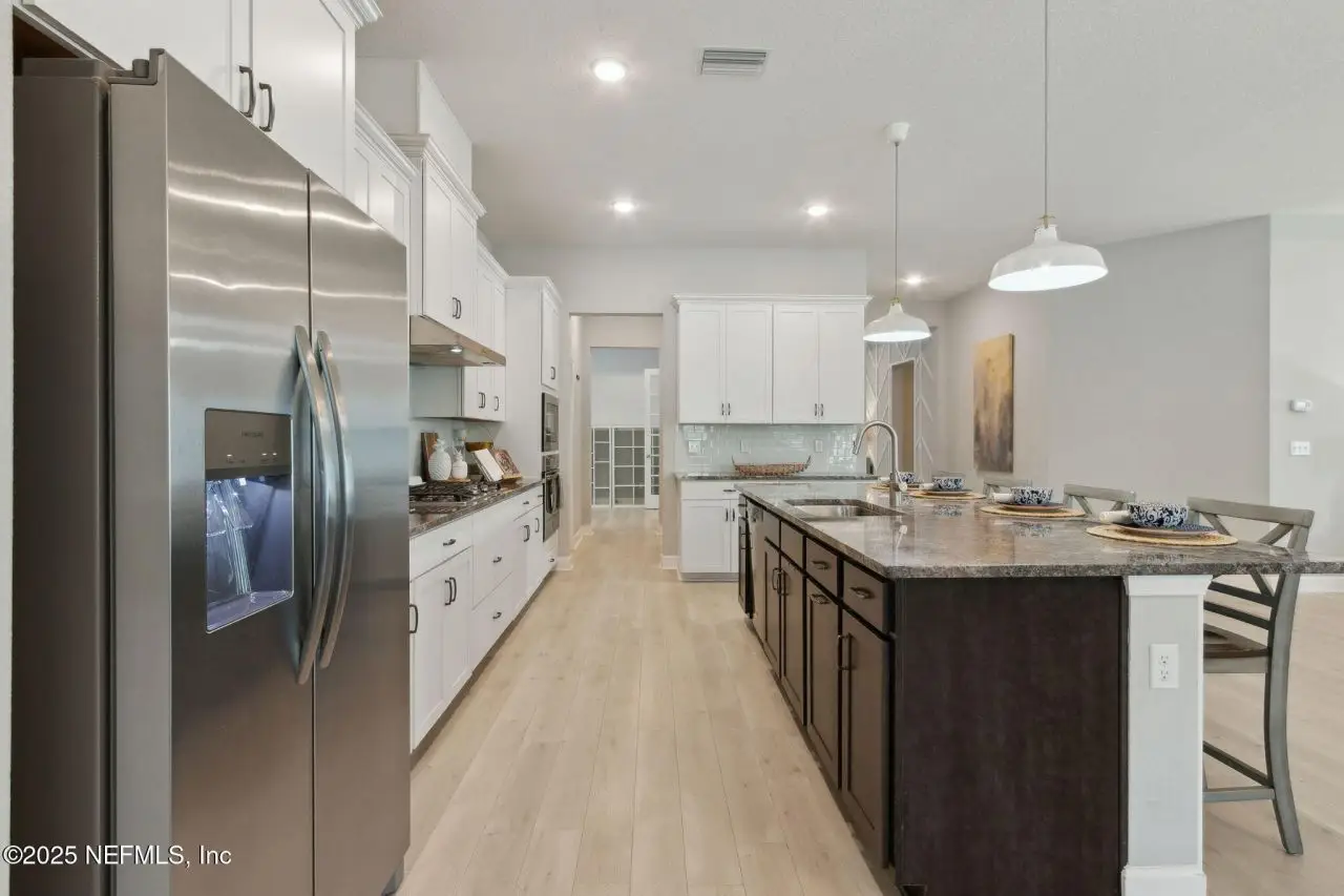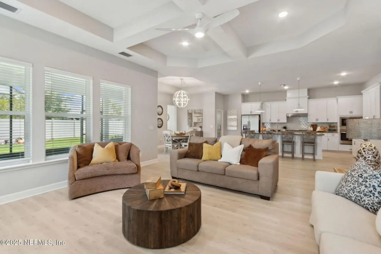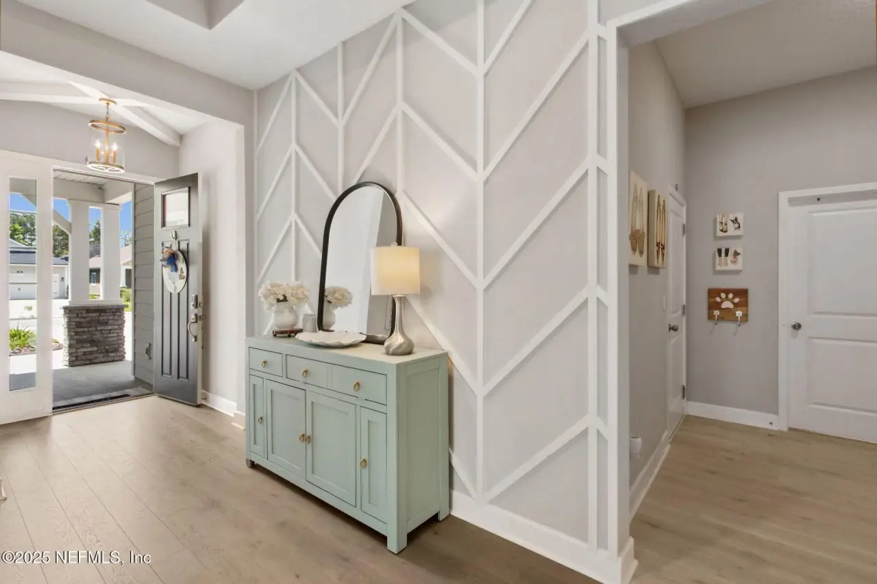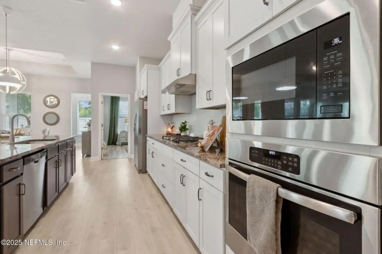 Welcome to 101 Bucktail Avenue - A Stunning Providence Home in Nocatee. This beautifully designed Ellaville model by Providence Homes offers the perfect blend of luxury, comfort, and energy efficiency - all nestled in the highly sought-after Outlook at Twenty Mile neighborhood in Nocatee. With 4 bedrooms, 3 full baths, and a 2-car garage plus a separate 1-car garage, this 100% Energy Star Certified one-story home is as functional as it is stylish. From the manicured landscaping to the elegant exterior, this home impresses from the start. Step inside to a warm and welcoming foyer with a custom chevron wood accent wall, setting the tone for the quality and craftsmanship throughout. At the heart of the home is a chef-inspired kitchen featuring white shaker cabinetry, granite countertops, stainless steel appliances, gas range, oversized island, and walk-in pantry. Opening seamlessly to a bright cafe dining area and spacious family room filled with natural light - perfect for everyday living and entertaining. Just off the cafe is a pocket office - an ideal tucked-away workspace for remote work, homework, or household planning. Nearby, the formal dining/living room with French doors offers flexibility for hosting or additional living space. The private primary suite is a serene retreat, complete with space for a seating area, a large walk-in closet, and a spa-inspired bath with soaking tub, walk-in shower with custom tile and rainhead, and split vanities with a dedicated makeup counter. The laundry room connects directly to the primary closet and also has hallway access for added ease. Three additional bedrooms are located on the opposite side of the home. Two share a Jack-and-Jill bath, while the third is near a full guest bath - ideal for visitors, teens, or versatile use. Additional features include a built-in drop zone with storage near the garage entry, a spacious laundry room with folding space, and a 2-car garage plus a separate 1-car garage bay - perfect for a golf cart, workshop, or extra storage. Enjoy the incredible lifestyle that Nocatee offers - top-rated St. Johns County schools, resort-style amenities, miles of trails, splash parks, community events, and a close-knit neighborhood vibe. All just minutes from beaches, shopping, dining, and major roadways. LOVE WHERE YOU LIVE!