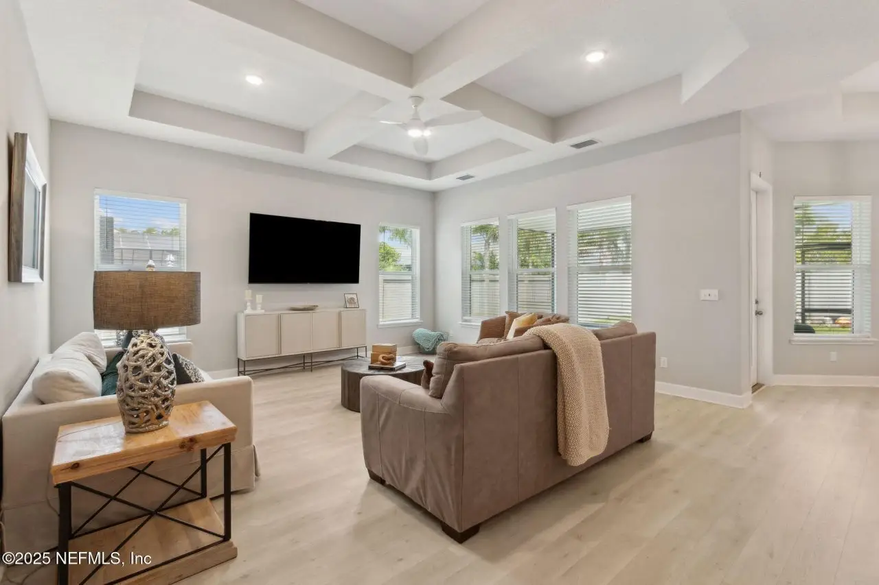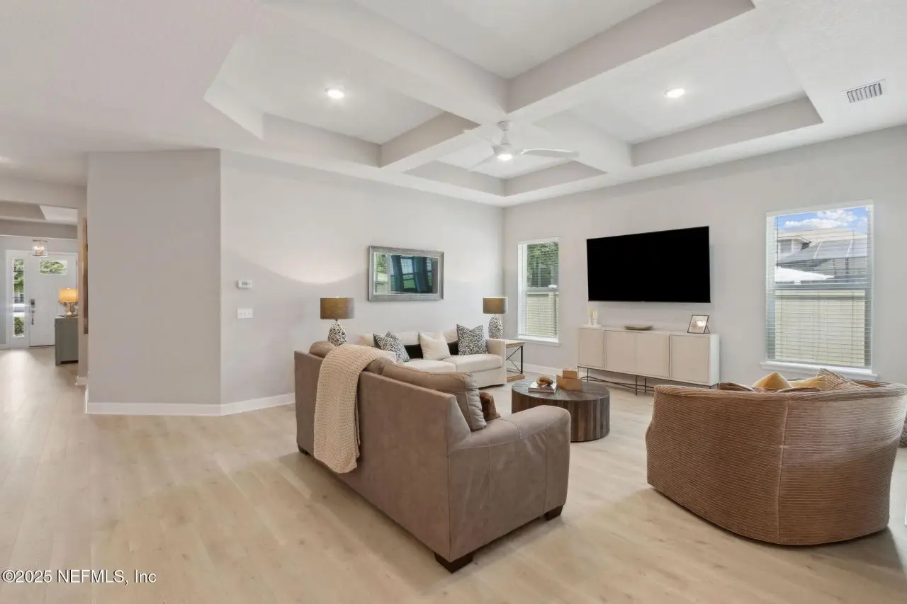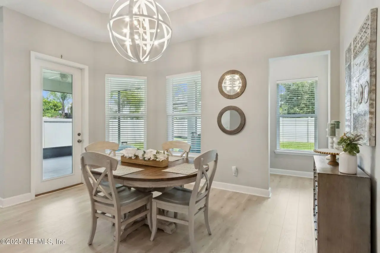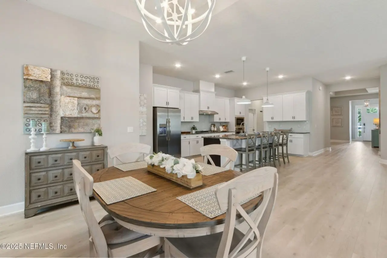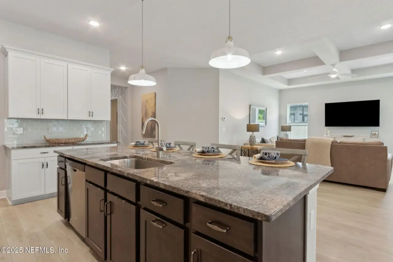 Welcome to 101 Bucktail Avenue - A Stunning Providence Home in Nocatee. This beautifully designed Ellaville model by Providence Homes offers the perfect blend of luxury, comfort, and energy efficiency - all nestled in the highly sought-after Outlook at Twenty Mile neighborhood in Nocatee. With 4 bedrooms, 3 full baths, and a 2-car garage plus a separate 1-car garage, this 100% Energy Star Certified one-story home is as functional as it is stylish. From the manicured landscaping to the elegant exterior, this home impresses from the start. Step inside to a warm and welcoming foyer with a custom chevron wood accent wall, setting the tone for the quality and craftsmanship throughout. At the heart of the home is a chef-inspired kitchen featuring white shaker cabinetry, granite countertops, stainless steel appliances, gas range, oversized island, and walk-in pantry. Opening seamlessly to a bright cafe dining area and spacious family room filled with natural light - perfect for everyday living and entertaining. Just off the cafe is a pocket office - an ideal tucked-away workspace for remote work, homework, or household planning. Nearby, the formal dining/living room with French doors offers flexibility for hosting or additional living space. The private primary suite is a serene retreat, complete with space for a seating area, a large walk-in closet, and a spa-inspired bath with soaking tub, walk-in shower with custom tile and rainhead, and split vanities with a dedicated makeup counter. The laundry room connects directly to the primary closet and also has hallway access for added ease. Three additional bedrooms are located on the opposite side of the home. Two share a Jack-and-Jill bath, while the third is near a full guest bath - ideal for visitors, teens, or versatile use. Additional features include a built-in drop zone with storage near the garage entry, a spacious laundry room with folding space, and a 2-car garage plus a separate 1-car garage bay - perfect for a golf cart, workshop, or extra storage. Enjoy the incredible lifestyle that Nocatee offers - top-rated St. Johns County schools, resort-style amenities, miles of trails, splash parks, community events, and a close-knit neighborhood vibe. All just minutes from beaches, shopping, dining, and major roadways. LOVE WHERE YOU LIVE!