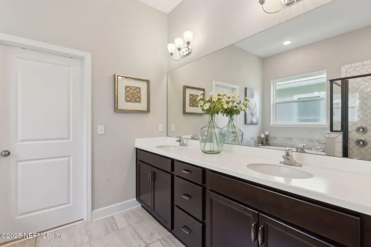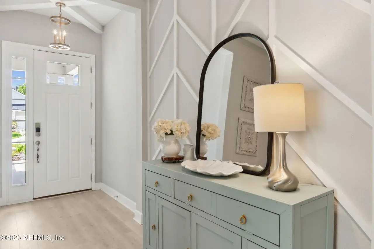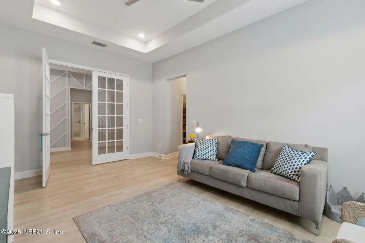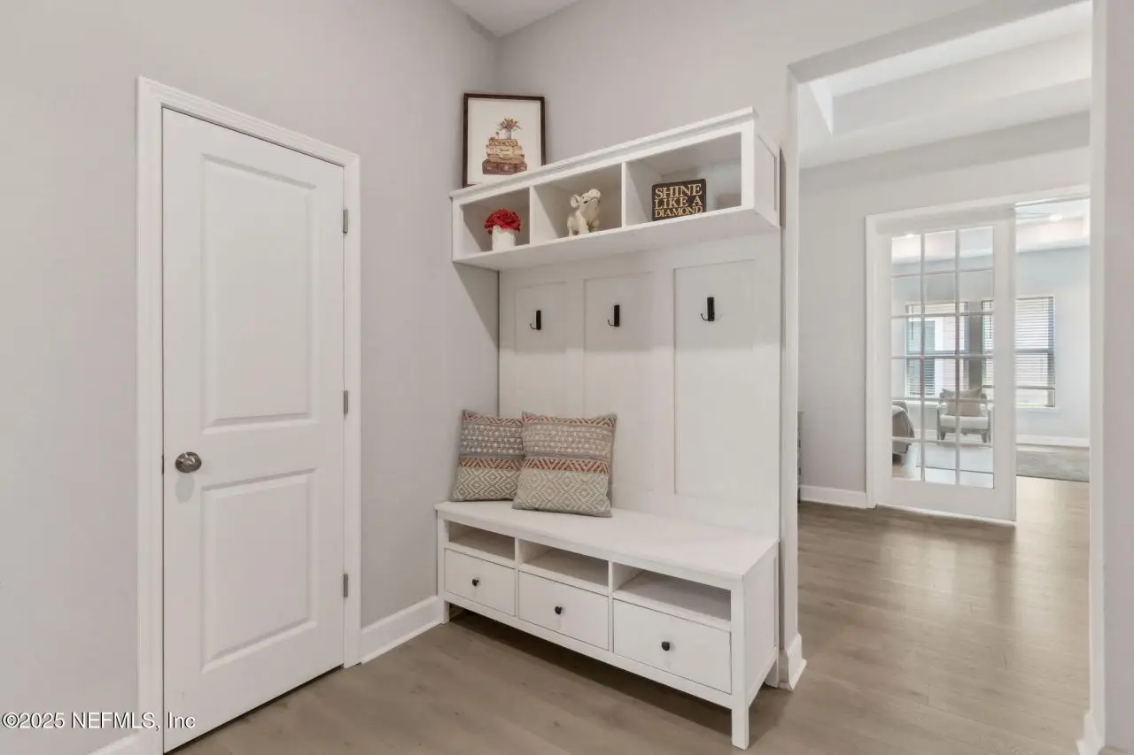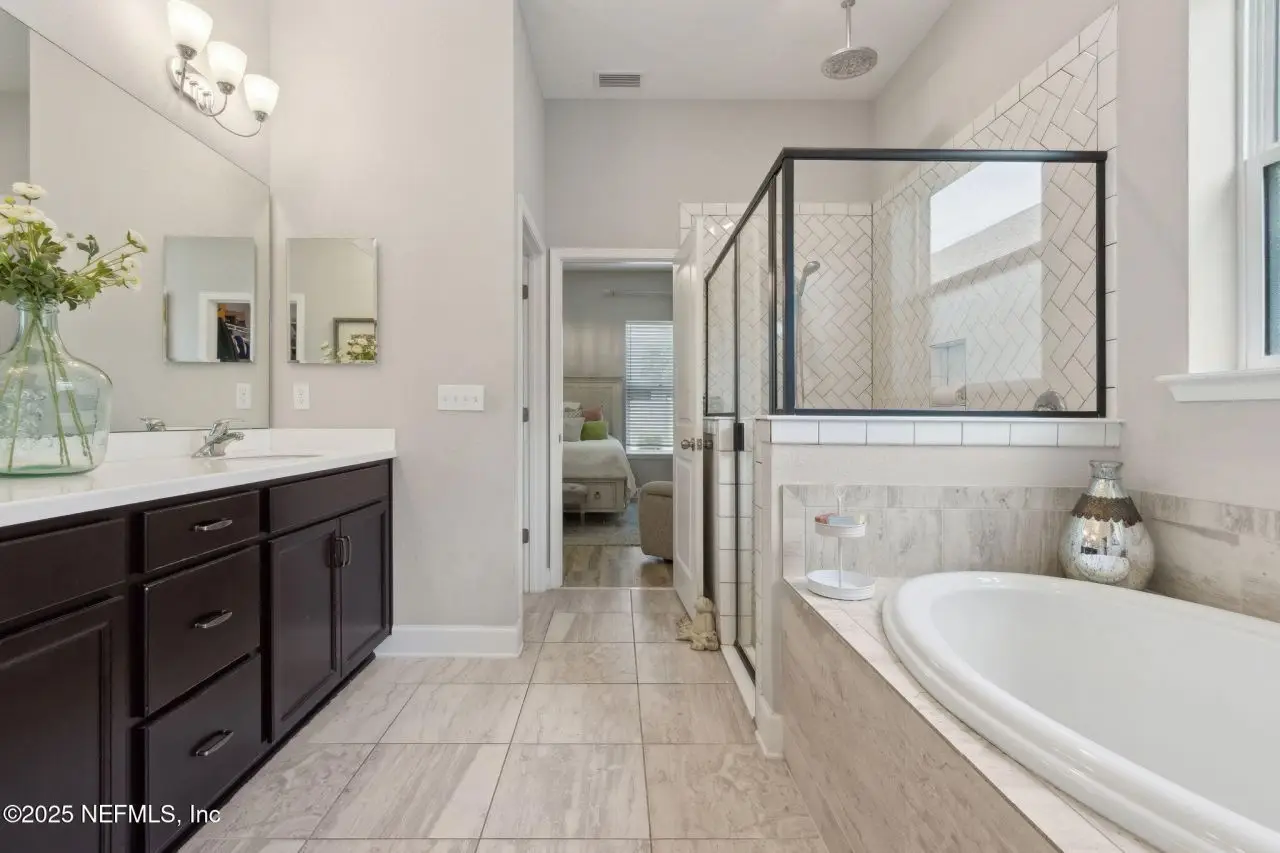Welcome to 101 Bucktail Avenue - A Stunning Providence Home in Nocatee. This beautifully designed Ellaville model by Providence Homes offers the perfect blend of luxury, comfort, and energy efficiency - all nestled in the highly sought-after Outlook at Twenty Mile neighborhood in Nocatee. With 4 bedrooms, 3 full baths, and a 2-car garage plus a separate 1-car garage, this 100% Energy Star Certified one-story home is as functional as it is stylish. From the manicured landscaping to the elegant exterior, this home impresses from the start. Step inside to a warm and welcoming foyer with a custom chevron wood accent wall, setting the tone for the quality and craftsmanship throughout. At the heart of the home is a chef-inspired kitchen featuring white shaker cabinetry, granite countertops, stainless steel appliances, gas range, oversized island, and walk-in pantry. Opening seamlessly to a bright cafe dining area and spacious family room filled with natural light - perfect for everyday living and entertaining. Just off the cafe is a pocket office - an ideal tucked-away workspace for remote work, homework, or household planning. Nearby, the formal dining/living room with French doors offers flexibility for hosting or additional living space. The private primary suite is a serene retreat, complete with space for a seating area, a large walk-in closet, and a spa-inspired bath with soaking tub, walk-in shower with custom tile and rainhead, and split vanities with a dedicated makeup counter. The laundry room connects directly to the primary closet and also has hallway access for added ease. Three additional bedrooms are located on the opposite side of the home. Two share a Jack-and-Jill bath, while the third is near a full guest bath - ideal for visitors, teens, or versatile use. Additional features include a built-in drop zone with storage near the garage entry, a spacious laundry room with folding space, and a 2-car garage plus a separate 1-car garage bay - perfect for a golf cart, workshop, or extra storage. Enjoy the incredible lifestyle that Nocatee offers - top-rated St. Johns County schools, resort-style amenities, miles of trails, splash parks, community events, and a close-knit neighborhood vibe. All just minutes from beaches, shopping, dining, and major roadways. LOVE WHERE YOU LIVE!