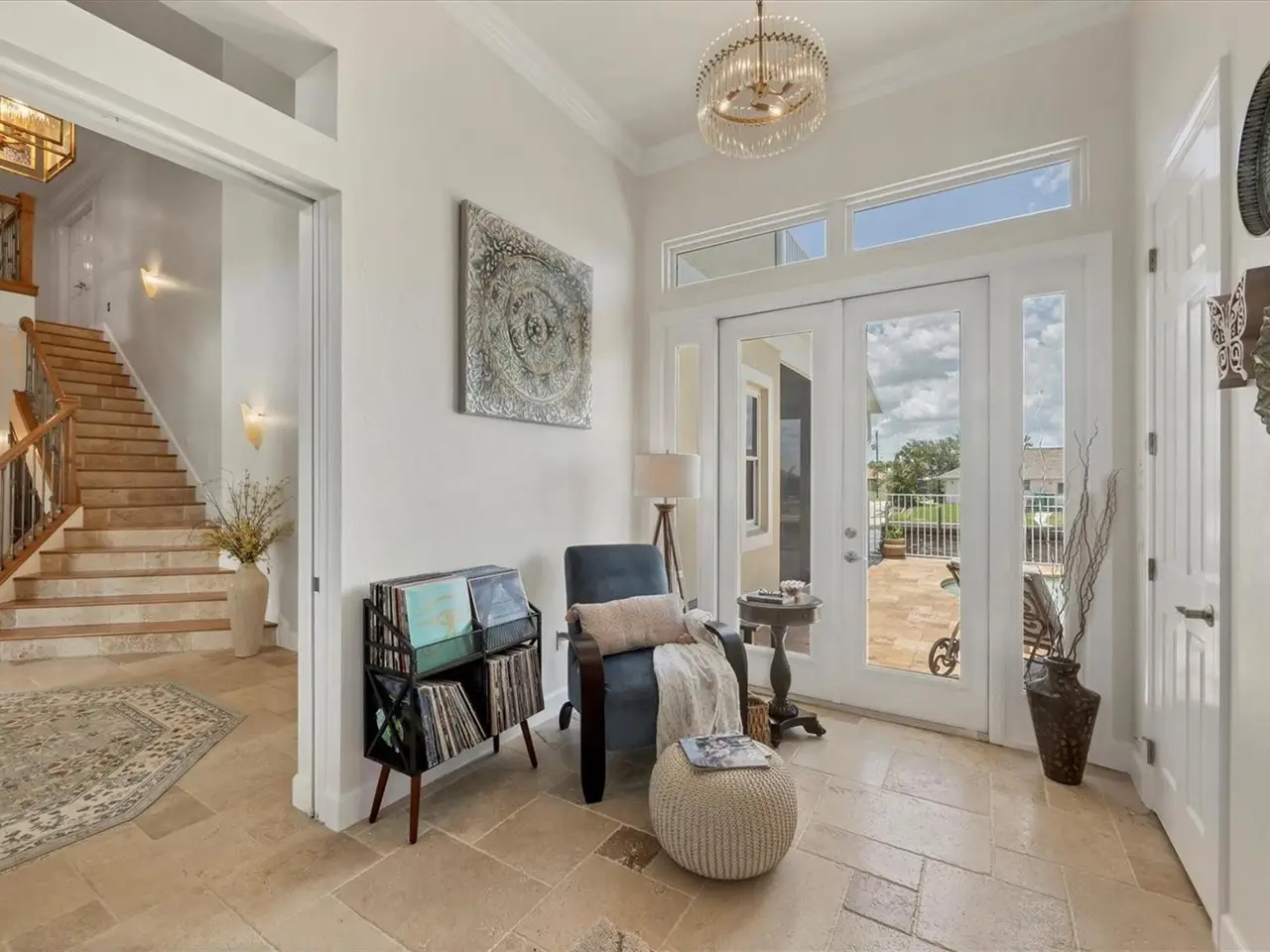 20-ft soaring foyer with sweeping staircase