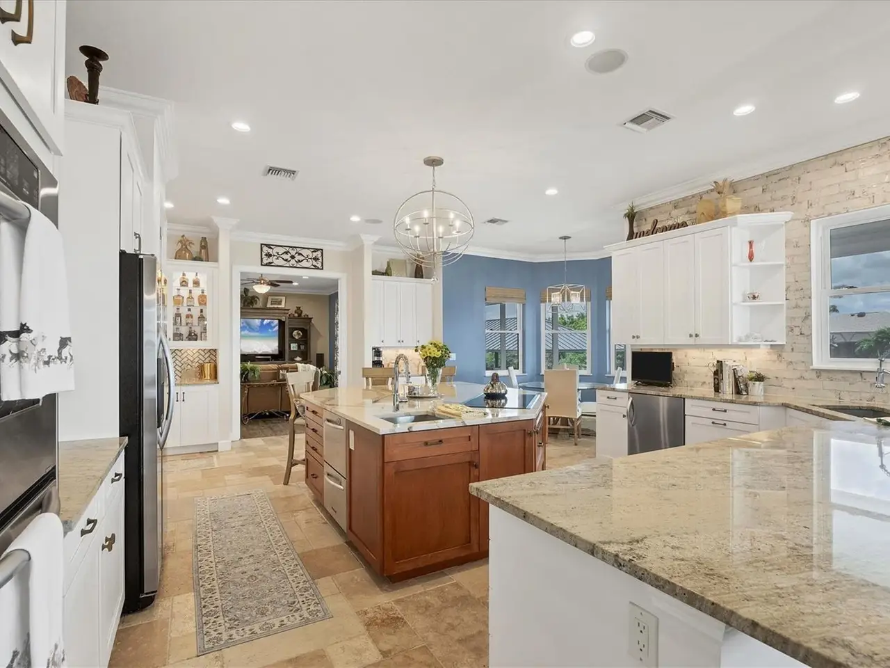 Entertainer's dream kitchen with massive quartz island
