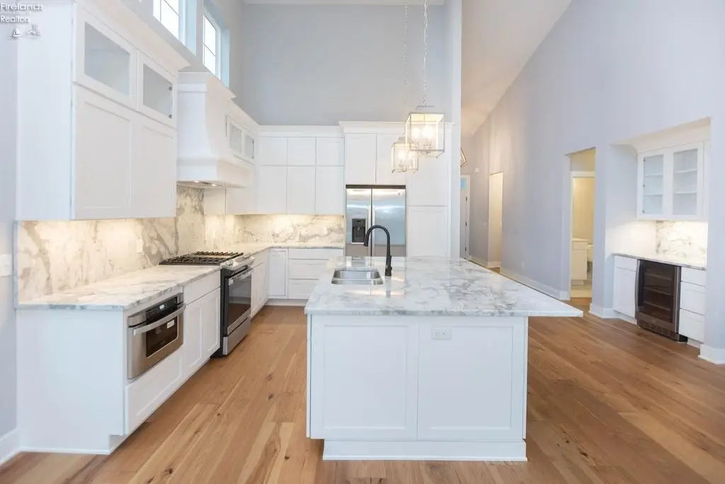 Move right into this stunning Harbor's Edge home. This beautiful 3-bedroom ranch with a walk-out basement (unfinished) is ready for its first owners! The open floor plan, perfect for entertaining, has vaulted ceilings and grand windows all around. The kitchen has generous cabinet and counter space with an oversized island. The spacious great room has a gas fireplace. The owner's suite is located on the main floor and has a vaulted ceiling. The owner's bath has 2 sinks, a walk-in tile shower and walk-in closet. The laundry room is conveniently located on the main floor. The 2-car garage has a golf cart garage adjacent to it. The deck located at the rear of the home is perfect for entertaining! Catawba Island Club is a short golf cart ride away. (Membership optional). Maintenance-free living, Great location! Just in time for boating season! This is a must see! Set up your showing today!