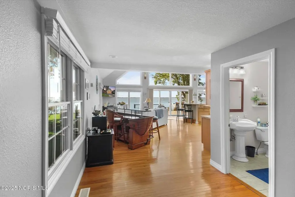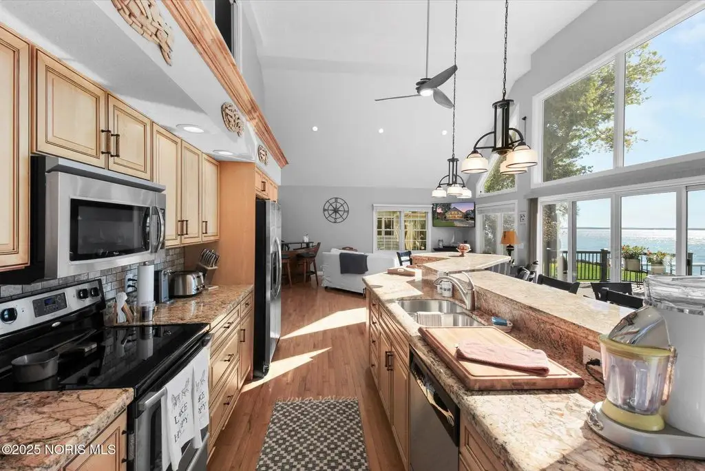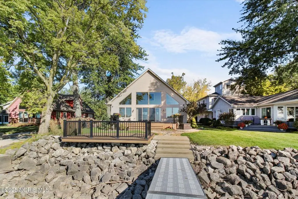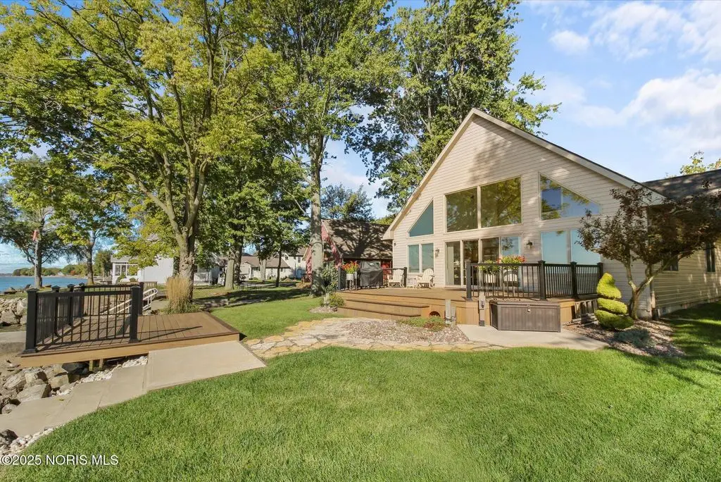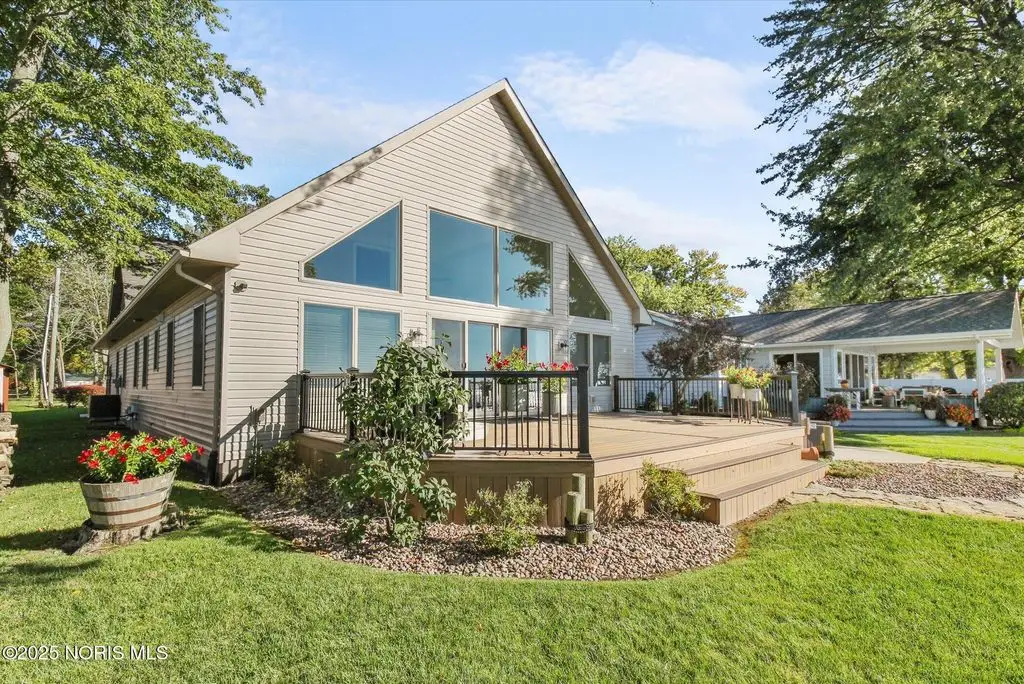 Experience waterfront living at its finest with this stunning custom home on Sandusky Bay! This stunning home is perfect for entertaining and soaking in the beauty of nature. With a breathtaking window wall that showcases sunrises and floods the space with natural light, the vaulted ceilings in the great room elevate the experience. The heart of the home is the spectacular kitchen, featuring granite countertops, custom cabinetry, and a massive island that invites gatherings. Enjoy the convenience of a first-floor laundry and a luxurious master suite. Step outside to a large deck, hop on your boat, and embrace the bay as your personal playground. With recent upgrades like a newer dock, furnace, water heater, and irrigation system, this home is ready for you to make unforgettable memories!