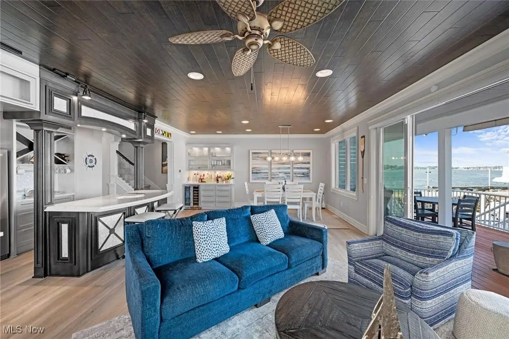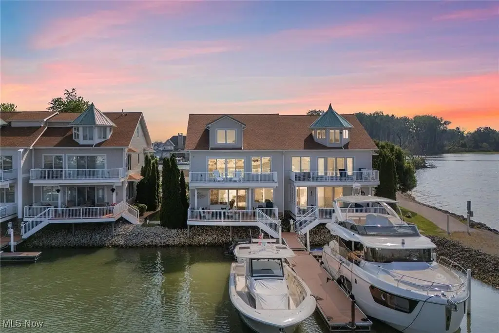 Stunning Waterfront Townhome on Catawba Island - 50' Dock Slip + Luxury Upgrades!Waterfront living at its best in this beautifully updated 3-level end-unit townhome in West Harbor, on Catawba Island. Includes a premium 50' dock slip (potential for additional dockage). Enjoy open-concept living with incredible water views, new luxury vinyl plank flooring (2023), and a spacious great room with fireplace that flows into a gourmet kitchen and dining area with wet bar - new beverage fridge. Two patio doors open to an oversized patio with awning steps from the water and your dock slip. Gourmet kitchen features bar seating, high-end appliances, and beautiful cabinetry/counters. Crown molding throughout main level and neutral color palette throughout. Second floor offers two bedrooms and a full hall bath. Spacious primary suite with balcony, two walk-in closets w/organizers, ensuite bath, and gorgeous views. Third floor includes a large bonus room with kitchenette, multiple sleeping areas, and full bath perfect for guests. Attached 2-car garage, half bath off foyer, ample storage. New since 2023: flooring, paint, light fixtures, AC, Wi Fi thermostats (all levels), R/O system, dishwasher, refrigerator. Close to CIC Club, Gem Beach, and island destinations. Optional furnishings with some exclusions. Don't miss this opportunity to live in Vacationland's premier waterfront community!