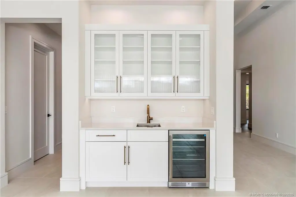 Experienc? the ?inn?cl? ?f lu?urious living with the n?wly ?onstructed Augusta Custom Pool Home by Ecclestone Signature Homes. This exquisite coastal modern residence offers breathtaking water views and is located within the highly sought-after Tesoro Club, a prestigious gated golf community. This expansive one-story home features four bedrooms and 4.5 baths, complemented by a wet bar and a walk-in pantry.The open floor plan is perfectly designed for both relaxation and entertaining. The gourmet kitchen is a chef's dream, featuring high-end Thermador appliances, a generous center island with back-to-back cabinetry, elegant quartz countertops, a full backsplash, and stunning cabinetry. Numerous upgrades are included, with project completion anticipated in early spring 2025.