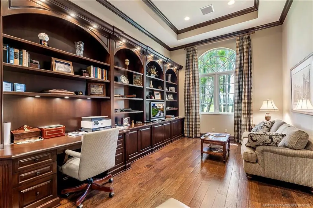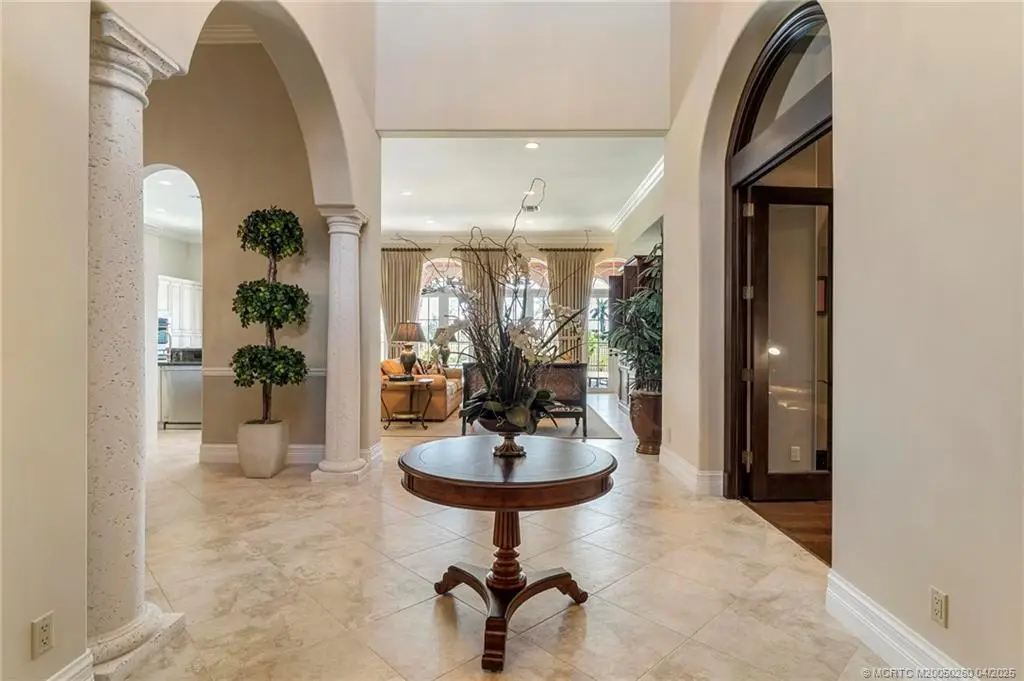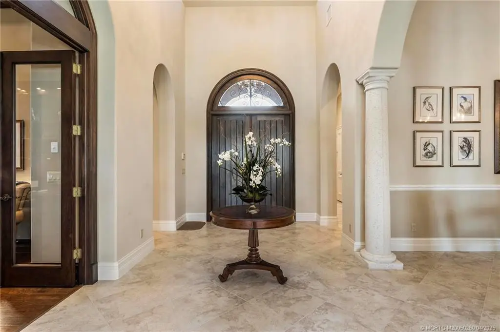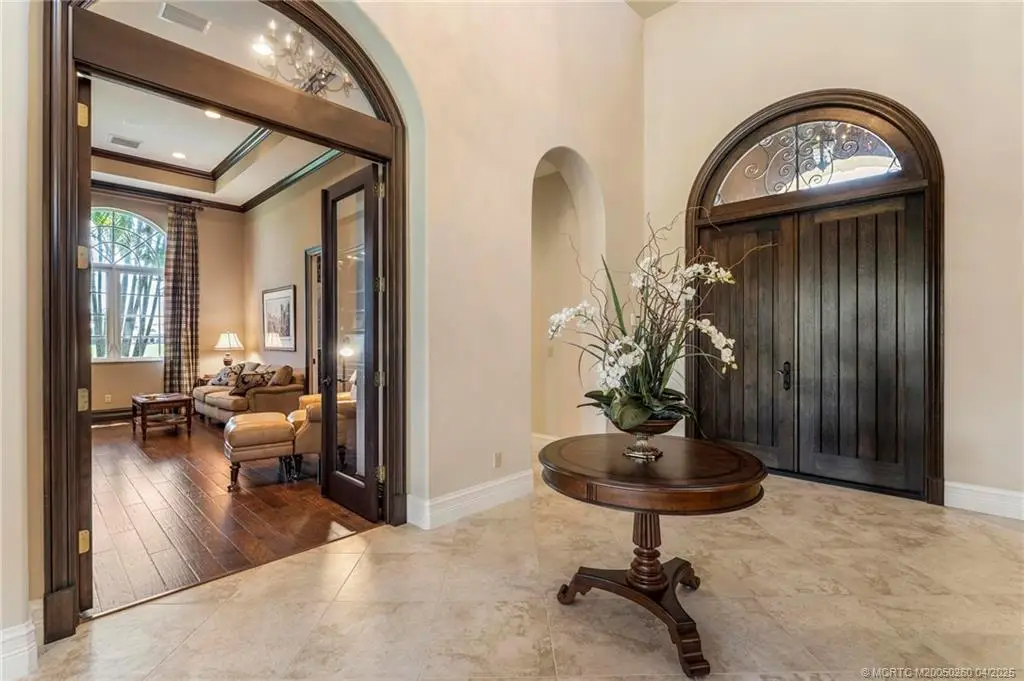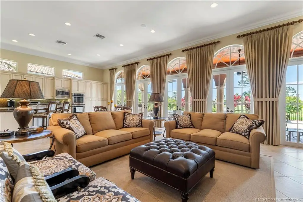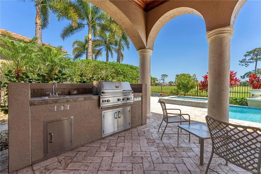 This is a fantastic opportunity in the Tesoro development that surely will not last long! This three-bedroom home, which includes a dedicated office and three and a half bathrooms, has everything for the most discerning buyer. The grand entrance is just the beginning, featuring soaring ceilings, an open floor plan, and top-of-the-line finishes that are rarely seen at this level. The home office serves as a comfortable sanctuary, complete with access to a full bathroom. The living room and family room seamlessly flow into the kitchen area, which overlooks the outdoor patio through an array of doors that provide ample natural light. The patio boasts an incredible covering with tongue and groove ceilings, making it perfect for entertaining and outdoor living. The pool has been tastefully renovated, offering beautiful views of the long water and golf course scenery. Come enjoy the lifestyle at Tesoro, which includes a clubhouse, golf course, tennis facilities, a pool, and muchmore!
