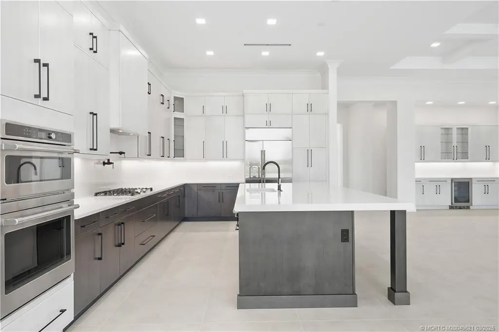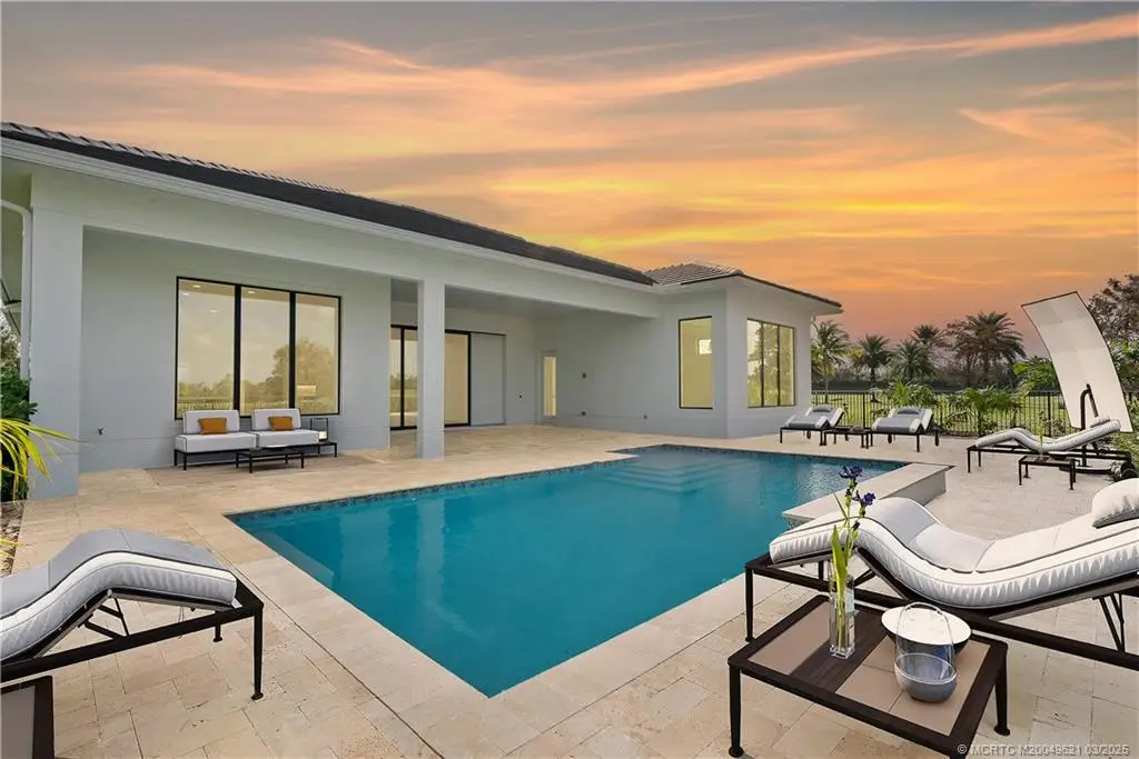 This home is l?c?ted ?n the h??rt ?f "Tesoro", the Tr?a?ure Coasts premier golf club. The "Keenan" presents the perfect design and layout that enhances that Florida lifestyle. Entertaining at its best with a large oversized back covered patio including travertine pavers and a professionally designed pool enhanced with sun shelf and a water feature. Other outstanding finishes include 12ft. volume ceilings, oversized club room with wet bar, spacious kitchen including butler's pantry, oversized center island, stacked cabinets, Cafe appliances including 42" built-in refrigerator, wall oven/microwave combo, washer & dryer and 32 x 32 tile flooring throughout. This home is located on a perfect lot in a premier golf club community of Tesoro, offering an impressive coastal-contemporary designed home. Bring your golf clubs and enjoy the best golf experience on the Treasure Coast!