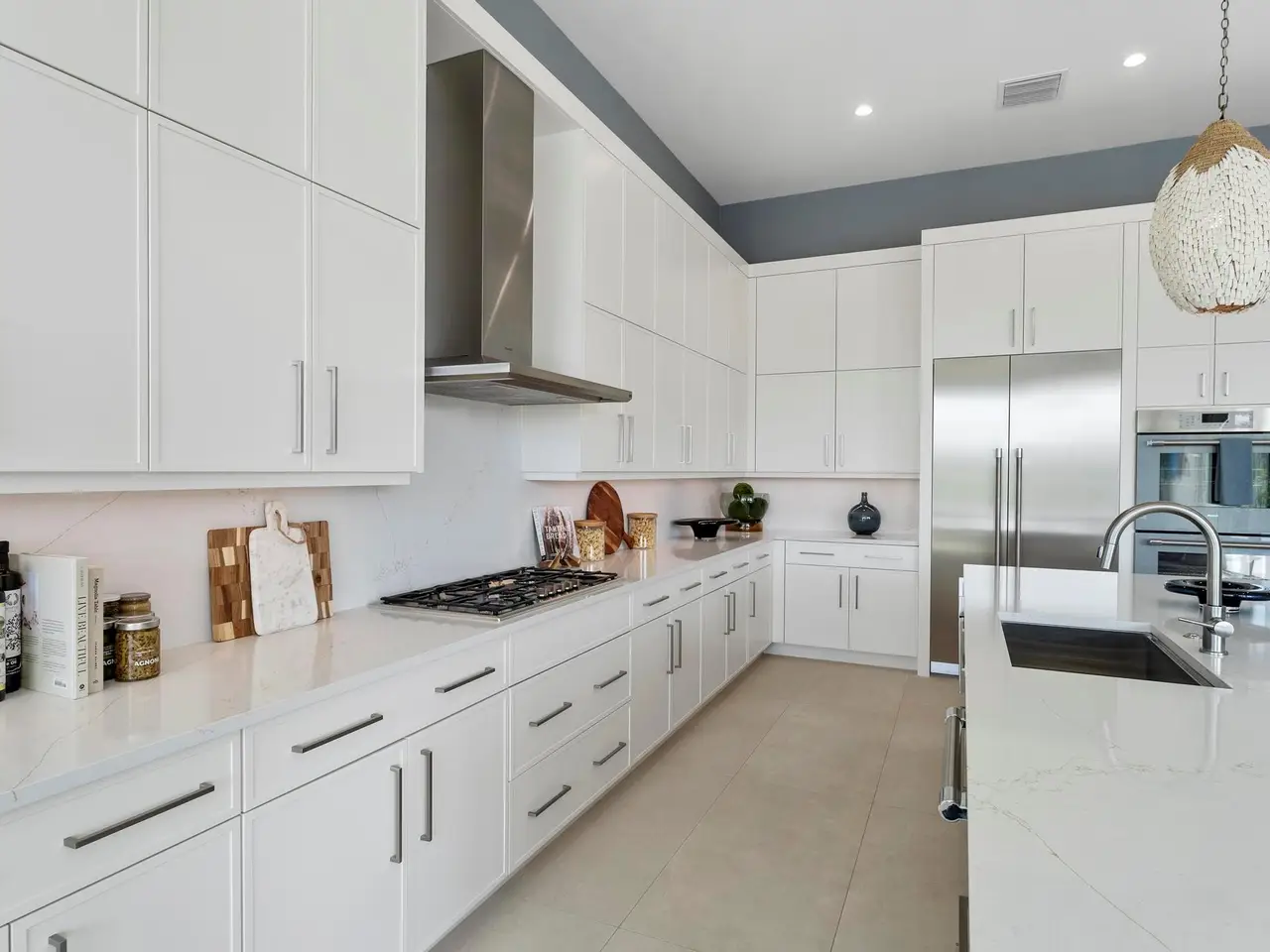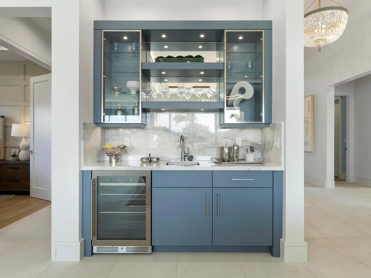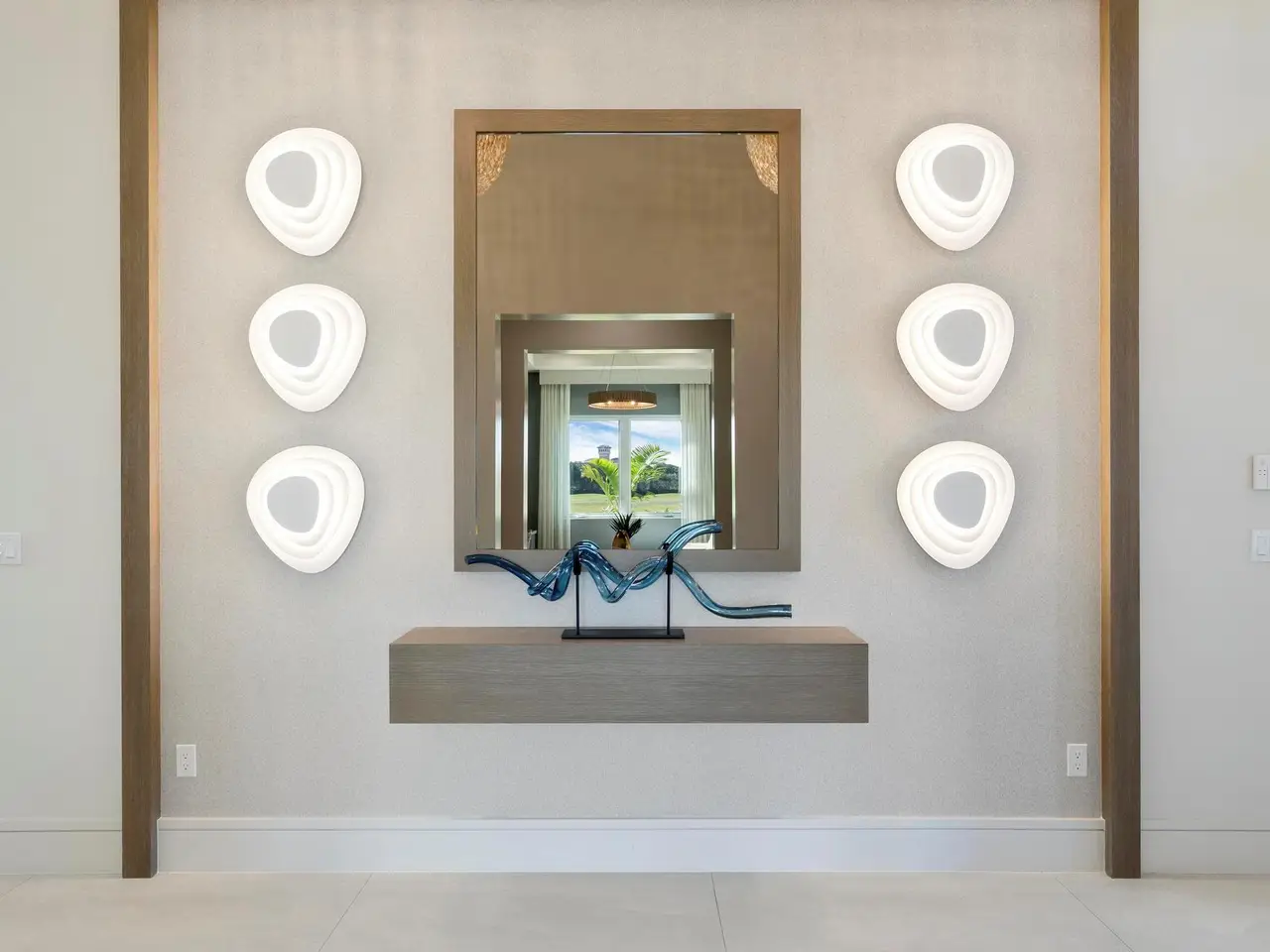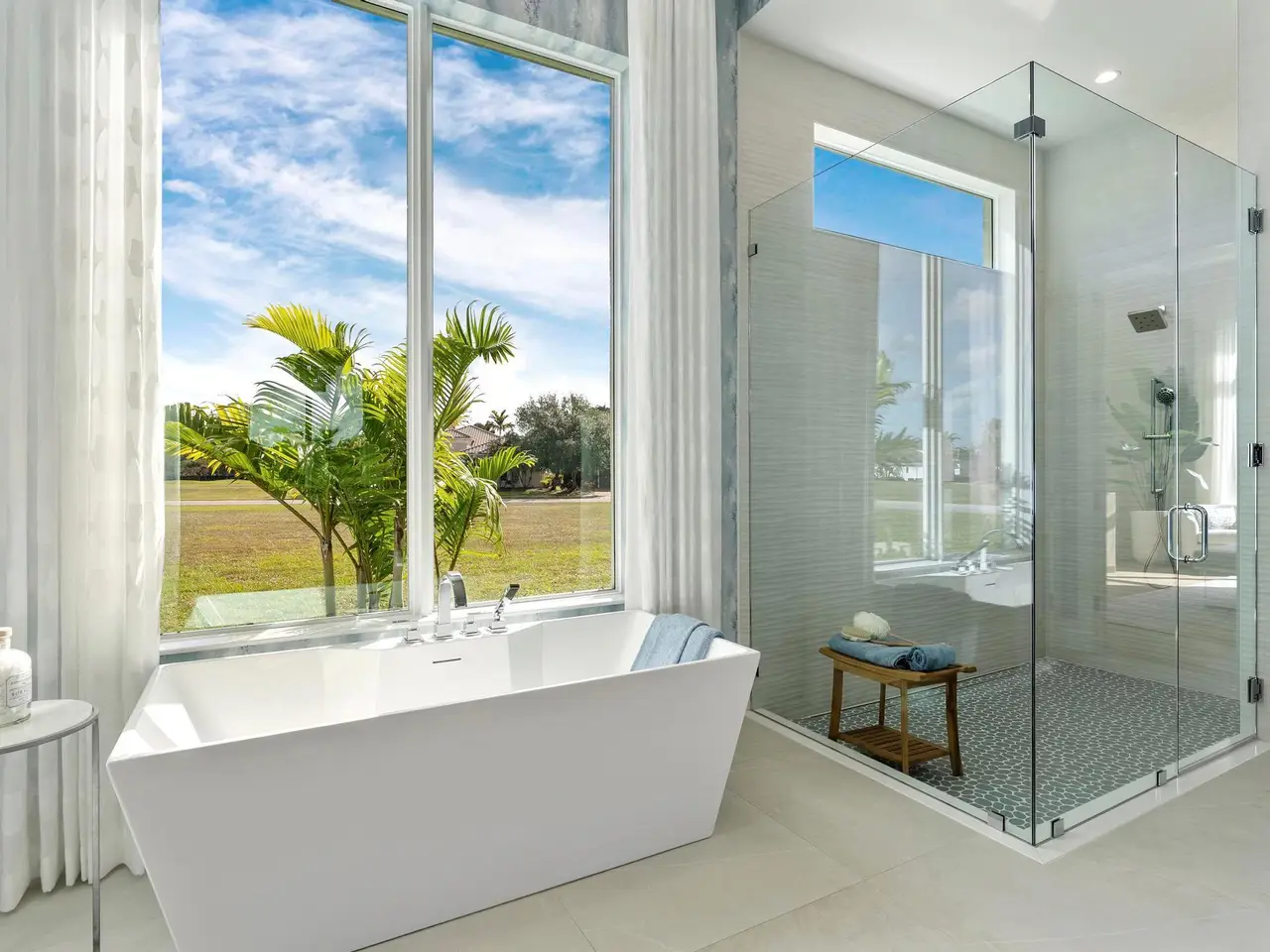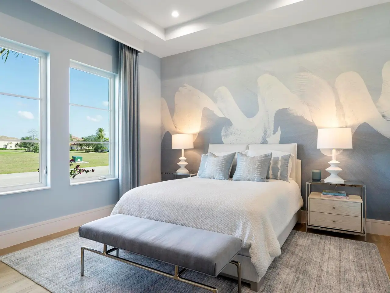 As you enter the gates of Tesoro, you are welcomed into a realm of luxury living. Elevate your lifestyle with a beautifully appointed model home from Ecclestone Signature Homes, featuring breathtaking views of the golf course and serene water. This residence offers three bedrooms, along with a den or flexible space, and is adorned with high-quality upgrades and finishes. The Coastal Modern Design promotes an open-concept layout with soaring ceilings, creating an ideal environment for entertaining. A spacious patio, complete with a custom-built TV wall, enhances outdoor living. With impact windows and doors throughout, homeownership is effortless. This residence has been meticulously decorated by one of South Florida's most esteemed designers, making it a true turnkey opportunity.