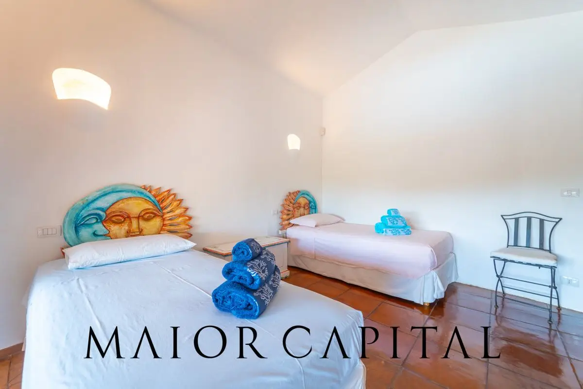 In the immediate vicinity of the prestigious Pevero Golf Club, we are offering for sale a panoramic villa immersed in Mediterranean maquis, with views of the golf courses and set in an exclusive context of villas, guaranteeing privacy, tranquillity and a relaxed atmosphere, less than ten minutes from the renowned beaches of Pevero and Romazzino. Costa Smeralda architecture and Mediterranean charm Spread over two levels, the villa combines elegance and Sardinian authenticity. The bright and welcoming rooms are characterised by the typical Costa Smeralda architectural style, with exposed beams and terracotta floors. The living room opens onto a large covered veranda with panoramic views of the surrounding greenery, perfect for relaxing in any season. The separate, fully equipped kitchen reflects the colours and materials of the local tradition. The sleeping area includes a master bedroom with en-suite bathroom, as well as two additional bedrooms and a shared bathroom, while the semi-basement, accessible from the outside, has two further double bedrooms and a bathroom, ideal for guests or staff. Garden with lawn and private swimming pool Outside, the villa is surrounded by a large, well-kept garden with a lawn, ensuring privacy and harmony with the surrounding nature. The outdoor spaces include a private swimming pool with a sunbathing area and an elegant brick-built lounge integrated into the garden, ideal for convivial moments outdoors, immersed in the silence and beauty of the landscape. A paradise for golf lovers For golf enthusiasts, this property offers an unrivalled residential experience. The villa overlooks one of the most picturesque stretches of the Pevero Golf Club, a masterpiece designed by Robert Trent Jones, with a privileged view of the 18th hole. From here, you can enjoy a setting of extraordinary beauty, where the green of the course blends with the blue of the Costa Smeralda™ sea. A place designed for those who want to experience golf not only as a sport, but as an authentic lifestyle, immersed in a context of luxury, privacy and charm. Exclusive location on the prestigious Costa Smeralda™ The most enchanting beaches of the Costa Smeralda™, such as Grande Pevero and Romazzino, are just a 5-minute drive away. Porto Cervo, with its luxury boutiques, gourmet restaurants, nightclubs and panoramic bars, is just a 10-minute drive away. Supermarkets, pharmacies and tobacconists are located 5 minutes from the villa, ensuring maximum convenience even for extended stays. The renowned Pevero Golf Club, a destination of excellence for golf enthusiasts, is just a 5-minute walk away, offering the opportunity to play this sport surrounded by unique natural scenery. The villa enjoys a privileged location in the heart of Porto Cervo, perfectly connected to the main attractions of the Costa Smeralda™, including the beaches of Cala di Volpe, La Celvia, Capriccioli and Romazzino. Olbia Costa Smeralda™ Airport can be reached in about 30 minutes by car, with direct connections to major Italian and European cities. Composition: Ground floor * Covered veranda with panoramic views and outdoor dining area * Spacious living room * Fully equipped kitchen * Double bedroom with en-suite bathroom * Two twin bedrooms * Bathroom * Semi-basement * Two double bedrooms * Bathroom Features: * Air conditioning * TV system * Heated infinity pool * Outdoor shower * Barbecue * Alarm system * Video surveillance system * Laundry room * Cellar * Private garden * Free private parking Why choose this villa: #1 Exclusive location near the Pevero Golf Club in Porto Cervo #2 Ideal for sports and golf enthusiasts #3 Secure property investment in one of the most sought-after destinations #4 Spacious indoor and out