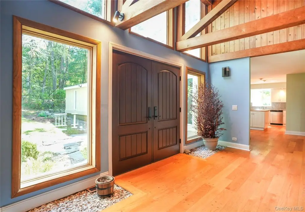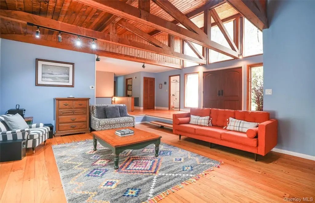 Nestled in sought-after Pound Ridge, this exceptional 5BR/3.5BTH residence offers an extraordinary blend of sophisticated living and natural tranquility. Spanning over 3,600 sq ft, this home presents an ideal sanctuary for discerning buyers seeking both luxury and comfort in one of Westchester's most coveted locations. Upon entering, you are immediately struck by the dramatic architectural elements that define the home's character. Soaring sky-high ceilings create a sense of space and grandeur, while exposed wood beams add warmth and rustic elegance throughout the interior. The thoughtfully designed floor plan maximizes both functionality and flow, accommodating the needs of modern life while maintaining distinct spaces for relaxation and entertainment. Five generously sized bedrooms provide ample accommodation offering comfortable sleeping quarters and tons of natural light. The primary bedroom serves as a true retreat, featuring the tastefully renovated ensuite bathroom (2025) that showcases high-end materials and modern amenities. Three and a half bathrooms throughout the home ensure convenience and privacy for all occupants, with each space thoughtfully appointed. The additional half bathroom provides practical functionality for entertaining and daily use, conveniently located off of the mudroom. The heart of the home encompasses inviting living spaces that seamlessly blend comfort with style. Whether hosting intimate gatherings or large celebrations, the open and airy layout accommodates various entertainment needs while maintaining a sense of warmth and intimacy. The exposed beam details and soaring ceilings create architectural character that distinguishes this property from typical suburban offerings. Boasting nearly 2.25 acres, the outdoor space extends the home's living area seamlessly into the natural environment which provide the canvas for year-round outdoor living experiences. While tucked away on a quite cul-de-sac, the location still offers an enviable combination of small-town charm and NYC accessibility. Just one mile from the charming Pound Ridge Village, residents can explore local shops, restaurants, and tons of community events. Nature enthusiasts will appreciate the proximity to De La Torre Preserve, offering hiking trails, wildlife observation and peaceful spaces for outdoor recreation. New Canaan Metro North located just a short 12 minute drive makes your NYC commute easy, with just a 68 minute express train to Grand Central Station. First time on the market in over 25 years, this truly stunning home is just waiting for its new owners!