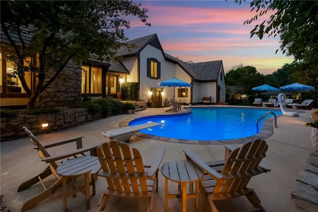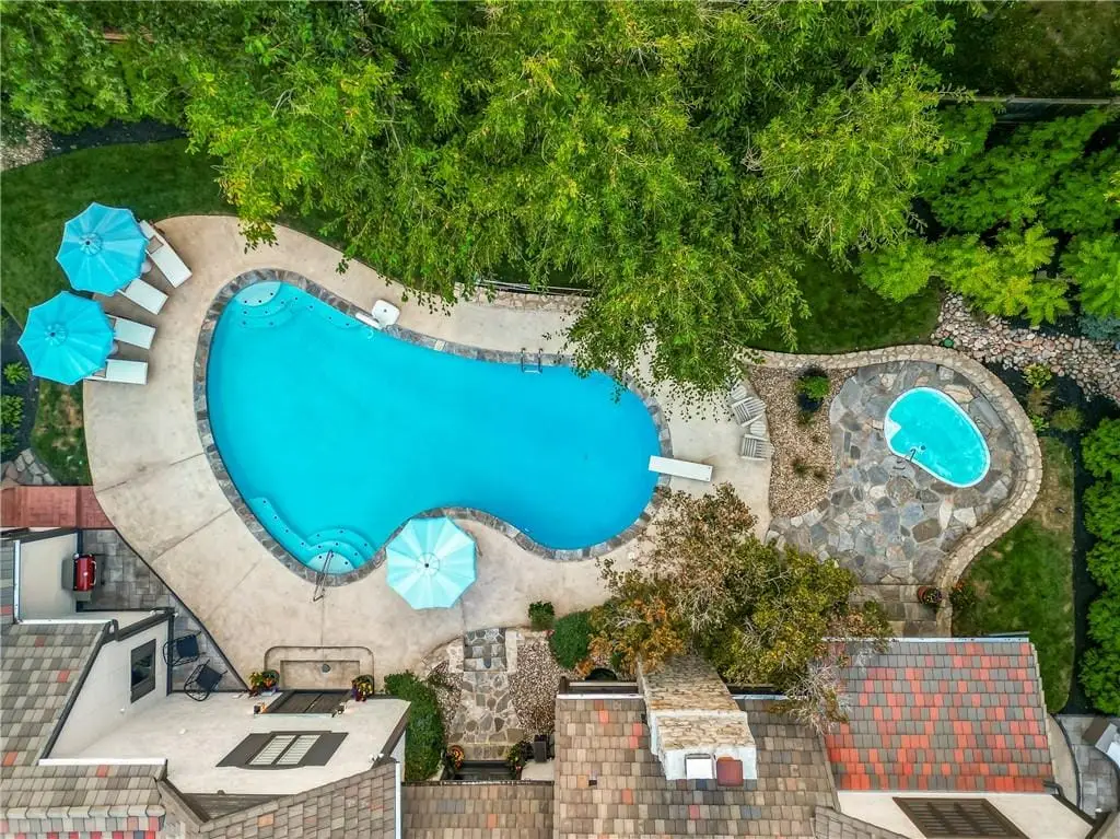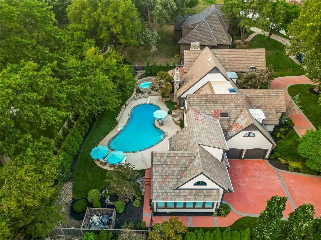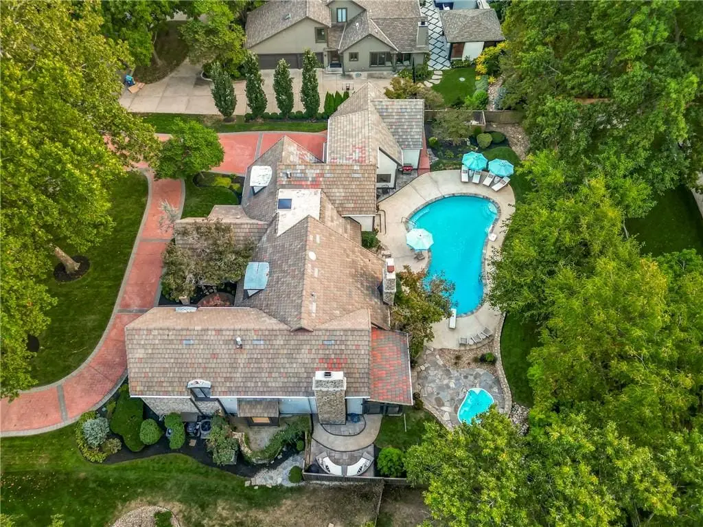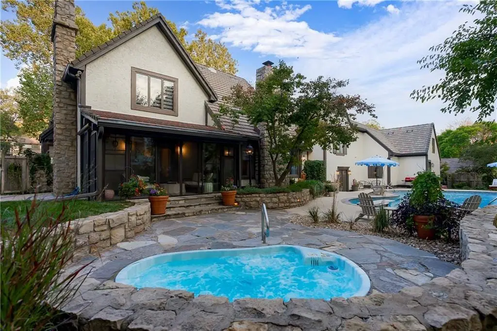 Recently Remodeled 1.5-Story Estate on a Private Cul-de-Sac Lot 5-Car Tandem Garage, Pool & Hot Tub, Just steps from Franklin Park, Meadowbrook & top-rated Shawnee Mission East schools, this extraordinary estate has been fully reimagined with high-end finishes and thoughtful upgrades throughout. Situated on a sprawling cul-de-sac lot with a circle drive, the property features a sparkling pool, a built-in hot tub, and incredible outdoor living spaces designed for both entertaining and everyday relaxation. A newly added California-stacking all-season screened-in patio completes this private retreat. Inside, no detail has been overlooked. Gorgeous wood floors flow throughout, leading to a show stopping kitchen showcasing a custom island, walk-in pantry, spacious eat-in area, extensive custom cabinetry, and top-of-the-line appliances. Designer lighting from Visual Comfort, Thomas O'Brien, and more, along with custom window treatments, add warmth and sophistication. Multiple marbles, quartz, and solid stone finishes, hidden storage cubbies, and thoughtful design touches elevate every space. This home is equipped for comfort and convenience with 4 HVAC units, 3 hot water heaters, a central vacuum, and 3 separate laundry areas (primary suite, second floor, & lower level). The remodeled lower level offers an office, living room, rec room, wet bar, home theater & storage. Additional upgrades include LVP flooring, surround sound with amps, and a dry basement waterproofing system with a lifetime warranty (2025). Major improvements include a fully serviced tile roof thats been acid-washed, new chimney caps, new rear 6-ft privacy fence (2025), enhanced landscaping for privacy, new patio pavers, French drain system, upgraded sump pump with battery backup (2025), Halo Water Filtration System, new water pressure regulator, updated irrigation zones, and a custom ADT security system with cameras, doorbell, smart home integration, and epoxied garage floors. This is a must see!