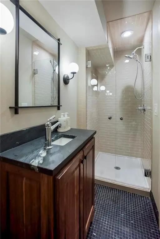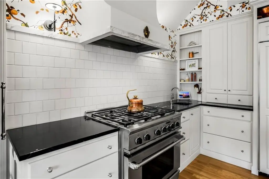 Marble, quartz, and solid stone finishes throughout