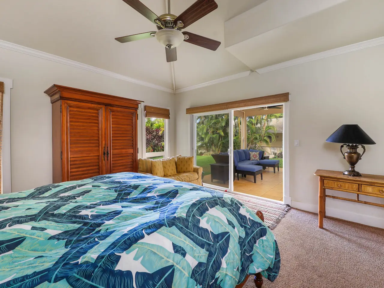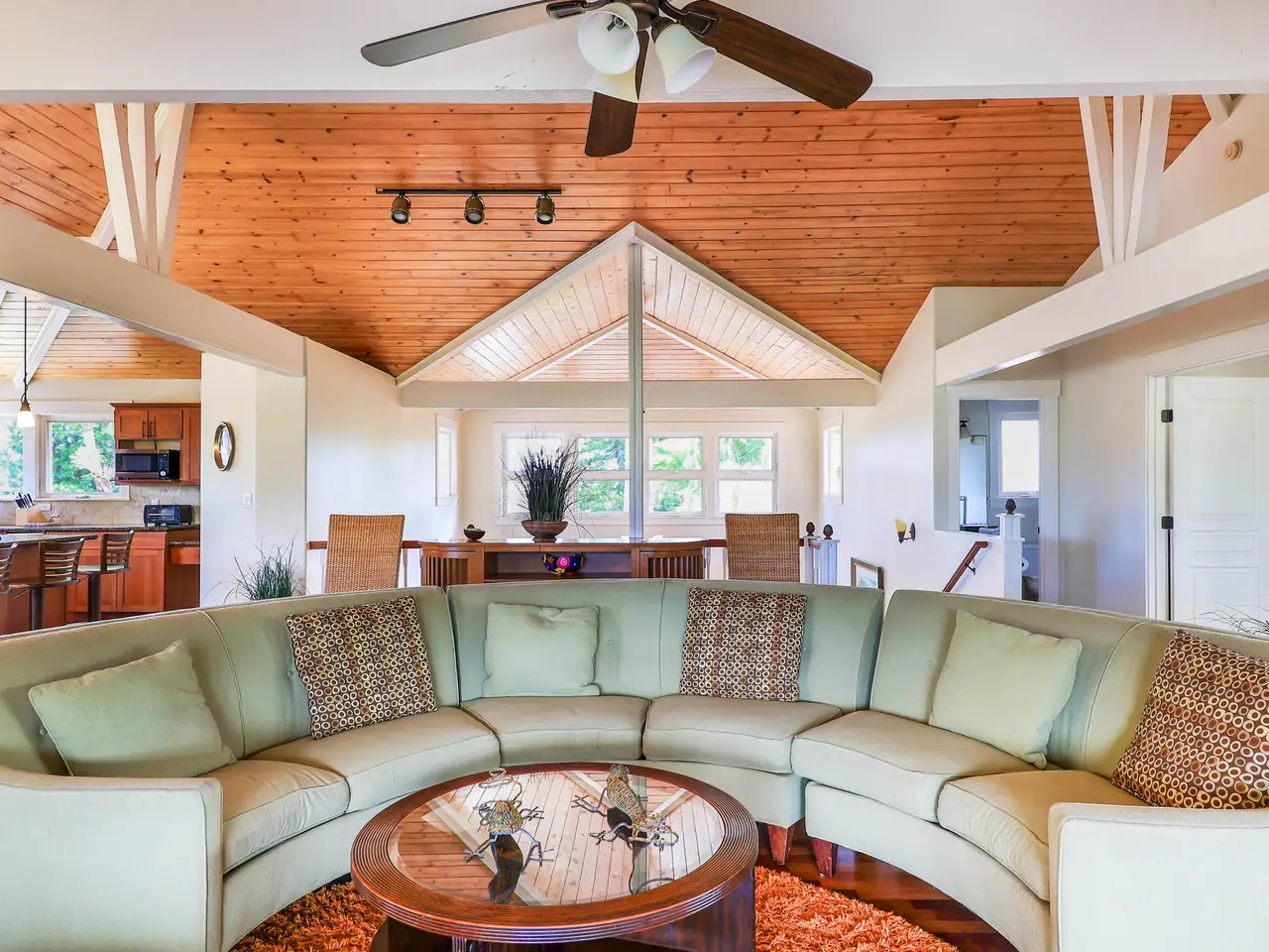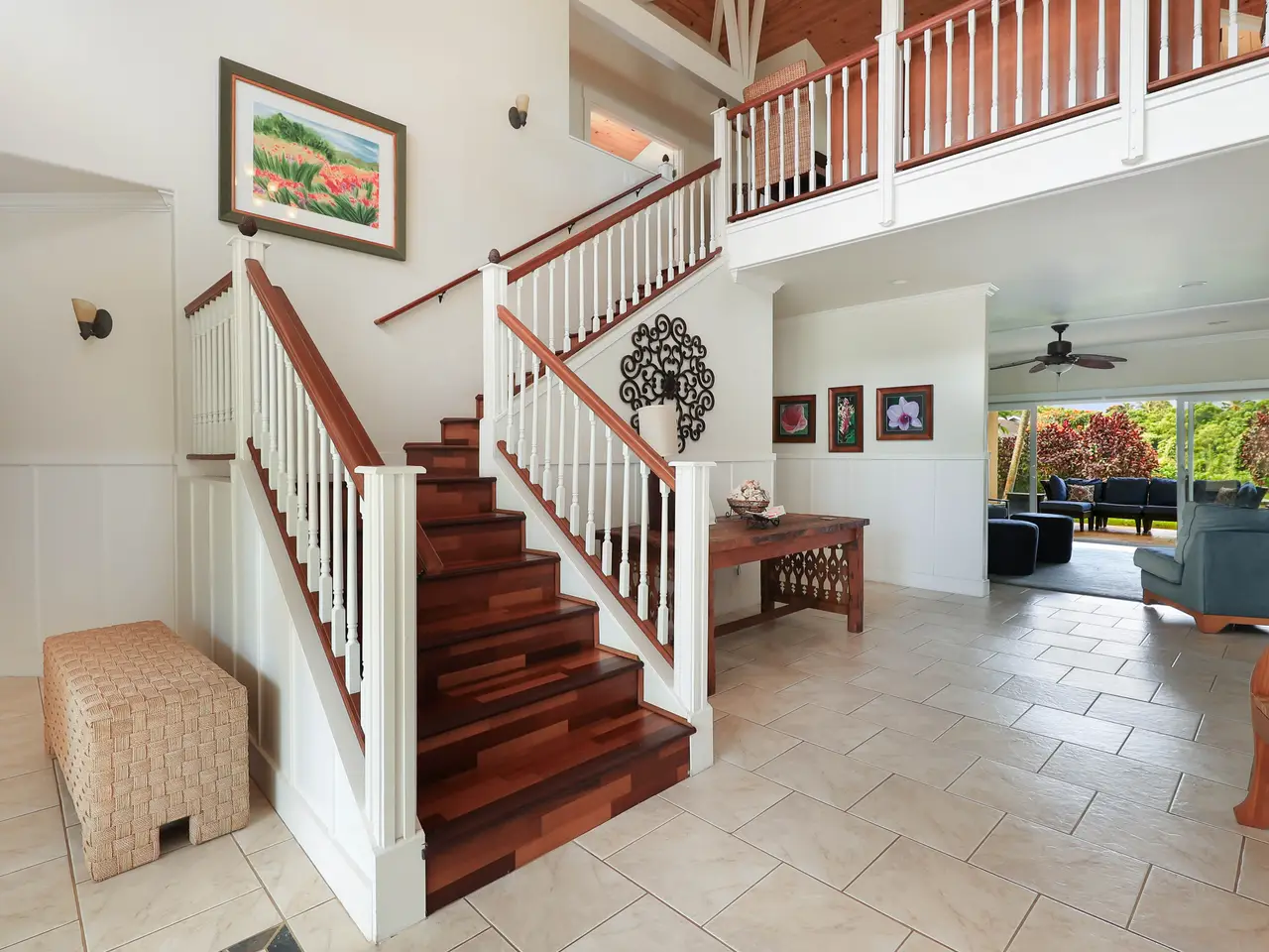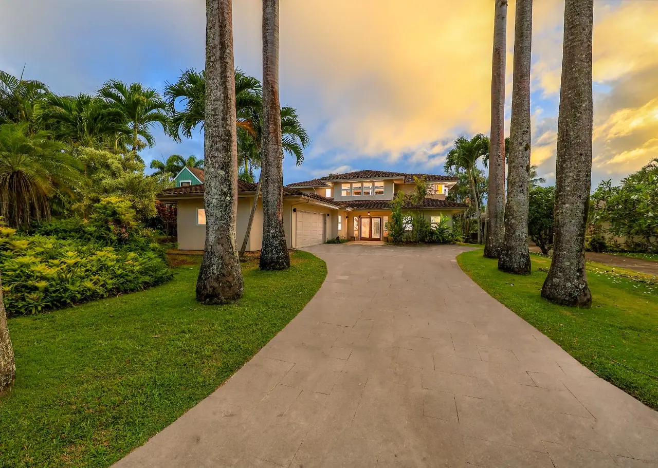 Escape to paradise in this stunning 5-bedroom, 4.5-bathroom vacation rental home, nestled in a tranquil cul-de-sac in one of Princeville’s most sought-after neighborhoods. Offering breathtaking mountain views and a lush, vibrant yard, this large home boasts a thoughtfully designed floor plan that maximizes natural light, space, and style. The home features two separate living rooms—one on each level—providing extra comfort and convenience for you and your guests. The exposed beams add a touch of elegance and charm to the spacious interiors. The gourmet-style kitchen features granite countertops, stainless steel appliances, and a large dining area perfect for gathering and hosting. Step outside to the amazing wrap-around lanai, where you can fire up the BBQ grill and soak in the stunning mountain views. Located in Princeville on Kauai's North Shore, this home is just a short drive from the luxurious 1 Hotel, world-class golf courses, and the amenities of Princeville Shopping Center. You’re also a stone’s throw from the iconic surf town of Hanalei, making this the perfect island retreat. With 5 bedrooms, a highly functional floor plan and set in its ideal location, this is a great property, with its many individual spaces and areas, for a large family to call home or to continue as a rare vacation rental home that can accommodate large groups.