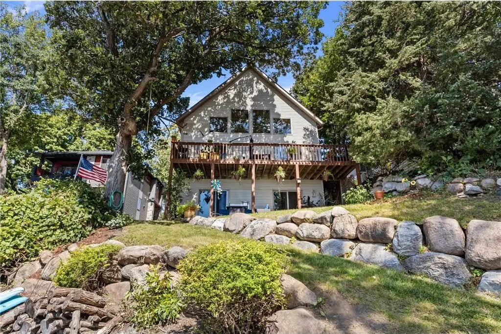 Enjoy life on Lower Prior Lake! This well-maintained home is perfectly situated on Grainwood Bay, just before Martinson Island-offering stunning views, a wraparound deck, and direct backyard access to the lake. Inside, you'll find hardwood floors, large windows, and multiple sliding glass doors that bring the outdoors in. The main level includes a bedroom, full bath, and laundry just off the three-car garage. Upstairs, the loft and spacious primary suite offer panoramic lake views, a walk-in closet, and a luxurious bath with soaker tub and walk-in shower. The walkout lower level features a second gas fireplace, wet bar, two bedrooms, and another full bath-plus two more sliding doors that open to a lakeside patio. Whether you're relaxing or ready to launch your boat, this is lake living at its best!
