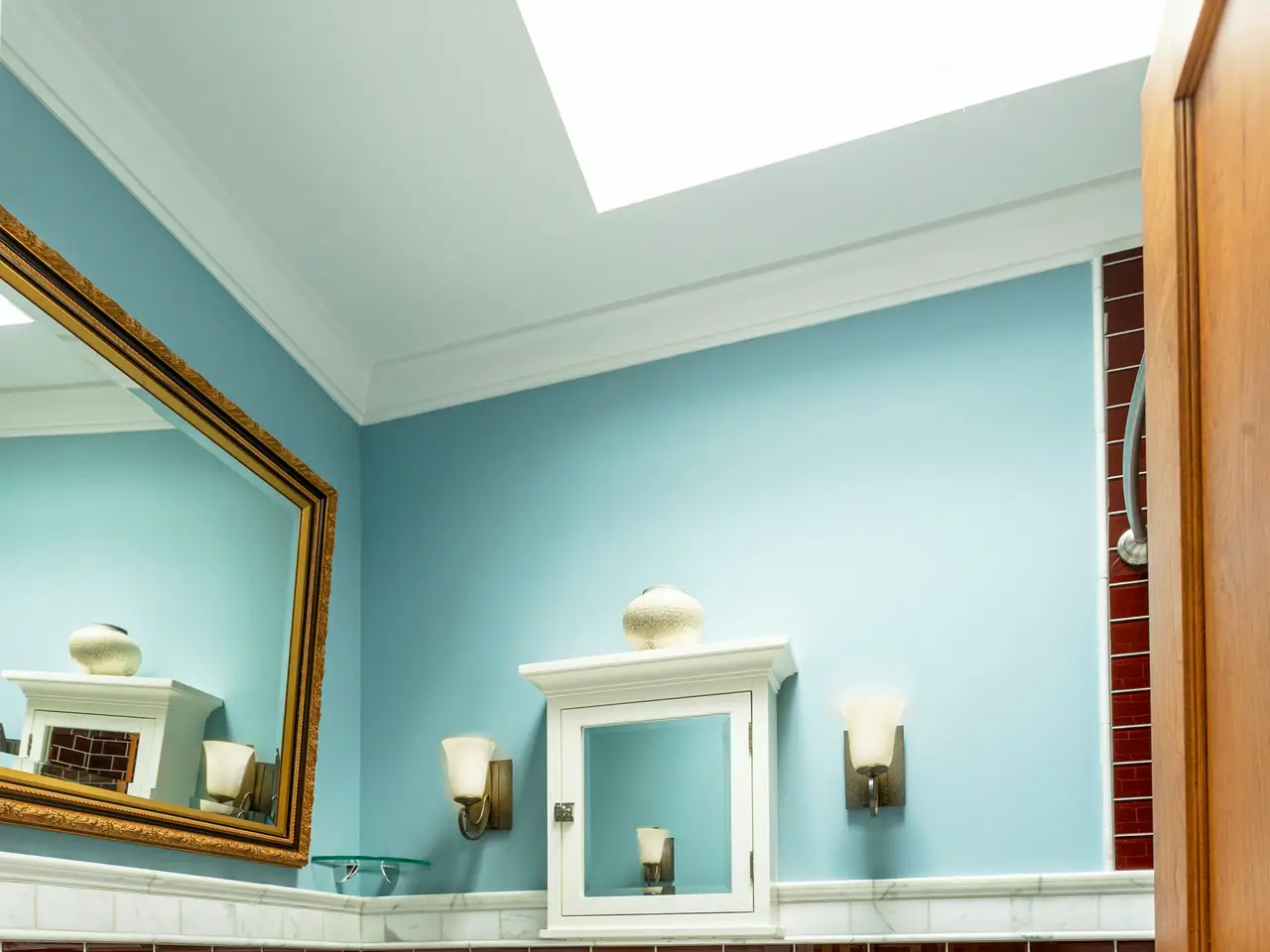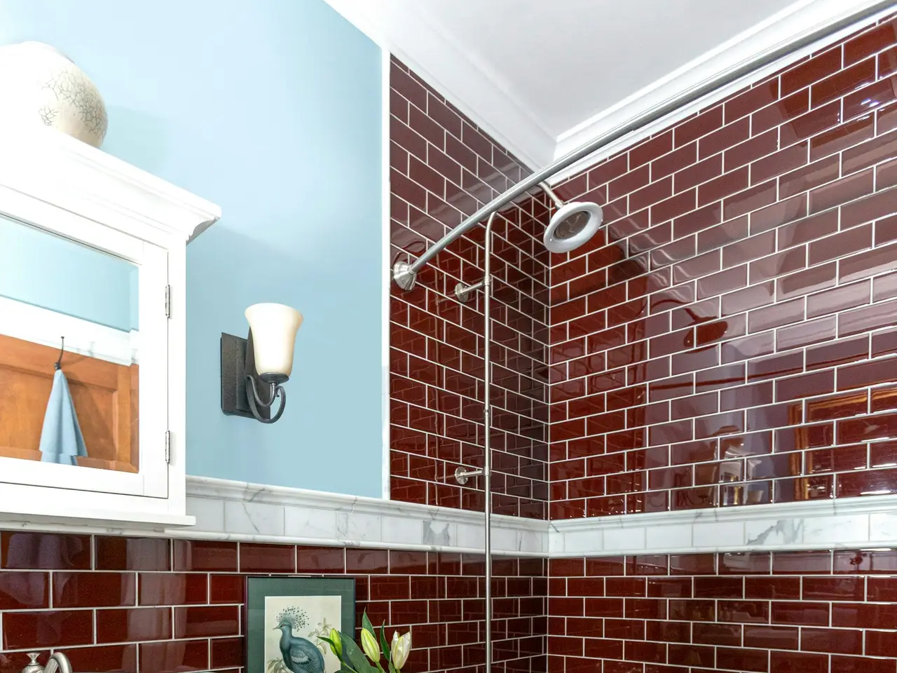 Renovated bath with soaking tub and marble accents