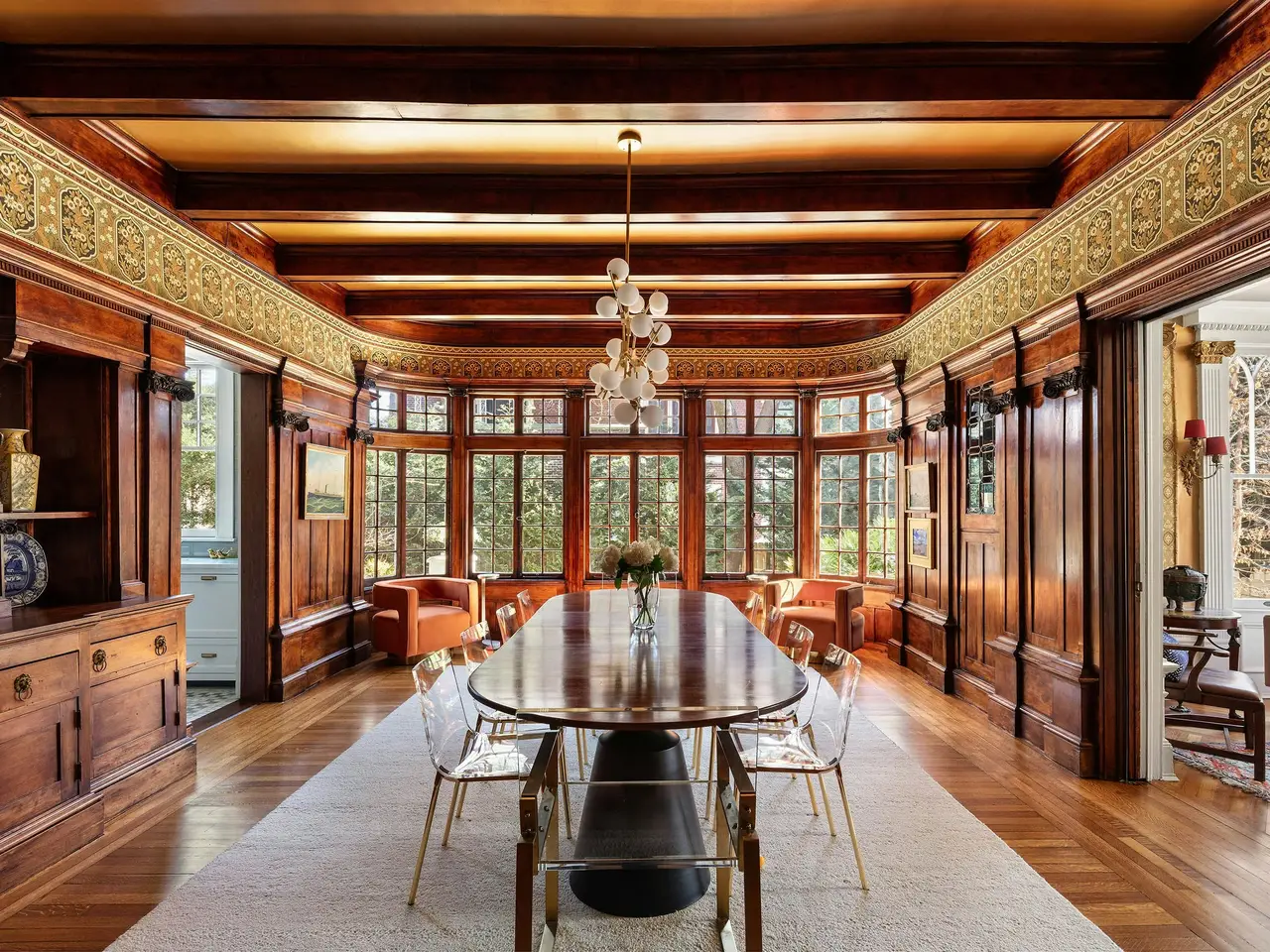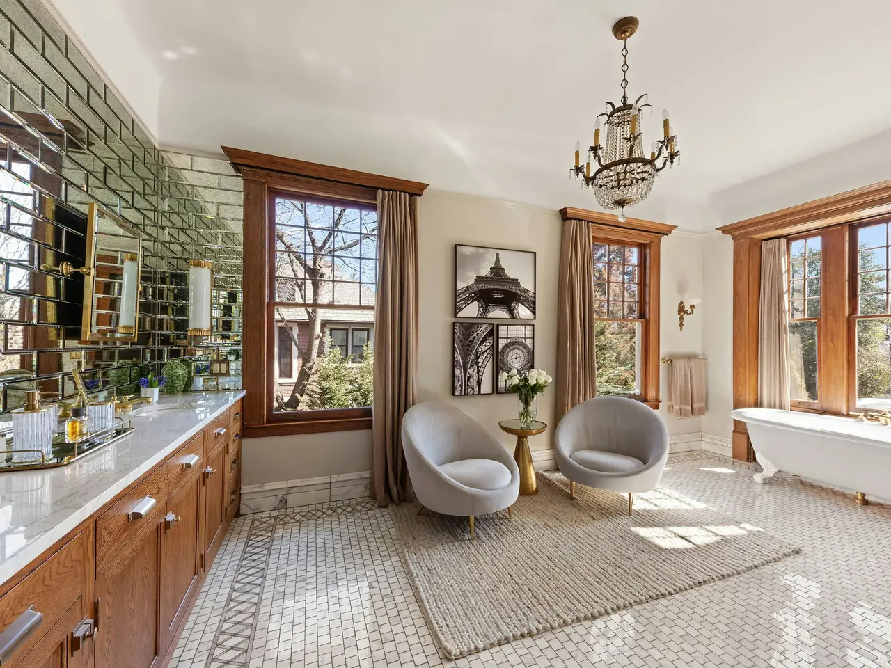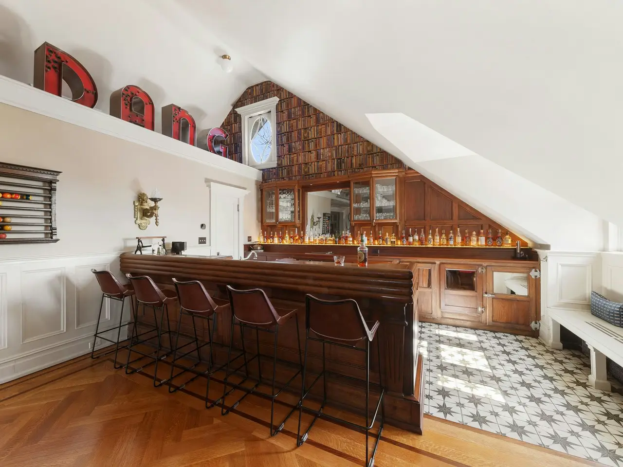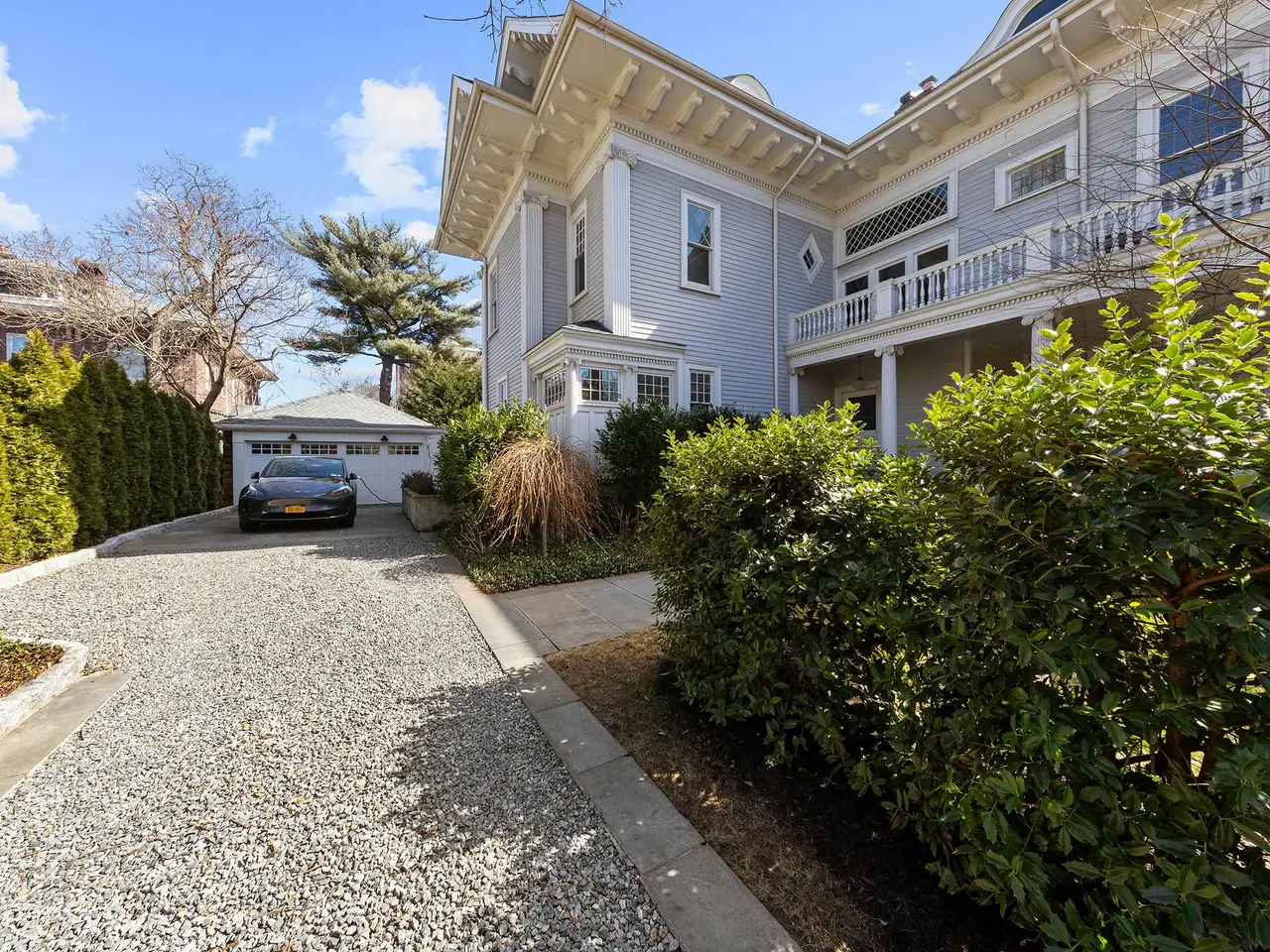 Recognized as one of the most grandly built and meticulously preserved free-standing private homes in Brooklyn, 1305 Albemarle Road in Prospect Park South is distinguished as a jewel within the bucolic environs of the Prospect Park South Historic District, which was designated by the New York City Landmarks Preservation Commission in 1979 and listed on the National Register of Historic Places in 1983. In 1899, developer Dean Alvord purchased approximately 60 acres of farmland in order to create Prospect Park South, a community of substantial homes, a "rural park within the limitations of the conventional city block and city street." The houses in Prospect Park South were required to be grand, freestanding homes with expansive lawns and ample plots to allow for privacy and landscape architecture more commonly found in the finest towns outside the city on the North Shore in Long Island, Westchester, and the Connecticut waterfront. This resplendent home is truly an oasis within the city. Convenience is not sacrificed for its residents-subway transportation is close by, as is gourmet shopping, cafes, and every convenience one might need. The Parade Grounds and Prospect Park itself are less than two blocks away. Built in 1905, designed by architect Henry B. Moore for George and Sarah Gale in grand Colonial Revival style, the residence is defined by its majestic two-story Ionic columns and spacious porch-inviting the eyes to rest longingly upon its handsome facade. Unlike even the grandest of townhouses, the scale, vistas, and multiple sources of natural light create the feeling that one is in a fine manor house in the country-not in the heart of the city. On the public floors-and as one traverses the epically proportioned, fully restored mansion staircase with original newel post-there are no fewer than three sources of light in each domain. According to Christopher Gray of the New York Times the Gale Mansion "is the gem of the street, Albemarle is one of the grandest residential streets in the whole city." The Gale House marries historic grandeur with modern luxury, combining masterfully restored century-old, irreplaceable detail across 11,000+ square feet and 22 rooms, including 9 bedrooms, 7 full and 1 half baths across four distinct levels of living space, replete with multi-zoned air conditioning and radiant floor heat system. The manicured grounds ideally complement the glorious interiors, where you will find a lushly landscaped private yard with bluestone patio, side garden, vast lawn, and a private two-car garage and driveway. Main Floor The grand hall is defined by a coffered ceiling and massive wood-burning fireplace-one of 6 gas and wood-burning fireplaces within the home-which in turn leads to a sun-drenched formal front parlor with fireplace, handsome library with fireplace and bay window, a mahogany-clad dining room facing the garden, and charming reception parlor. Four distinct moods for entertaining and peaceful repose. The kitchen is a chef's dream, with a 10-foot stone island, Viking range/double oven, Sub-Zero French door refrigerator, three Fisher & Paykel dish drawers, Carrara marble farm sink, and a wood-burning fireplace for chilly winter mornings. There is a separate windowed laundry room and a walk-in custom pantry. French doors open to a bluestone patio and expansive backyard with mature plantings-bringing the outside in at all times of year. An elegant and discreet powder room completes the main floor. Second Floor The second floor is the private domain and contains the sumptuous primary suite with a windowed dressing room and a luxurious en-suite bath. Four additional bedrooms, two full baths, and a spacious home office complete the second level. Third Floor Upstairs is the former ballroom with over 16-foot-high ceilings, where in 1908 George E. and Sarah Gale hosted more than 300 guests for live musical performances and grand revelry. For today's lifestyle, the upper level houses generous guest suites, lounges, a media room, home workspace, and the ideal environs for casual family fun with friends. The ballroom has been opened up to the attic to create a soaring ceiling and designed with a vintage bar that stretches along one wall for decadent home entertainment. You're transported to a London speakeasy-a magnificent place to share with friends. A spiral staircase leads up to a mezzanine. This floor is supported by three more bedrooms, a recreation room, mechanical room, and walk-in closet. A charming attic space features a sunlit reading loft overlooking the levels below-ideal for a home office, art studio, or snug. There are two full bathrooms on the third floor for guest use. English Basement With a private exterior entrance and high beamed ceilings, the English basement includes a 44-foot lounge with kitchenette, as well as a large gymnasium, sauna, and a large work/storage room. Notable Features: Over 1,450 SF of outdoor space across porches and terraces 75-ft driveway and 2-car garage with EV charger Gated backyard with south-facing lawn and mature plantings 15-zone AC, 24-zone high-efficiency heating system for maximum comfort and energy savings Original moldings, millwork, and restored woodwork throughout 66 restored original wood-framed windows, with new putty glazing and weather-stripping, stunningly designed and handcrafted with multiple bay windows, bowed, arched, and eyebrow dormers, diamond pane, oval casement, web mullion, Palladian windows, and French doors on multiple levels 6-minute stroll from B and Q subway lines, Prospect Park, the Kensington dog run, and top rated public and private schools- a world away yet a mere heartbeat from every luxury the city offers- a true Home in the city to cherish for generations.