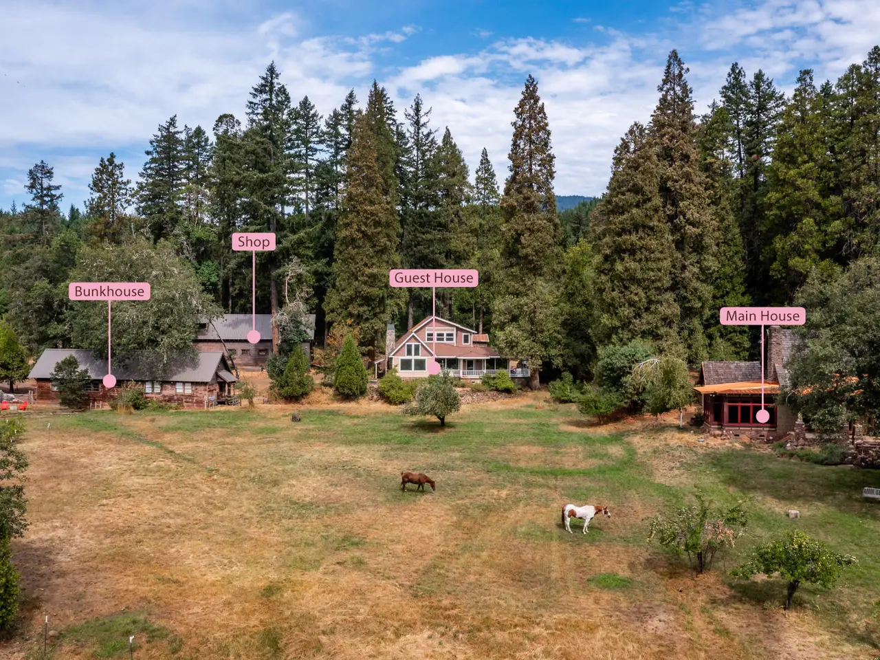 Experience the ultimate in rural luxury on this sprawling 95-acre equestrian estate. Tucked away at the end of a private drive this remarkable property seamlessly combines tranquility & sophistication, creating an idyllic retreat for horse enthusiasts & those seeking a serene country lifestyle. With level terrain, ponds, vibrant pastures & meadows, this property stands out as a premier equestrian facility. At its heart, a charming well-equipped barn, alongside a covered trough feeder that offers shelter & convenience through every season. Expansive liberty arena designed for free movement & training. Fenced paddocks, lush grazing fields & extensive riding trails invite you to explore the land on horseback. The historic Katydid Ranch showcases an impressive Craftsman-style main home along w/a gracious 2nd residence & activity building. For additional income potential, a bunkhouse w/an overnight bed/bath, A-frame for overnight stays & multiple campsites nestled across the property.