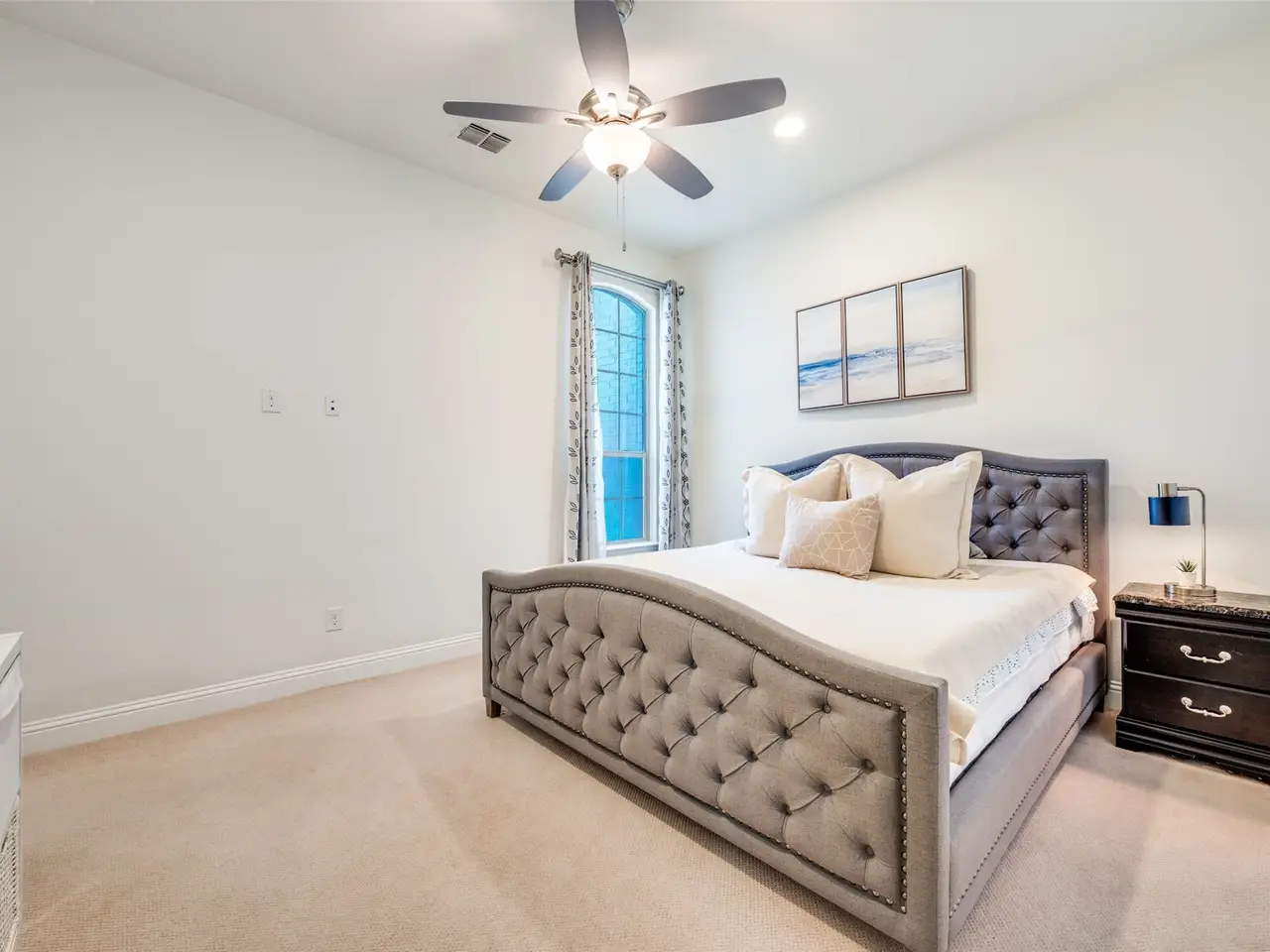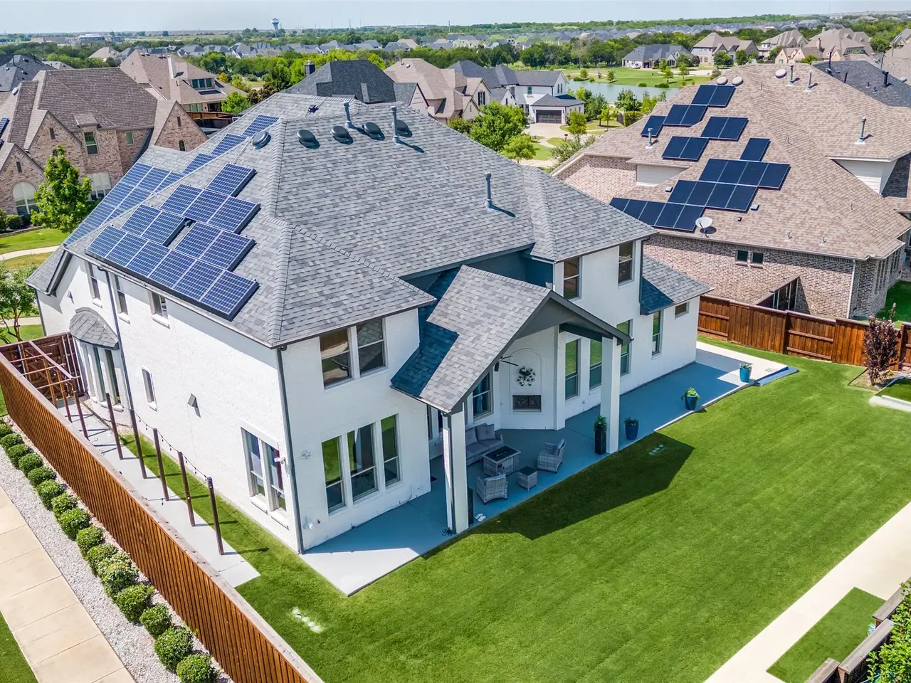 Listed for sale and for lease. Beautifully Updated Drees Home Situated on an Unbelievable Oversized Corner Cul-de-Sac Lot Located in the Highly Sought-After Windsong Ranch. This amenity-filled community is renowned for its crystal-clear Lagoon, pickle ball courts and award-winning lifestyle program. Recently renovated in 2024 and priced below the appraised value, this immaculate home features fresh interior and exterior paint, a brand-new roof, and newly painted cabinetry throughout. Fresh white oak nailed-down wood flooring, installed in July 2025, elevates the open, airy layout filled with natural light and modern finishes. Open concept kitchen with ample storage opens to 2 story family room with walls of windows overlooking backyard. The main level includes a private guest suite, a spacious primary retreat with ensuite bath and spacious walk-in closet, and expansive living areas designed for both entertaining and everyday living. Upstairs, enjoy a generous game room and a fully equipped media room with 7.1 surround sound, built-in HD projection screen, and pre-wired connectivity perfect for movie nights or game-day gatherings. Thoughtful upgrades include an owned 10kW Tesla solar panel system, smart thermostat, new water heater, and energy-efficient features throughout. The oversized backyard offers ample space for a future swimming pool, a covered patio, lush green space, and a newly stained 8-ft privacy fence ideal for outdoor living. Located within Prosper ISD and less than 3 miles from the PGA and and 6 miles from the highly anticipated Universal Studios for Kids, Windsong Ranch is Prosper's most prestigious master planned community offering abundant amenities such as trails, sports courts, pools, a caf and award winning on-site Elementary.