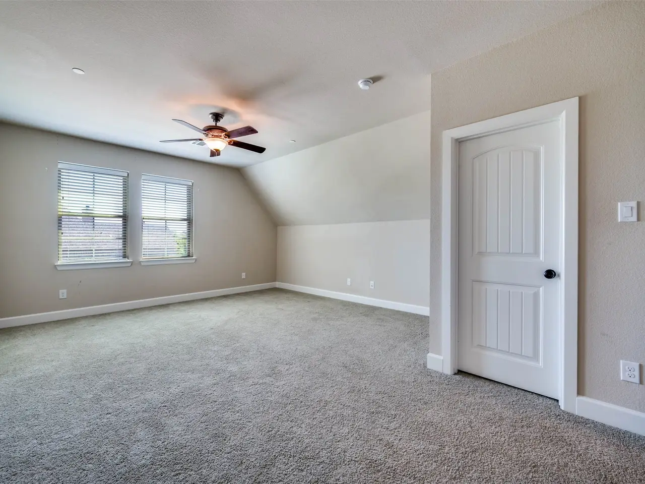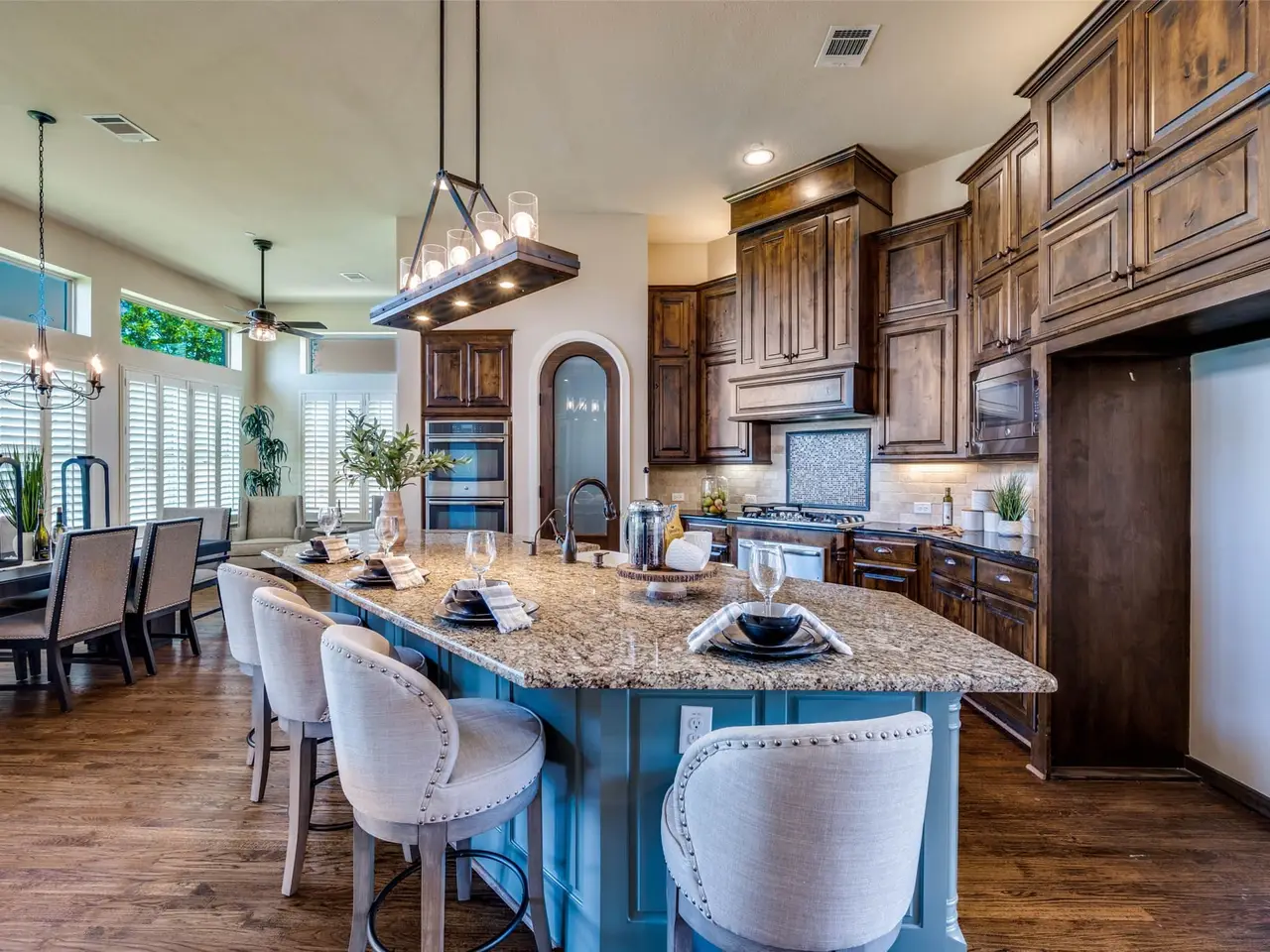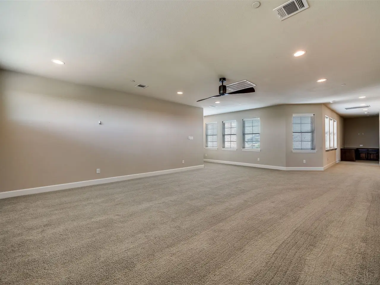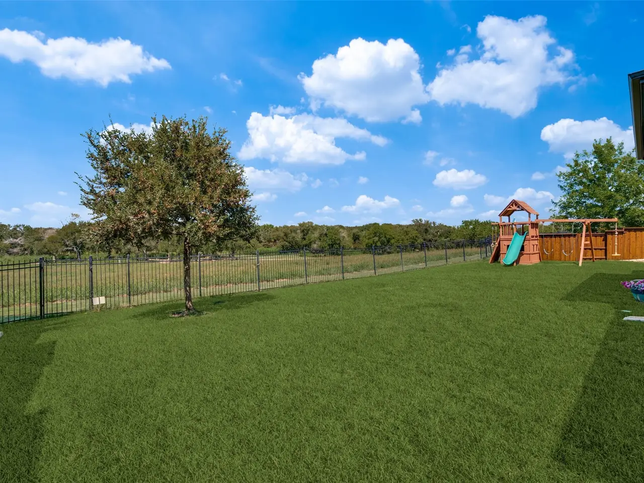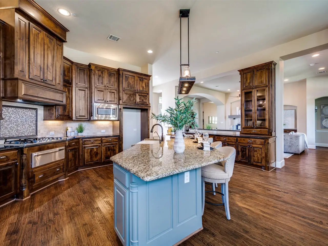 Stunning home by the lake at the end of a tranquil cul-de-sac in sought after Windsong Ranch. This distinguished residence backs to lush greenbelt visible from the expansive back windows and large covered veranda which features charming brick fireplace perfect for relaxation or relax in the beautiful front courtyard enclosed by elegant iron gate. Inside the chef’s kitchen is a true centerpiece, with a breakfast bar that opens seamlessly to the family room and a spacious adjoining breakfast area complete with a coffee bar, perfect for casual gatherings or morning routines. The luxurious owner's retreat provides a spa like bath with walk in shower, jetted tub and two walk-in closets. A secondary bedroom on the main floor provides comfortable accommodation for guests, while a private study with French doors offers a quiet workspace. Upstairs you will find generously sized bedrooms with en-suite baths, a dedicated kids retreat and a large game-media room. Home features front and back staircases for convenience. Additional highlights include an oversized garage designed to accommodate a average 4x8 sized golf cart. This residence perfectly blends comfort, elegance and functionality an entertainers dream in Windsong Ranch. This amenity-filled community is renowned for its crystal-clear Lagoon, pickleball courts, and jogging trails.