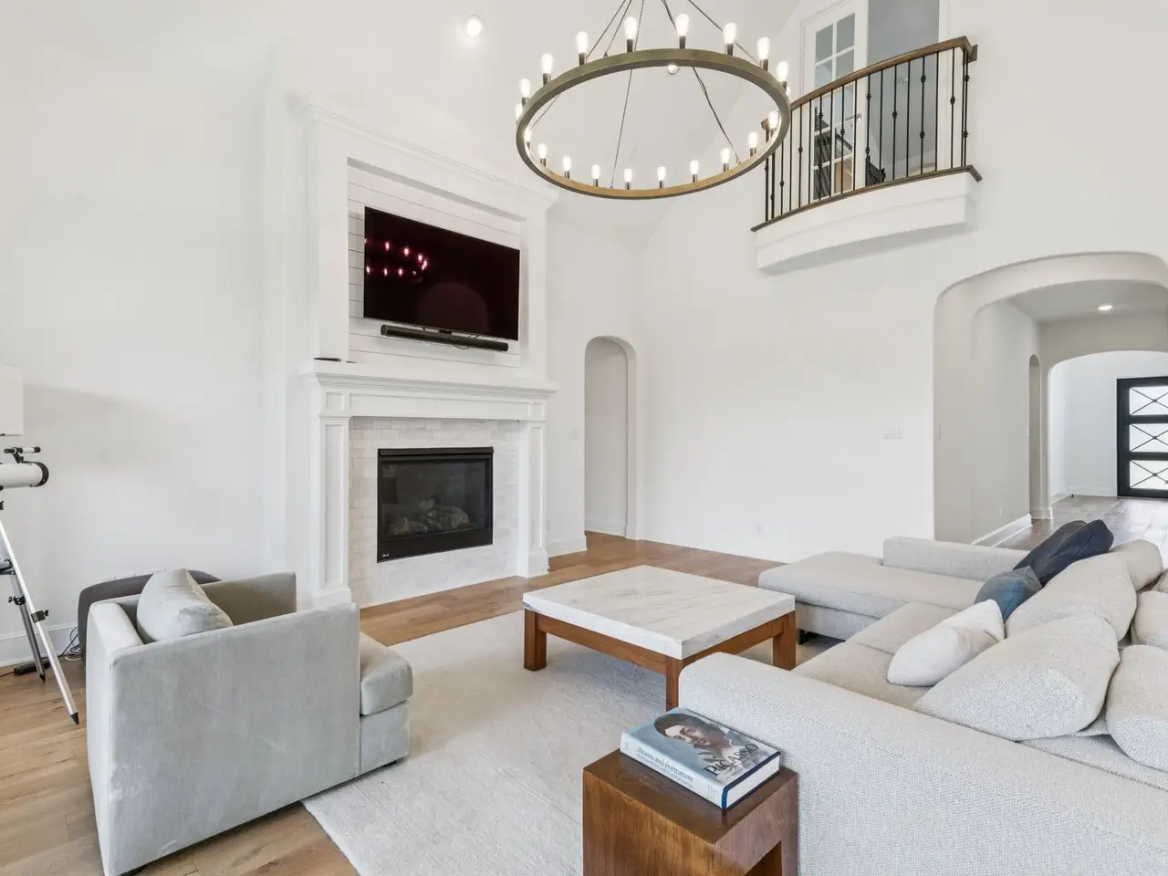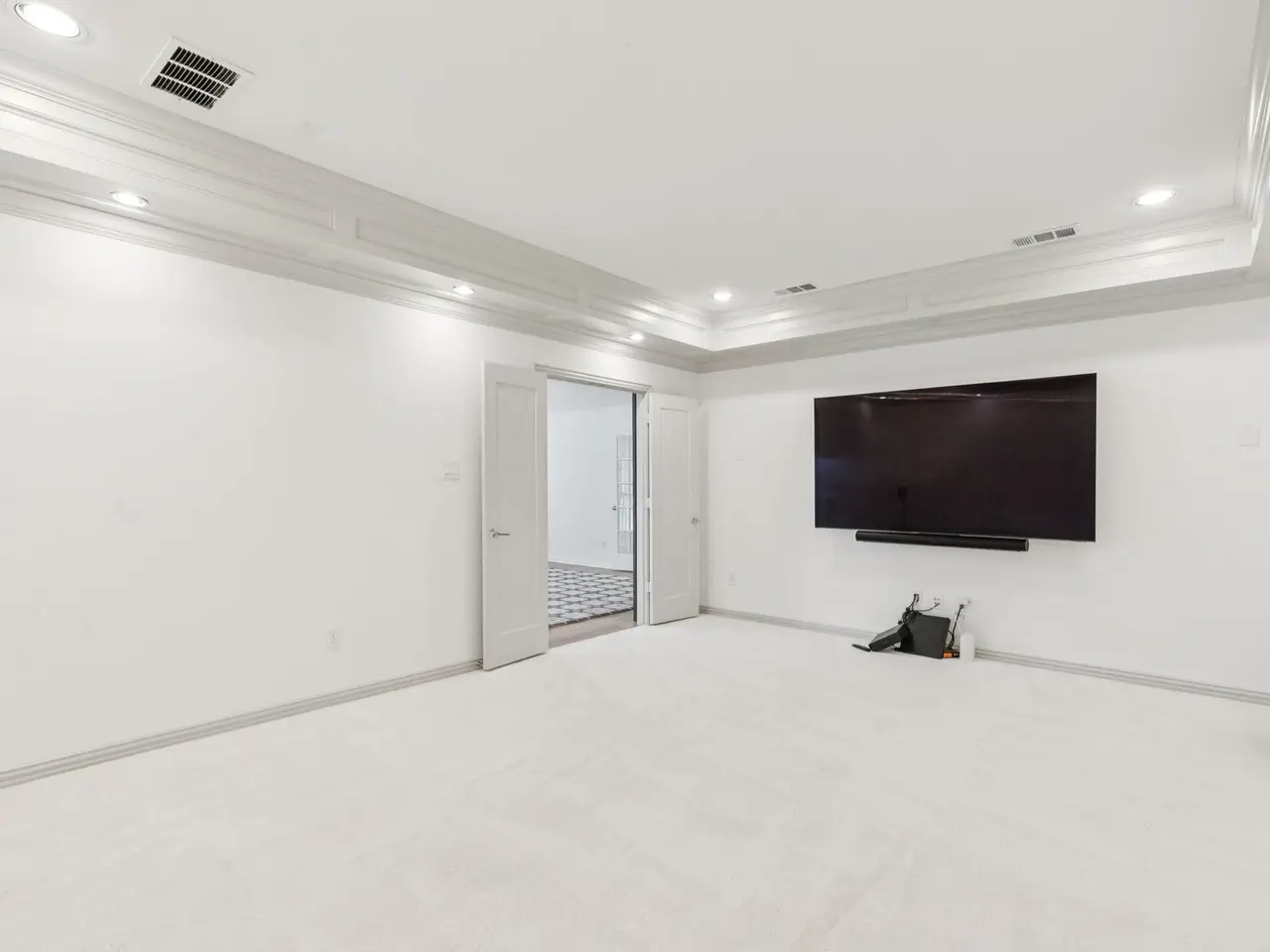 Media room with barn doors