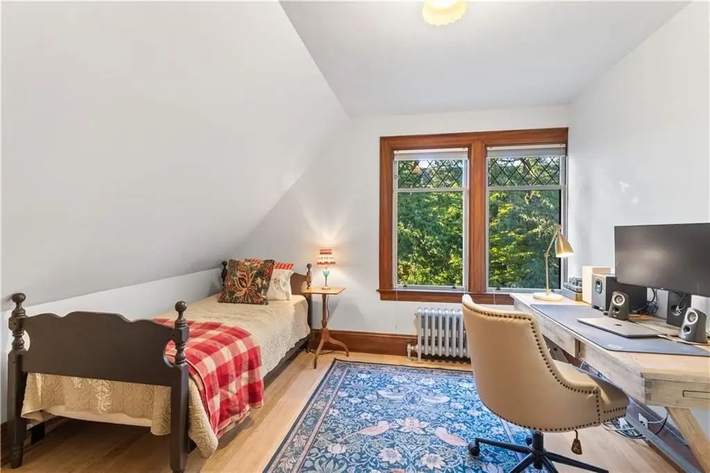 Enjoy cozy evenings in front of your fireplace in the 1928 Auger House, a 1-1/2 story red brick Tudor Revival style cottage with such original features as diamond-patterned windows, newly refinished oak floors, and period built-ins. The charming entry vestibule leads to a living/dining room with bay window and coffered ceiling that instantly transports one to another time. A breakfast room extends the original tiled kitchen with alcove stove. A ground floor bedroom with attached 3-season porch and a full bathroom complete the first floor. The second floor offers 3 more bedrooms and a full bathroom. The partially finished basement includes 400 SF of usable space, currently outfitted as a recreation room perfect for game nights, movies with friends, or binge-watching the latest season of your favorite shows. A plumbed sink and mini-fridge offer opportunities for entertaining. Nearby is the laundry room and several storage rooms. Just off the kitchen is a two-car garage with radiant heated floors. Located on Providence's popular East Side, you are within an easy walk of Hope Village’s shops and restaurants, Blackstone Boulevard, and the Summertime Saturday farmer’s market in Lippitt Park. Although you could just as easily stay home, enjoying a verdantly-landscaped double lot with koi pond.