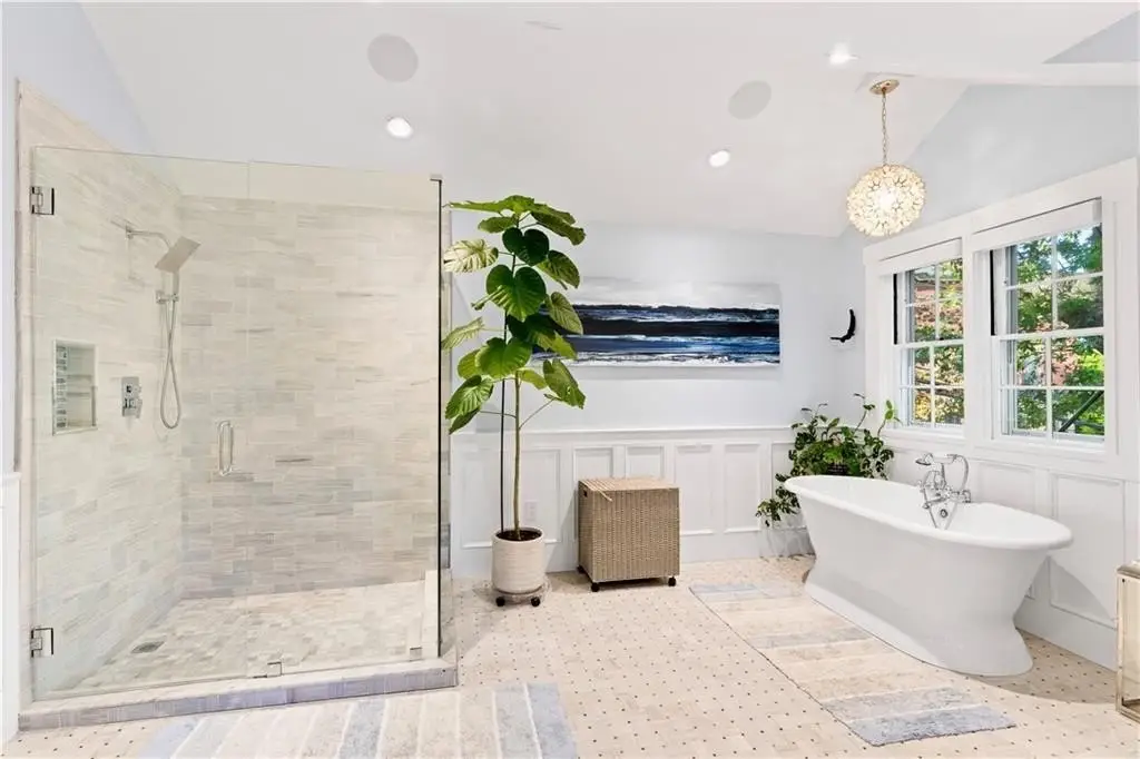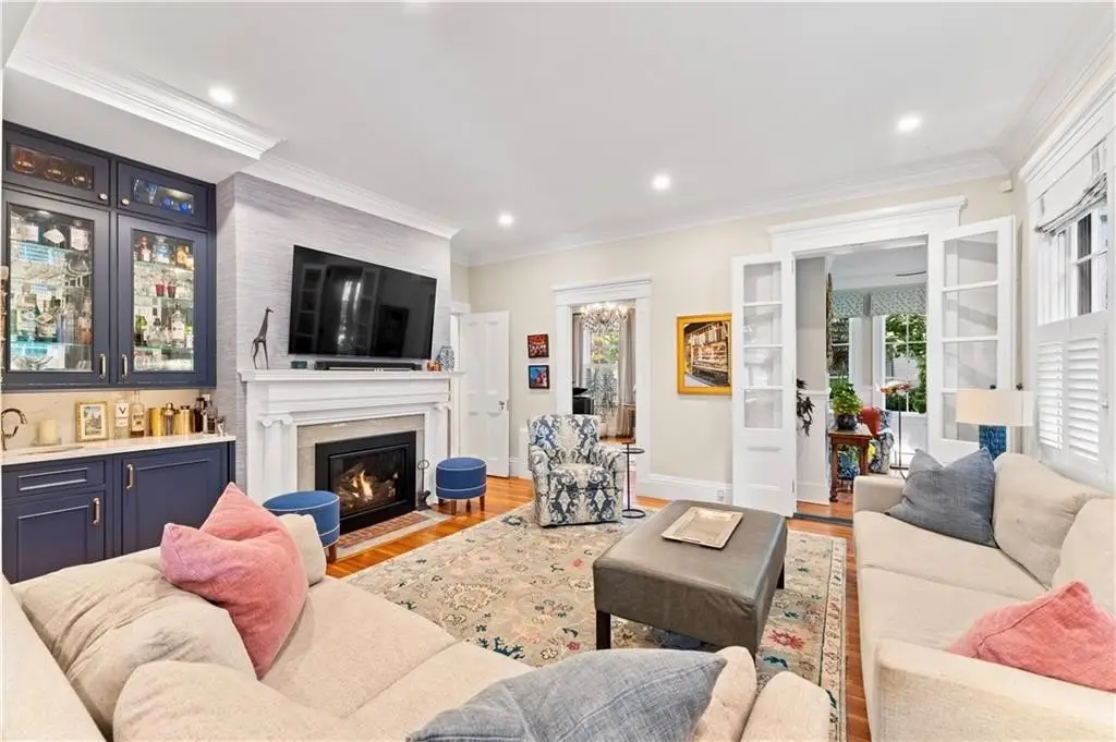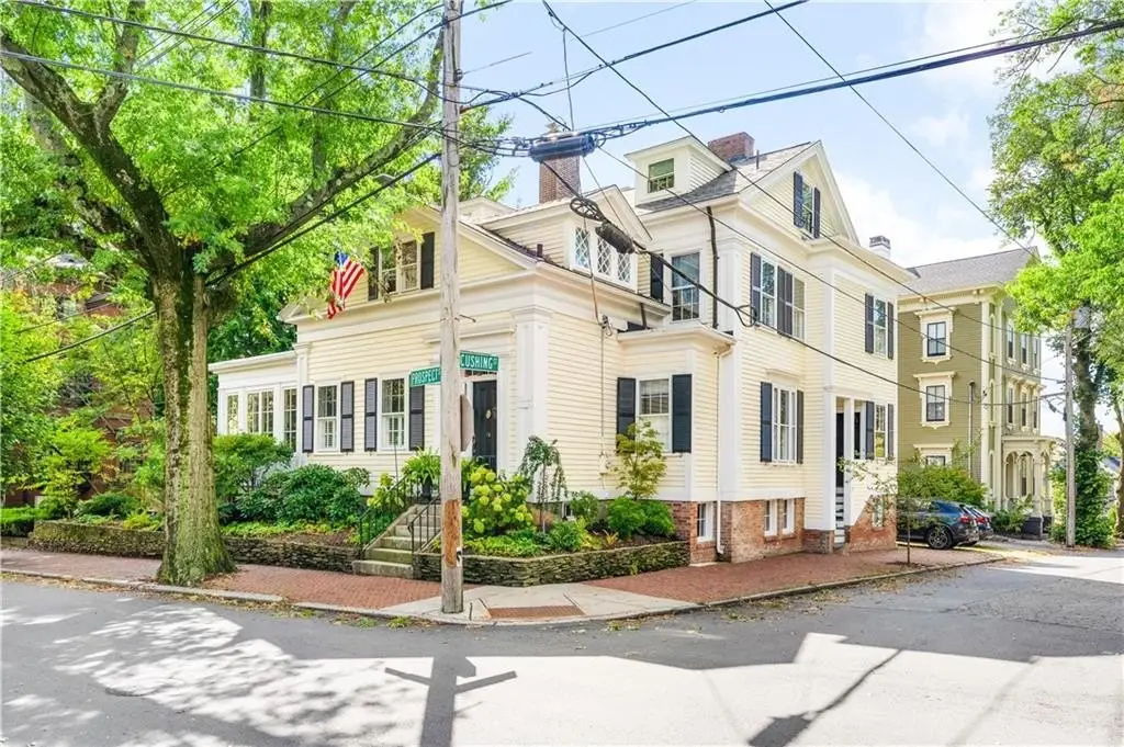 Welcome to the fabulous George F. Gladding House! Perched on one of the most prominent spots in Providence’s coveted College Hill neighborhood, this 1845 Greek Revival has been thoughtfully, and thoroughly, updated with an impeccable eye for detail, with gorgeous crown molding and built-ins, soaring ceilings, and tons of historic details – including 7 working fireplaces. From the main entrance, a stately front hall opens onto a front parlor and a private home office with a half bath. The spaciously redesigned living room, with a gas fireplace, wet bar, and fridge, opens to an elegant dining room. An adjacent sunroom offers a quiet retreat, and steps down onto a private, lusciously landscaped private courtyard patio and garden. The stunning eat-in kitchen features radiant-heated Spanish marble floors, high-end appliances, a breakfast nook, and a dedicated mud room. Upstairs, find two primary suites – the larger offering a fireplace, soaking tub, and radiant heat – plus two additional bedrooms, a family bath, and a laundry room. The third floor includes a private guest suite and additional office space. A new HVAC system with central air, as well as new insulation, adds year-round comfort. Located just around the corner from Prospect Terrace Park, and moments from Brown, RISD, and incredible Downtown and East Side shops and restaurants, this truly special home offers the ideal blend of historic charm and modern luxury living in one of Providence’s most desirable locations.