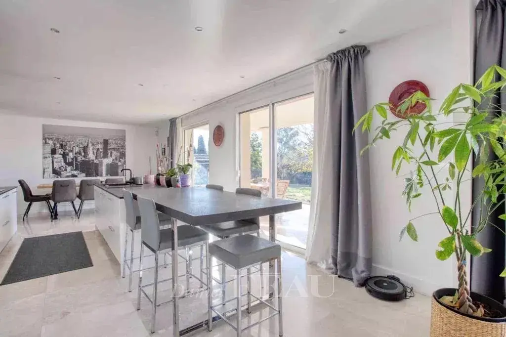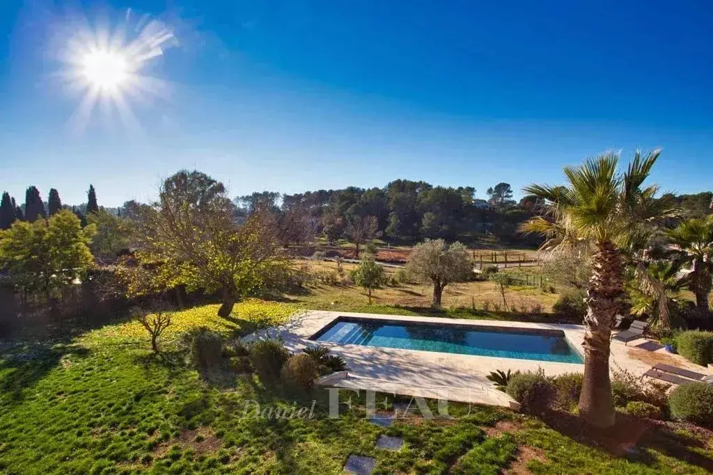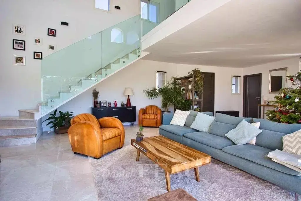 In an exceptional and unique environment, superb high-end villa of 259 m2 on a large landscaped plot of 4033 m². It offers neat and very high quality services such as: stone columns, artistic ironwork, Italian marble on the floor, underfloor heating, high-end insert of 1.20m on stone facing wall, aluminum joinery, central vacuum, alarm, etc... The main house offers on the ground floor, in an open and very bright loft style : - an entrance with large custom-made wardrobe and guest toilet, - a large living room of 85 m², with fully equipped open kitchen, opening onto a large partly covered summer terrace, - a cellar communicating with the garage of 36 m², - a master suite with custom-made wardrobe and large bathroom with bath, shower and toilet, - a bedroom currently used as an office, The first floor hosts : - a mezzanine overlooking the living room, - two bedrooms opening onto a large terrace, - a shower room with toilet. There is also a very well appointed independent apartment offering a beautiful living room, an equipped kitchen, a bedroom, a shower room with toilet and a private terrace. In the garden, a beautiful swimming pool surrounded by a huge terrace of 100 m² takes place. The large plot with century-old trees allows you to enjoy it while remaining completely out of sight. It benefits from automatic watering (connected to a historic stone well and the domestic network) and lighting. The house benefits from the possibility of extending more than 30 m² and from a very low electrical operating cost due to very good insulation of the building. In a unique and very private living environment, this property is located 20 minutes from three renowned golf courses (Terre blanche, Saint-Raphaël and Roquebrune-sur-Argens), 15 minutes from the beaches and 10 minutes from all amenities ( shops, schools, highway).