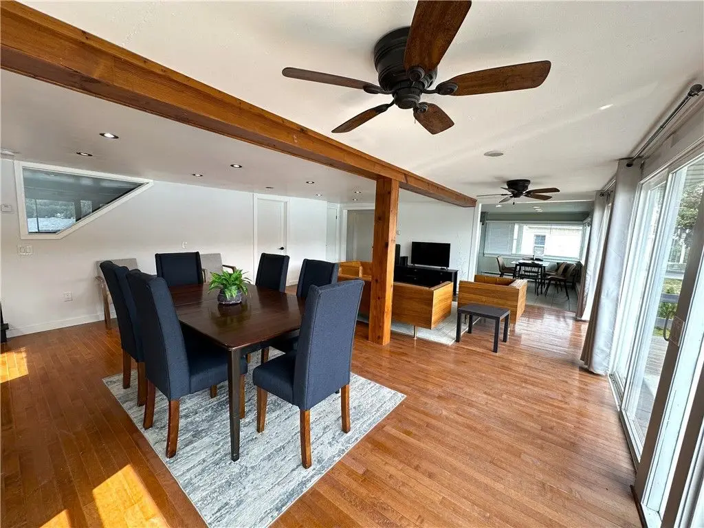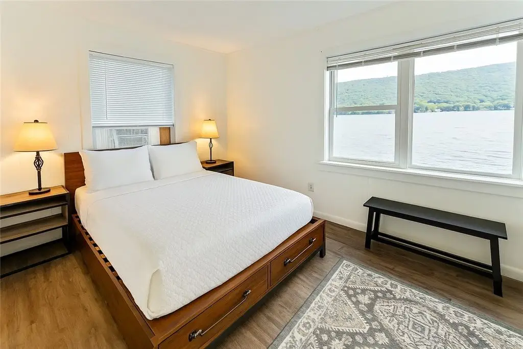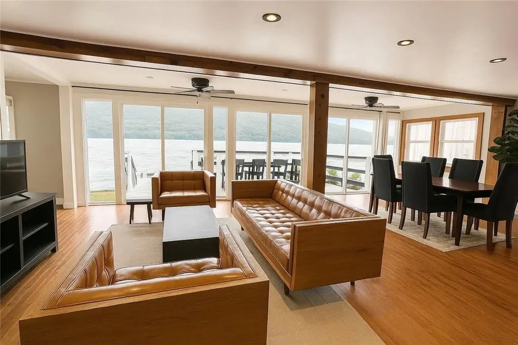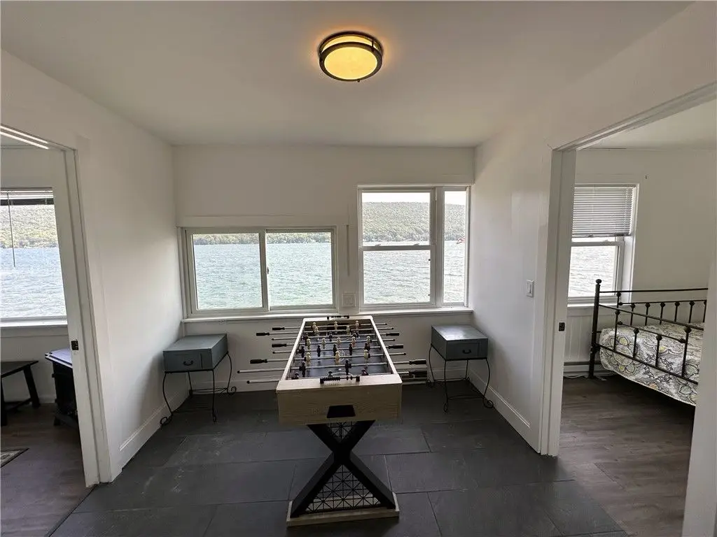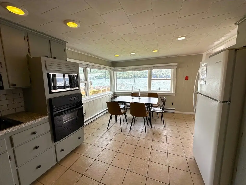 Experience the best of Keuka Lake living in this beautifully upgraded year-round residence with panoramic lake views. Thoughtfully improved over the past year, the home offers three bedrooms plus a versatile office/bonus room, two full bathrooms, and an open floor plan designed to maximize light and lakefront views.The main floor features a spacious living and dining area with panoramic lake views through floor-to-ceiling windows. The kitchen, once closed off, has been reconfigured into a more open, eat-in style layoutC/B?B=creating a brighter, more welcoming space. Throughout the home, brand-new drywall, ceilings, and fresh paint replace the dated finishes, giving every room a refreshed feel. Upstairs, a newly added full bathroom with spa-like finishes near the bedrooms enhances comfort and convenience. Downstairs, a remodeled walk-in shower and a newly added laundry unit add everyday functionality.Exterior upgrades include fresh paint, new wooden entry stairs, updated landscaping with tree plantings, and a stabilized shed with added structural posts. A permanent dock (2009), level lakefront, and fire pit make for the ideal summer retreat and year-round enjoyment.Whether as a full-time residence, vacation home, or proven rental, this property offers flexibility and lasting value. Ideally located between Penn Yan and Hammondsport, you're just minutes from the region's award-winning wineries, breweries, and dining.